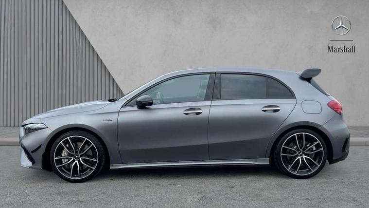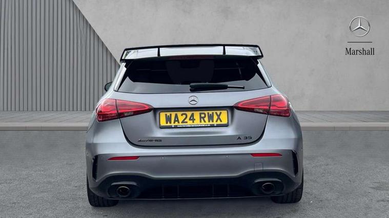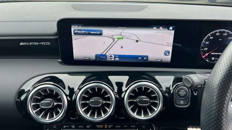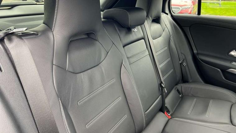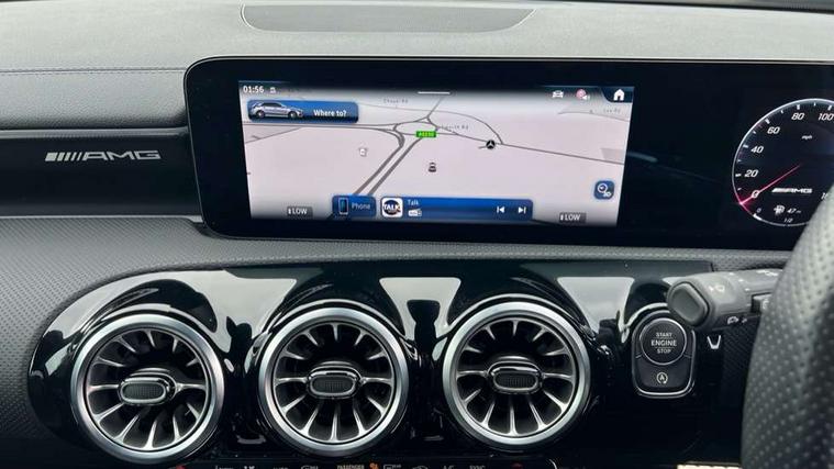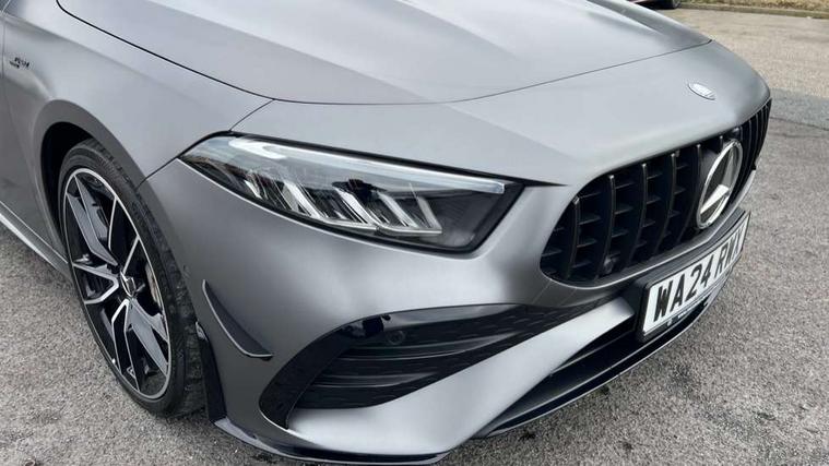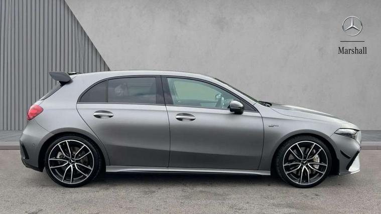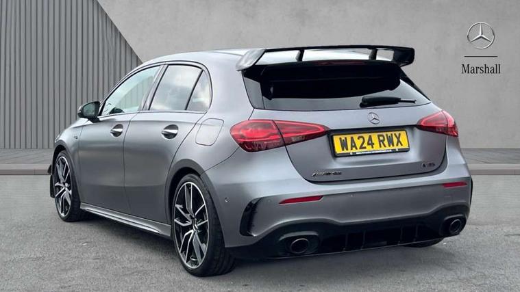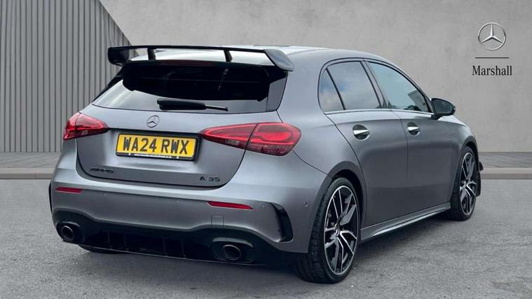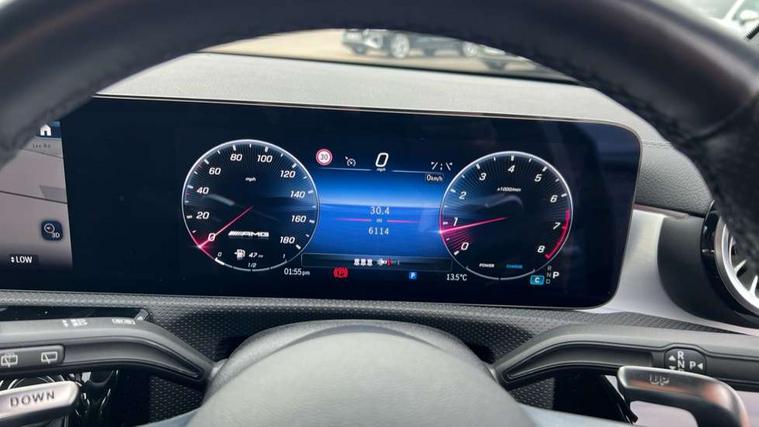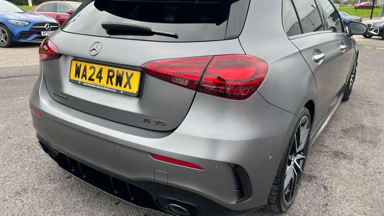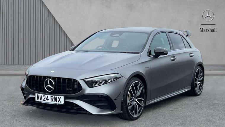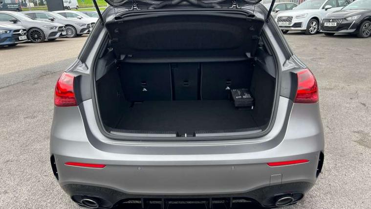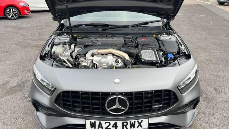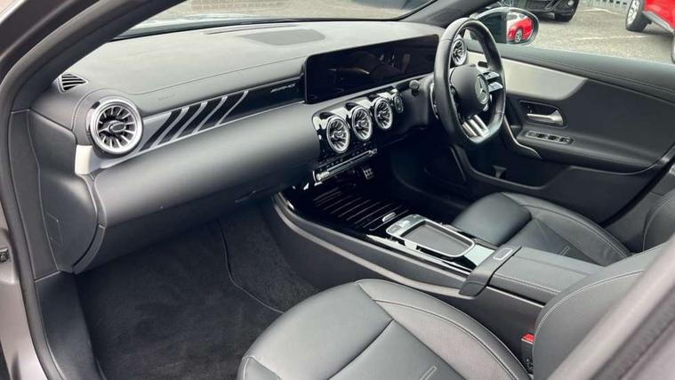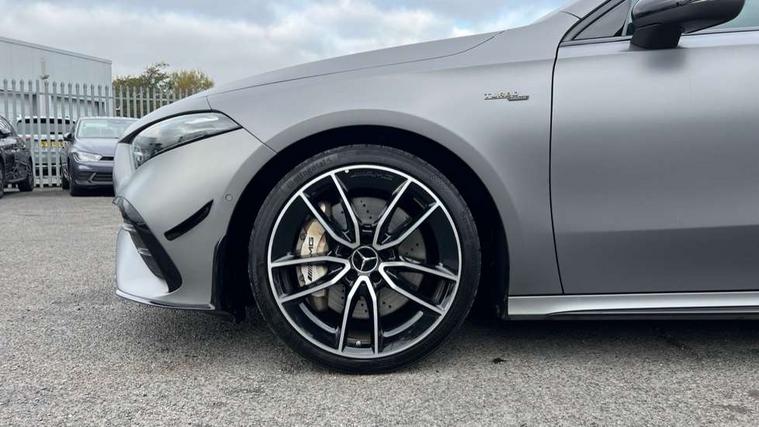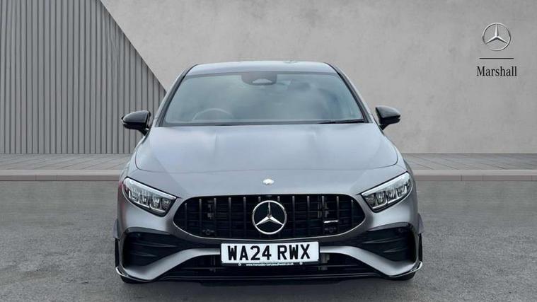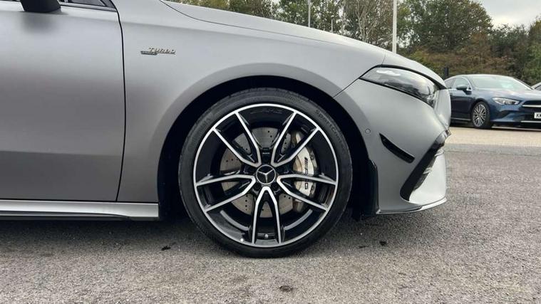 10.25 inch touchscreen central media display, 10.25" Digital instrument cluster display screen, Attention assist, Blind spot assist, Brake pad wear indicator warning light, Car wash mode, Cruise control + speed limiter, Direct steering, Direction indicators with lane change function, Dual bluetooth interfaces, DYNAMIC SELECT with driving programs (Slippery, Comfort, Sport, Sport+ and Individual), Easy pack tailgate hands-free access, ECO start/stop function, Engine start/stop button, Fluid level warning indicator for fuel, oil, coolant and washer fluid, Fluorescent jacket for driver, Hard-disk navigation, Hey Mercedes Voice activation, Lamp failure indicator, Lane keeping system, MBUX augmented reality for navigation, Mercedes me connect including emergency call system, accident recovery, breakdown and maintenance management, Mercedes me remote services, Outside temperature gauge, Owners manual in English, Pre-installation of private car share, Preinstallation for Mercedes Benz link, Remote boot closing, Service indicator (ASSYST), Smartphone integration with Apple CarPlay and Android auto, Speed limit assist, Speed sensitive power steering, Tailgate, Trip computer in multifunction display with current consumption indicator, Wireless charging, AMG suspension, DAB Digital radio, MBUX multimedia system, Mercedes Benz sound system (100 W) with 6 speakers, 4 Electric Front and Rear windows, Adaptive brake lights, AMG body styling - AMG front apron with front splitter and AMG rear apron and visible exhaust tailpipe trim elements, AMG Front apron with flics as air deflector elements on the outer air intakes, AMG Rear apron with specific diffuser look with four vertical fins and two round chrome plated tailpipe trim elements with a diameter of 90 mm, AMG spoiler lip on roof, Beltline strips in High gloss Black, Body colour bumpers, Body colour door handles with chrome inserts, Body colour side skirt, Darkened AMG specific radiator grille, Electric adjustable and heated door mirrors with integrated LED side indicators, Front splitter and trim elements on the louvres in the outer air inlets, Front wings wheel arches with TURBO 4MATIC lettering, Headlamp assist automatic headlamp activation, Heat insulating dark tinted rear and rear side windows, Heated glass rear windscreen + timer control, LED High level third brake light, LED High Performance headlamps including integral LED daytime running lamps and adaptive highbeam assist, LED tail lamp, Privacy glass, Radio aerial, Rain sensing windscreen wipers with two sensitivity settings, Rear fog lights, Rear side wing doors, Rear windscreen wiper, Wider wheel arches for AMG wheels, Window line trim strip in black, 3 seat bench in 2nd row, 4 way lumbar support, 40:20:40 split folding rear seats, Air conditioning - Two zone thermotronic luxury automatic climate control with display, AMG floor mats, AMG Performance steering wheel in nappa leather, Automatic child seat recognition sensor, Black air vents with surround in silver chrome, Black roof lining, Brushed stainless steel sports pedals with rubber studs, Front centre armrest with stowage, Front door sills with AMG lettering, Front seat backs luggage nets, Heated front seats, Height/reach adjustable steering column, Interior lighting - 64 colour Ambient lighting, Interior mirror with reading lamps in black and frameless, Rear armrest with 2 cupholders, Seat occupancy sensor for front passenger seat, Silver coloured aluminium gear shift paddles on steering wheel, Single front passenger seat, Sports seats with integrated headrests, Stowage compartment in centre console with retractable cover, Sunvisors with illuminated vanity mirrors, Twin front cupholders, Aerodynamic pack - A Class, AMG night pack - A Class, AMG night pack II - A Class, Light and sight pack - A Class, Mirror package - A Class, Parking pack - A Class, Seat comfort pack - A Class, USB pack plus - A Class, 3 rear 3 point seatbelts, ABS with Brake Assist, Active bonnet, Active brake assist includes forward collision warning system with autonomous braking, Adaptive brake assist with hold function and hill start assist, Black seatbelts, Bonnet with power domes, Childproof locks manually operated for rear doors and electrically operated for rear power windows, Crash responsive emergency lighting, Driver and passenger head and side airbags, Drivers knee airbag, Dual stage driver/passenger airbags, Electronic parking brake, ESP curve dynamic assist, ESP with ASR, Front and rear seatbelt reminder, Front brake calipers with AMG lettering, ISOFIX and top tether child seat fixing points in two outer rear seats, Tyre pressure monitoring system, Warning triangle and first aid kit, Window airbags, Alarm system/interior protection/immobiliser, Guard 360 degree vehicle protection, Keyless entry lock/unlock, Keyless Go, Remote central locking and crash sensor with emergency opening function, Aluminium AMG design black/silver interior trim, 19" AMG 5 twin spoke light alloy wheels painted in high gloss black with high sheen finish, Summer tyres, Tirefit sealant kit,