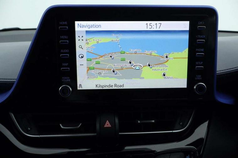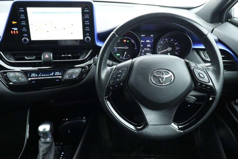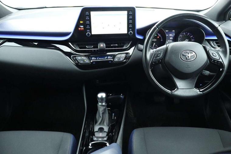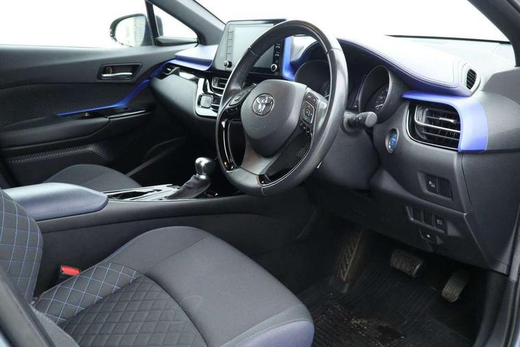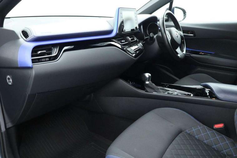 4.2" coloured TFT screen for multi-information display, Adaptive cruise control, Bluetooth connectivity, Electric power steering, Hybrid system indicator, Lane departure alert with steering control, Remote boot door release in cabin, Remote boot door release in key, Reversing camera, Road sign assist - RSA, Simple Intelligent parking assist, Touch 2 Go navigation system, Trip computer, Voice recognition, Vehicle Stability Control (VSC), 6 speakers, Aux connectors + 12V front outlet, DAB Radio (Digital Audio Broadcasting), Toyota touch 2 multimedia system with 8" display, USB connector integrated with radio and CD player, Wi-fi connectivity, Adaptive front light system, Adaptive LED Headlights, Anti-jam protection on power windows, Auto high beam, Auto up and down function on all power windows, Automatic headlight levelling, Automatic headlights, Automatic headlights cut-off, Black and body coloured rear bumper, Black front bumper, Black upper front grille, Body colour door handles, Body colour door mirrors, Boot door release with push button, Electric heated door mirrors, Follow me home headlights, Front and rear power windows, Front spoiler, Hard tonneau cover, Honeycomb lower front grille, LED daytime running lights, LED fog lights, LED front light guide, LED High mounted stop light, LED rear brake lights, LED rear combination lights, Noise reduction layer on front windows and windscreen, Power adjustable door mirrors, Privacy glass, Rear spoiler, Rear tailgate, Rear window defogger, Rear window wiper, Shark fin antenna, UV-filter on driver and passenger windows, UV-filter on rear windows, 12v power outlet - front, 3 rear headrests, 3 seat bench in 2nd row, 3 spoke leather steering wheel, 60/40 split folding rear seat, Adjustable rear headrests, Adjustable speed limiter switch on steering wheel, Assist grips front and centre pillar, Audio and telephone switches on steering wheel, Black front door assist grips, Blue ambient lighting on front cup holders, Blue ambient lighting on front doors, Boot light, Chrome interior door handles, Cloth upholstery, Driver and front passenger personal light, Driver and front passenger Whiplash Injury Lessening seats, Driver and passenger seatback pockets, Dual zone automatic air conditioning, Front cupholders, Front head restraints, Front sports seats, Glovebox with internal light, Heated driver and front passenger seats, Hooks for luggage holding net, Humidifying Nanoe air purifier, Illuminated entry system, Isofix attachments on rear seats, Leather gearshift, Light on driver sun visor, Light on passenger sun visor, Manual telescopic steering wheel, Manual tilt steering wheel, Manually adjustable lumbar support on driver seat, Manually height adjustable driver seat, Manually height adjustable front passenger seat, Manually reclining driver seat, Manually reclining front passenger seat, Manually sliding driver seat, Manually sliding front passenger seat, Microphone on front personal light, Mirror on driver sun visor, Mirror on passenger sun visor, Multimedia switches on steering wheel, Pollen filter, Shopping bag hooks, Slow opening on lower glovebox, Voice recognition switch on steering wheel, Tech with parking sensor pack - C-HR, 16 Disk front wheel brake, 3x3 point rear seatbelts, ABS+EBD+Brake assist, Electronic parking brake, ESP + traction control, Front and rear seatbelt reminder, Front passenger airbag on/off switch, Hill start assist control (HAC), Pre collision system with pedestrian detection, Pre-tensioners and force limiters, Rear door child safety locks, SRS Airbags - Driver + Front passenger, front side, front and rear curtain and driver's knee airbags, Toyota safety sense, Tyre pressure monitoring system, Glass-breaking alarm sensors, Immobiliser, Intrusion alarm, Intrusion sensor, Motion sensor alarm, Power door locks, Power passenger window lock, Remote central locking, Remote door lock, Black lower dashboard, Black lower driver dashboard, Blue deco line on upper dashboard, Blue upper dashboard, Piano black console, Tyre repair kit,