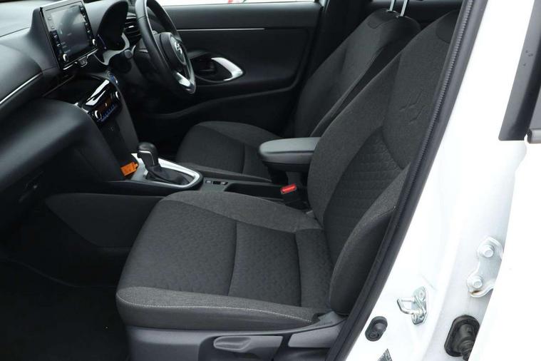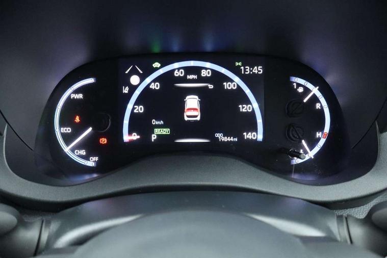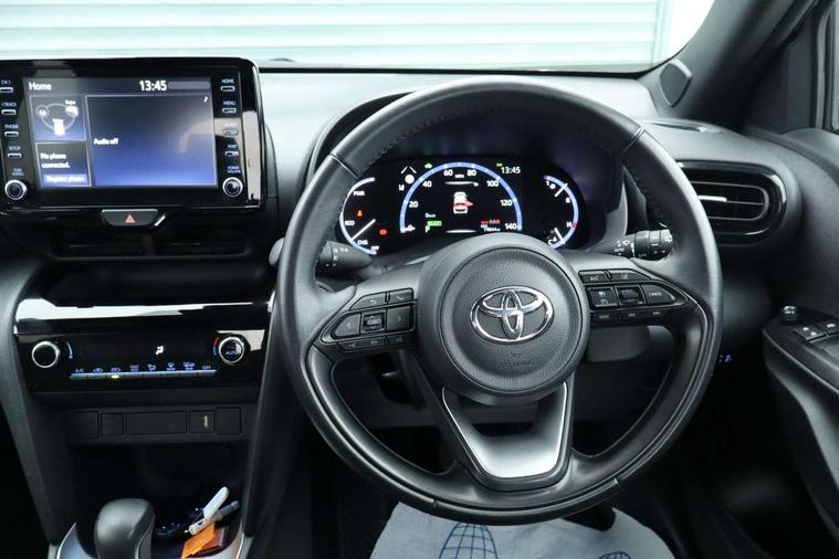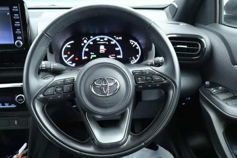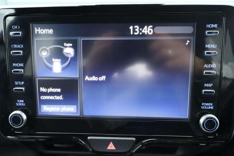 7" Multi information display screen, 8" Toyota touch 2 multimedia system with Smartphone integration with Apple CarPlay and Android auto, Adjustable speed limiter, Bluetooth connectivity, Driver attention alert system, eCall emergency system, Electric power steering, Full range intelligent adaptive cruise control, Hybrid system indicator, Key reminder warning, Lane trace assist, Multimedia, audio, telephone and voice recognition switches on steering wheel, My T Connected services, Pre-collision system enhanced with emergency steering assist, Reversing camera, Road sign assist - RSA, Steering assisted vehicle stability control, 6 speakers, DAB Digital radio, USB connection, 3rd brake light, Acoustic windscreen glass, Aluminium roof rails, Anti-jam protection on power windows, Auto high beam [AHB] with on/off switch, Automatic headlights, Black lower front grille, Black Shark-fin antenna, Black upper front grille, Black wheel arch mouldings, Body colour door handles, Body colour front bumper, Body colour rear bumper, Electric adjustable heated door mirrors, Follow me home headlights, Front and rear electric windows with auto up/down function, Front intermittent wipers, Headlight cut off reminder, Indicators integrated on door mirrors, Intermittent rear wiper, LED daytime running lights guide, LED front fog lights, LED front light guide, LED Indicators, LED projector headlights, LED rear light guide, Manual headlight levelling, Manually retractable door mirrors, Noise reduction layer on windscreen, Privacy glass, Rain sensor, Rear LED lights with sequential indicators, Rear side wing doors, Rear spoiler, Rear window defogger, 12v power outlet - front, 2x Rear coat hooks, 3 seat bench in 2nd row, 3 spoke leather steering wheel, 40:20:40 split folding rear bench seat, Adjustable speed limiter switch on steering wheel, Auto air conditioning, Black roof lining, Boot light, Central armrest, Centre console in light blue ambent lighting, Driver and front passenger personal lights, Fabric door trim, Fabric upholstery, Footwell in light blue ambient lighting, Front console box, Front cup holders, Front head restraints, Glovebox, Height adjustable driver's seat, Height adjustable front passenger seat, Hooks for luggage holding belts, ISOFIX child restraint system, Lane departure alert switch on steering control, Leather gearshift, Light blue ambient lighting on front doors, Manual telescopic and tilting steering wheel, Mirror on driver and passenger sun visor, Pollen air filter, Rear cup holders, Rear head restraints, Single front passenger seat, Soft tonneau cover, 3x3 point rear seat belts, ABS+EBD+Brake assist, Driver and passenger central airbags, Driver and passenger front airbags, Driver and passenger side airbags, Electronic parking brake, Emergency brake light system (EBS), Front seat belt reminder, Hill start assist control (HAC), Passenger airbag on/off switch, Pre-collision system with pedestrian and cyclist detection, Rear door child safety locks, Rear passenger side airbags, Rear seat belt reminder, Traction control, Tyre pressure warning system, Immobiliser, Intrusion alarm, Keyless smart entry with push button start, Power door locks, Power passenger window lock, Remote door lock, Tyre repair kit,