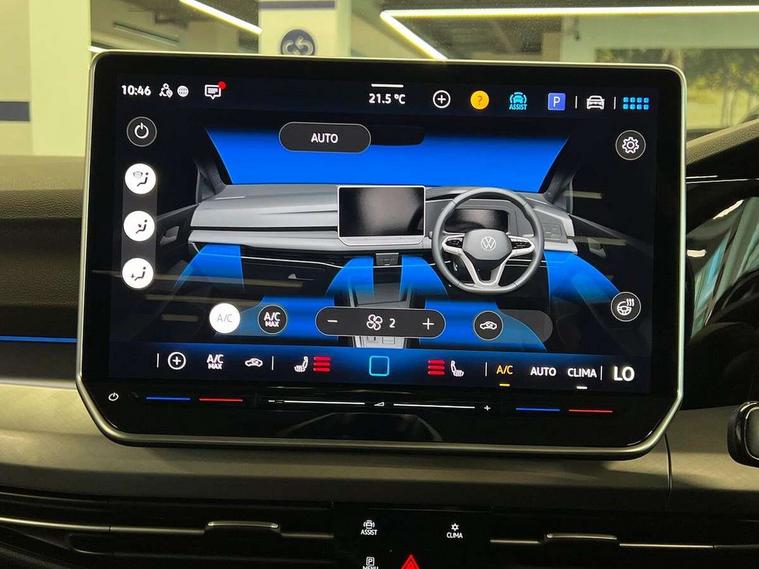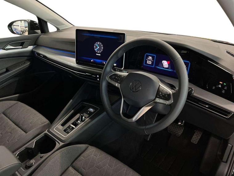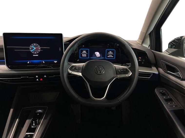 Activated carbon canister, Adaptive cruise control (ACC), Advanced driver attention and drowsiness monitor, Dynamic road sign display, E-Sim card for online connectivity, eCall emergency call system, Multi-color Digital cockpit pro, selection of different info profile possible, Multifunction front facing camera for distance control, Navigation system, Oncoming vehicle braking when turning including swerve support, Preparation for light assist system, Speed limiter, Speedo, rev counter, electronic odometer, trip, service interval display, exterior temperature and fuel gauge, Voice enhancer and voice control, Warning signal and warning light for front and rear seatbelts not fastened, We connect plus preparation, We connect preparation, Wireless app connect, Hybrid propulsion system, Petrol Particulate Filter, Start-stop system with battery regeneration (recuperation - energy recovery during braking), XDS electronic differential lock for improved traction and handling, 2 USB C ports in front, 2 USB charging sockets on the centre console in the rear charging capacity upto 45W, Comfort telephony + wireless charging, without wireless aerial connection, Digital radio reception (DAB), Diversity antenna for FM reception, Gaming platform via car app, Infotainment system with 12.9" display, Mobile phone interface with inductive charging feature, 3rd brake light, Auto headlights, Automatic headlamp activation with Coming home and Leaving home feature, Body colour door handles, Body colour door mirrors, Exterior ambient lighting with illuminated door handles, Exterior mirrors convex on the left and aspherical on the right, Front and rear electric windows, Heat insulating windshield made of laminated glass, LED daytime running lights, Rear exhaust tailpipe, Rear fog light on one side and reversing lights on both sides, Rear side wing doors, Rear tinted glass 65% light absorbing from B pillar backwards, Rear windscreen washer and wiper with interval delay, Remote electrically foldable door mirrors, puddle lights and reverse activated passenger's door mirror, Standard bumpers, Welcome light with surround lighting, 12V socket in front centre console, 12V socket in luggage compartment, 3 rear head restraints, 3 seat bench in 2nd row, Chrome plated radiator grille inserts, air vent surrounds and light switch surrounds, Front centre armrest, Front head restraints, Front seat lumbar support adjuster, ISOFIX anchors for child seats on outer rear bench seats and on front passanger seat compatible for i-Size, Luggage compartment lighting, Manual height adjustable front seats, Plastic gear knob, Rear cupholder and loadthough, Single front passenger seat, Soul black instrument panel, Split folding backrest with centre armrest and unsplit rear seat bench, Standard pedal cluster, Storm grey roof lining, Sun visors with illuminated vanity mirrors, Technology park and comfort pro package - Golf Hatchback, 3 point height adj front seatbelts + pretensioners, 3 rear three point seatbelts, ABS, Autonomous emergency braking front assist with pedestrian and cyclist monitoring, Child locks on rear doors, Driver and front passenger airbag with front passenger airbag deactivation, Electronic parking brake with auto hold, ESC (Electronic Stability Control), Extended pedestrian protection measures, Hill start assist, Rear disc brakes, Two tone horn, Tyre pressure loss indicator, Volkswagen roadside assistance, Anti theft wheel bolts, Preparation for alcohol interlock, Nature cross brushed decorative inserts for dashboard and front door panels,