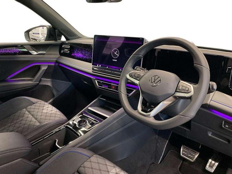 Adaptive cruise control (ACC), Advanced driver attention and drowsiness monitor, Bluetooth mobile phone interface, Car2X technology, Comfort drive travel assist, lane keeping system, lane assist and emergency assist, Digital Cockpit Pro - 10.25" high resolution dash display screen with customisable menus and information, Dynamic road sign display, E-Sim card for online connectivity, eCall emergency call service, Front Assist - Autonomous emergency braking with pedestrian and cyclist monitoring, Lane change system, Side assist, Rear traffic alert and Exit warning system, Lane keeping system Lane Assist, Multifunction front facing camera, Oncoming vehicle braking when turning including swerve support, Park assistance plus with front and rear parking sensors, Power assisted steering with speed sensitive, Start/stop system with regenerative braking, Warning signal and warning light for front and rear seatbelts not fastened, Wireless App-Connect, All wheel drive - 4Motion, Digital radio reception (DAB), Diversity antenna for FM reception, Acoustic glass 80% tinted for side windows, Air intake with black trim, Ambient lighting with logo projection, Auto dimming interior rear view mirror, Automatic headlight control system, Black exterior mirror housings, Black roof rails, Body coloured door handles, Chrome moldings on the side windows, Coming/leaving home lighting function, Exterior mirror surround lignt and memory, Heat insulating glass in side and rear windows, Heated rear window, Heated windscreen washer jets, High level 3rd brake light, Illuminated door handle recesses, Illuminated lightline between headlamps, Laminated safety glass winshield, LED Day time running light, LED rear tail lights with dynamic turn signal, R-Line Black Style Bumpers, Rain sensor windscreen wipers, Rear fog light on one side, reversing light on both sides, Rear side wing doors, Rear wiper, 12V outlet in center console rear and in luggage compartment, 12V socket in centre console, 3 bench rear seats in 2nd row, Air care climatronic 3 zone air conditioning system with rear air conditioning control panel, Black roof lining, Brushed stainless steel pedals, Carpet mats, front and rear, Centre console with illuminated storage compartment with sliding cover and two drinks holders, Chrome elements on the mirror switch and power window switches and door pulls, Door and side trim panel with leatherette insert, Door sill protectors, Entry and exit light, Front centre armrest, Front integrated head restraints, Interior ambient lighting with 30 colour options, ISOFIX anchors for child seats on outer rear seats and front passenger seat. Compatible with i-Size, Mechanical rear seat release, Power adjustable lumbar support in front, Rear bench seat, split folding, longitudinally movable and folding with load-through hatch and centre armrest, Single front passenger seat, Soul headlining, Sports comfort seats in front, Sun visors with illuminated vanity mirrors, Three rear head restraints, Variable luggage compartment floor, Driver assistance package - Tiguan, HD headlights pack - Tiguan Elegance/R-Line/Black edition, Light package - Tiguan Black edition, 3 point seat belt for centre rear seats, 3 Point seat belts in front with pretensioners, 3 point seatbelts in outer rear with ECE label, Driver and front passenger airbag with front passenger airbag deactivation, Electronic parking brake with auto hold, Front and rear curtain airbags, Front and rear side airbags, Front centre airbag, Front disc brakes, Manual child proof rear door locks, Rear disc brakes, Two tone horn, Warning triangle, Anti theft wheel bolts, Black decorative trims, Decorative inserts, Interior door handle in matte chrome, Soul instrument panel, Airstop tyres,