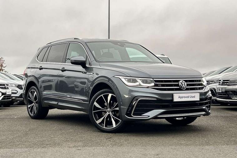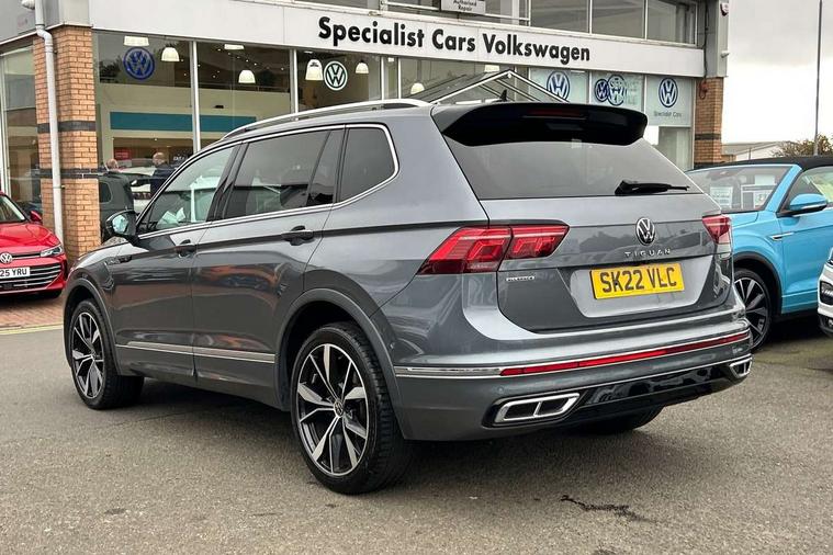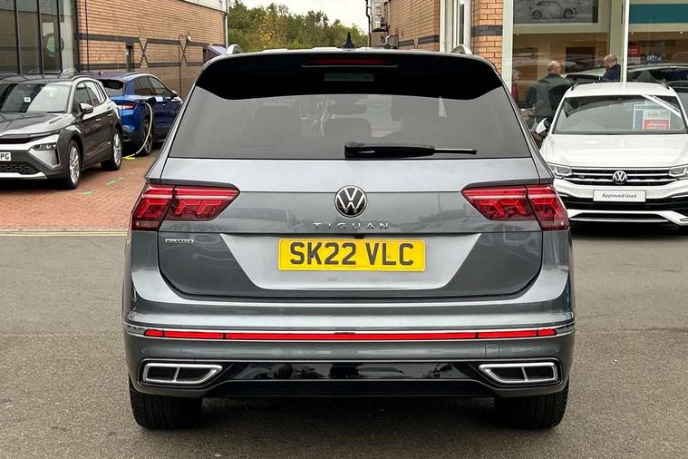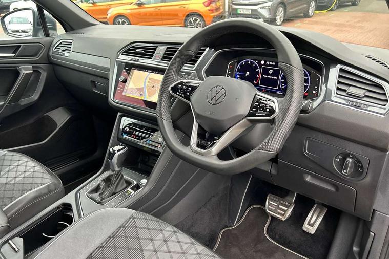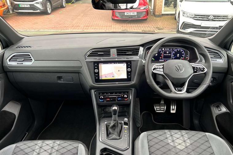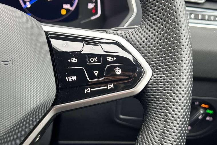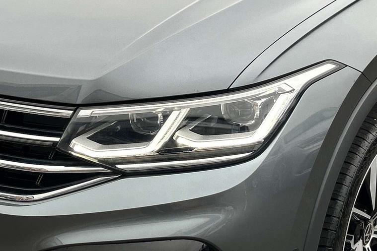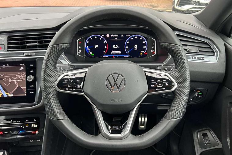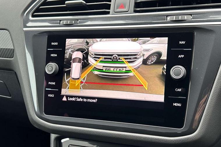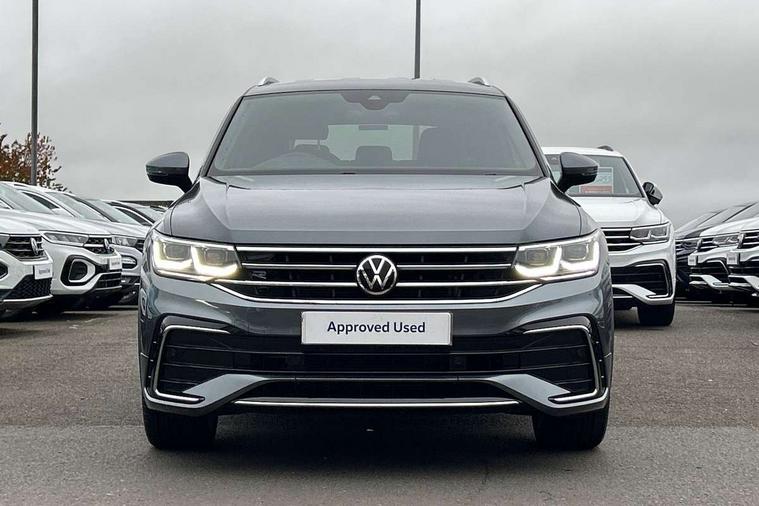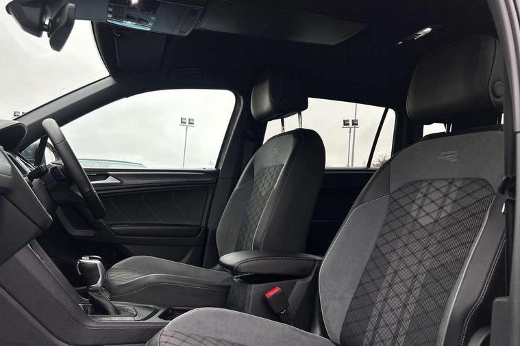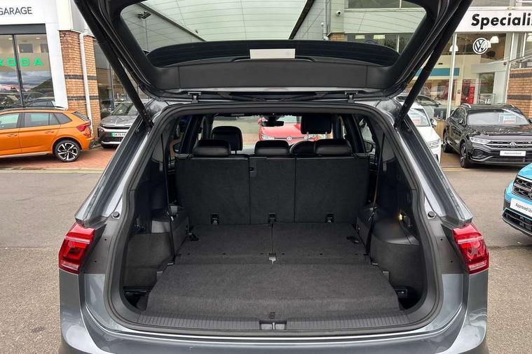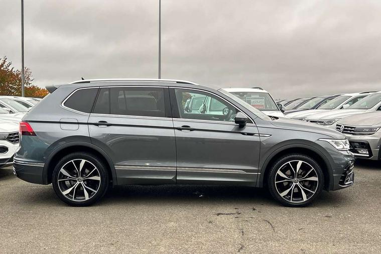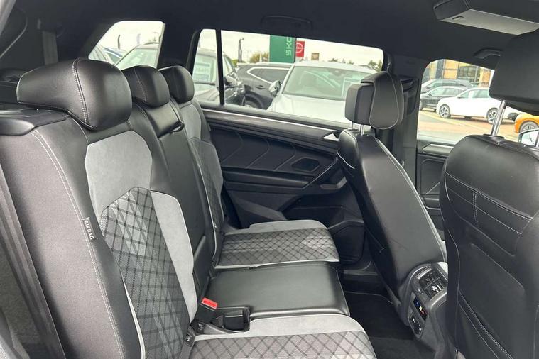 Adaptive cruise control, App-Connect, Digital cockpit pro, Driver alert system, Driver profile selection, Dynamic road sign display, eCall emergency call service, Electric boot lid, Lane change system side assist and rear traffic alert, Lane keeping system Lane Assist, Mobile phone interface comfort with inductive charging feature, Multifunction front facing camera, Power assisted speed sensitive steering, Speedo and rev counter, electronic odometer, trip, service interval display and exterior temperature gauge, Front wheel drive, Start-stop system with battery regeneration (recuperation - energy recovery during braking), 2 USB-C ports in the front, 1 USB-C charging socket on the center console in the rear, DAB Digital radio, Diversity antenna for FM reception, Radio, Auto dimming interior rear view mirror, Automatic headlight control system, Body coloured comfort bumpers, Chrome mouldings on side window, Coming/leaving home lighting function, Exterior badge deletion, Exterior mirror housings painted in silver, Heated windscreen washer jets, IQ light adv HBC, dyn light assist LED matrix headlamps, DH range, dark red LED rear combo light, poor weather, CL, LED headlamp with LED DRL and DCL - PXC, Privacy glass, Rain sensor, Rear fog light, Rear side wing doors, Rear wiper, Silver roof rails, Third brake light, Tilting and sliding panoramic sunroof, 12-volt outlet in centre console rear and luggage compartment, 12V socket in centre console, 3 head restraints in rear, 3 individual folding 2nd row seats, 3rd row 2 individual seats, Air Care Climatronic 3 zone automatic climate control with enhanced air filter and controls in the rear, Door and side trim panel, Drawers under front seats, Driver and front passenger seat height adjustment, Foldable front passenger seat backrest, Front + rear carpet mats, Front centre armrest, Front footwell illumination, Heated front seats, Illuminated scuff plates, ISOFIX anchorage points for mounting 2 child seats on rear seats and i-Size child seats, Leather gearshift handle, Leather-wrapped heated multi-function steering wheel with paddle shift, LED interior light with switch off delay/dimmer and 2 front/rear LED reading lights, Sun visors with illuminated vanity mirrors, Ambience pack - Tiguan Allspace, Easy open and close pack with safelock - Tiguan Allspace, Park assist pack - Tiguan Allspace, 3 point seat belt for centre rear seat, 3 rear three point seatbelts, ABS+EBD+Brake assist, Driver and front passenger safety-optimised head restraints, Driver's and front passenger's airbag with front passenger's airbag deactivation switch, Electronic parking brake, Electronic Stability Control (ESC) inc EDL (Electronic Differential Lock) and ASR (Traction Control), Height adjustable front 3 point seatbelts + pretensioners, Manual rear child locks, Pedestrian monitoring, PreCrash preventive occupant protection Front and rear, Rear disc brakes, Side airbag in front and rear with curtain airbag, Two tone horn, Warning buzzer for seatbelts if unfastened, Anti theft alarm system with interior monitoring, backup horn and towing protection, Anti-theft wheel bolts, Electronic steering lock, Remote central locking with 2 remote folding keys, Chequered flag tinanium decorative inserts,