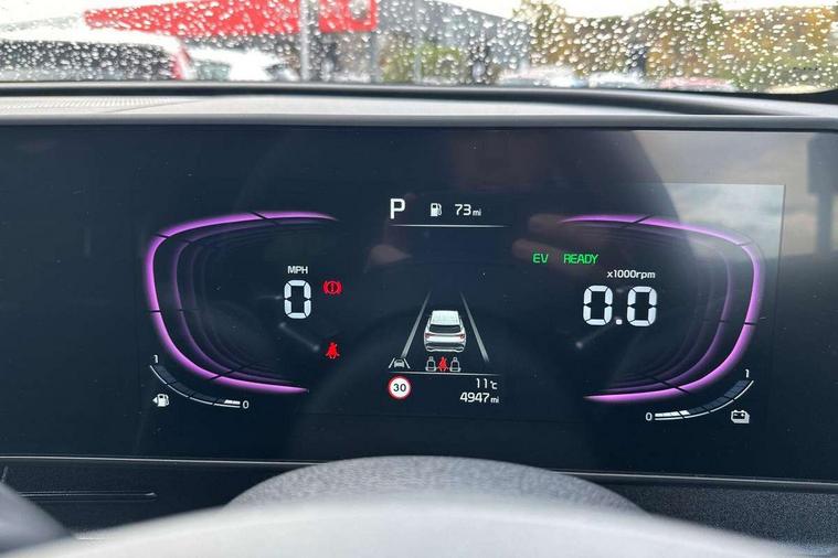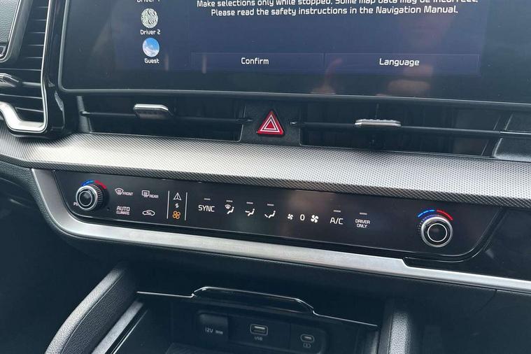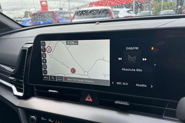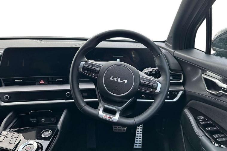 12.3" Touchscreen navigation system, 2 rear USB-C ports, 4.2" driver display screen, Apple car play/Android Auto, Drive mode selector, Driver attention warning, E-call, Emergency stop signalling system, Forward collision avoidance assist (FCA) - city/pedestrian/cyclist/junction covering, Front and rear parking sensors, Highway Driving Assist (HDA), Intelligent speed limit assist, Kia Connect (UVO), Lane Following Assist (LFA), Lane keep assist, Low washer fluid warning, Motor driven power steering, Rear view monitor, Reversing camera system integrated into centre fascia screen, Smart cruise control with stop and go functionality, Speed limiter, Tailgate, Trip computer, Windscreen washer level indicator, 1x USB-C port in front, 6 speaker audio system, Bluetooth audio streaming, DAB Radio with MP3, Steering wheel mounted audio controls, USB C type charging ports on centre console, USB port for connection of a media device, All round electric windows with drivers and front passenger auto up/down function, Auto dimming rear view mirror, Automatic headlight control system, Automatic window defogger, Black and body coloured bumpers, Body colour exterior door handles, Body colour radiator upper garnish and door garnish, Electrically adjustable/heated/folding door mirrors with LED indicators, Front and rear chrome skid plates, Gloss black door mirrors, Gloss black radiator grille, Gloss black side sill and wheel arch body mouldings, Glossy black roof rack, GT-Line exterior styling, Heated rear window, High beam assist, Interior electrochromic mirror, LED daytime running lights, LED front fog lamps, LED headlamps (low and high beam - MFR type), LED High mounted stop light, LED rear combination lamp, Rain sensing wipers with aero blades, Rear fog lamp, Rear privacy glass, Rear side wing doors, Rear spoiler, Rear wiper, Satin finished beltline, Silver window surround, Tinted rear glass, Trailer stability assist, 12V power socket in front centre fascia and luggage compartment, 2nd row personal lamps, 3 seat bench in 2nd row, 3 x passenger assist grips, 40/20/40 split folding rear seat, All-round height adjustable headrests, Alloy pedals, Automatic air conditioning, Black headlining, Centre console storage box, Cupholders in rear armrest, Door courtesy lamps, Drink holder at centre armrest, Driver and front passenger side sunvisors with illuminated vanity mirrors, Driver's seat manual height adjust, Drivers seat power lumbar support, Front and rear door storage, Front cabin, rear & luggage compartment lights, Front passenger's seat manual height adjustment, Front seat and rear pockets, Gear shift indicator, Glovebox illumination, GT-Line Interior Styling, Heated front seats, Heated steering wheel, ISOFIX Child seat top tethers and anchor fixings outer rear seats, Leather steering wheel, Luggage area load cover, Luggage area parcel shelf, Luggage board, Luggage compartment under floor storage, Luggage net with hooks, Manual adjust steering wheel, Metal paint interior door handles, Overhead console lamp, Paddle shift controls, Rear air conditioning, Rear cabin light, Rear coat hooks, Single front passenger seat, Suede leather upholstery, Ventilation ducts to rear compartment, Active front headrests, All round 3-point seatbelts, Anti-lock braking system (ABS), Dual front side airbags, Dual horn, Dynamic brake control, Electronic parking brake with auto hold function, Electronic stability control with downhill brake control, Front passenger airbag cut-off switch, Front seatbelt pretensioners + load limiters, Height adjustable front seatbelts, Hill start assist control (HAC), Impact sensing auto door unlocking, Multi collision brake assist, Rear airbags, Rear door child safety locks, Rear seat alert system, Seatbelt reminder warning, Traction control, Twin curtain airbags, Twin front airbags, Tyre pressure monitoring system, Vehicle stability management, Customisable automatic door locking, Customisable automatic door unlocking, Door deadlocks, Engine Start/Stop Button with Smart Entry System, Locking wheel nuts, Smart key with motion sensor, Speed sensitive auto door locking, Thatcham category 2 security alarm and immobiliser, Visible vehicle identification number, Aluminium pattern finish centre fascia and door garnish, 18" GT-Line alloy wheels, Tyre mobility kit,
