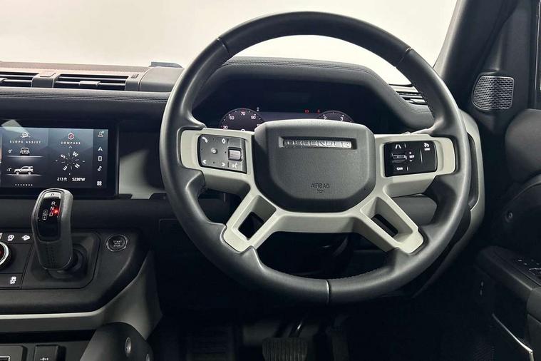 360 degree parking aid, 3D Surround Camera with 360 View, 180 Rear View, Front Traffic Detection, Forward Vehicle Guidance, Tow Hitch Assist and clear sight Ground View, Android Auto, Apple CarPlay, Assisted tailgate with soft close, Blind spot assist, Bluetooth system, Brake pad wear indicator, Clear exit monitor, Connected navigation pro, Driver condition monitor, Electric power assisted steering (EPAS), Lane keep assist, Push button start, Rear traffic monitor, Traffic sign recognition with adaptive speed limiter, Trip computer, Wade Sensing, 8 speed automatic transmission, All wheel drive system, Twin speed transfer box, DAB Radio (Digital Audio Broadcasting), Meridian 400w sound audio system with 11 speakers and subwoofer, Pivi pro connected, Automatic headlight levelling, Automatic headlights, Centre high mounted stop light, Electric heated/power fold door mirrors with approach lights and auto dimming driver side, Electric windows with one touch open/close and anti-trap, Follow me home lighting, Front fog lights, Heated rear window with timer, Heated windscreen, LED tail lights, Panoramic rear side glass, Privacy glass, Puddle lights, Rain sensing windscreen wipers, Rear fog lights, Rear wiper, Side hinged tailgate, Trailer stability assist, X-Dynamic badge, 12V power socket in loadspace, 3 seat bench in 2nd row, Alpine lights, Durable rubber cabin flooring, Durable rubber loadspace flooring, Footwell lights, Loadspace cover, Loadspace Hook, Multifunction steering wheel, Overhead stowage for sunglasses, Premium cabin lighting, Rear headrests, Rear ISOFIX, Rear reading lights, Single front passenger seat, Standard seat configuration, Storage glovebox, Sunvisors with illuminated vanity mirrors, Online pack with data plan - Defender, 5 x 3 point seatbelts, ABS, Brake hold function, Cornering brake control (CBC), Customer configurable autolock, DSC - Dynamic Stability Control, EBD - Electronic brakeforce distribution, Electric parking brake (EPB), Emergency brake assist, Emergency braking, ESP + traction control, Front airbags with passenger seat occupant detector, HDC - Hill descent control, Hill launch assist, Low traction launch, Remote for (e-Call, Optimised assistance call, InControl app, Climate, beep and flash and door), RSC - Roll stability control, Seat belt reminder, TPMS (Tyre pressure monitoring system), Alarm, Immobiliser, Intrusion sensor, Keyless entry, Locking wheel nuts,