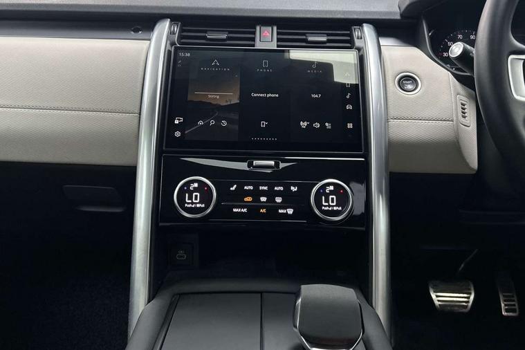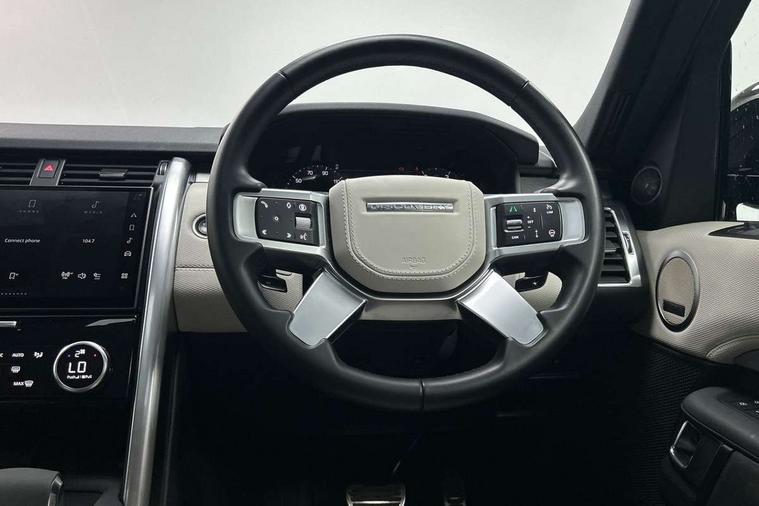 11.4" touchscreen, 3D surround camera, Adaptive cruise control, Android Auto, Apple car play, Blind spot assist, Driver condition monitor, Electric power assisted steering (EPAS), Emergency services call system, Front and rear parking aid, Interactive driver display, Lane keep assist, Power inner tailgate, Power tailgate/boot lid, Push button start, Rear collision monitor, Rear traffic monitor, Remote, Remote boot release, Service interval indicator, Speed proportional steering, Sportshift selector, Stop/start system, Traffic sign recognition with adaptive speed limiter, Trip computer, Wade Sensing, Adaptive dynamics, Dynamic stability control, Electronic air suspension, Front axle open differential, Digital Audio Broadcast radio-DAB, Dynamic volume control, Pivi pro connected, USB/aux input socket, Acoustic laminated windscreen, Animated directional indicators, Auto dimming interior rear view mirror, Automatic headlight levelling, Automatic headlights, Body colour bumpers, Body colour door handles, Centre high mounted stop light, D300 badge, Electric heated/power fold memory door mirrors with approach lights and auto dimming driver side, Electric windows with one touch open/close and anti-trap, Heated rear window, Heated windscreen, LED darkend tail lights, Matrix LED headlights with signature DRL, Narvik black Discovery script, Privacy glass, Puddle lights, Rain sensing windscreen wipers, Rear fog lights, Rear side wing doors, Rear wash/wipe, Trailer stability assist, Variable intermittent wiper, 12V power sockets, 12V USB charging socket in loadspace, 2 seat bench in 3rd row, 3 seat bench in 2nd row, 60/40 electric heated folding rear seats with manual slide and powered recline, centre headrest and armrest, Central hinged twin lidded storage, Configurable cabin lighting, Ebony morzine headlining, Electric adjustable steering column, First and second row door bins, Footwell lights, Front and rear 12V with front USB, Front passenger seat isofix location point, In-facia storage, Isofix child seat preparation for front passenger seat, Leather steering wheel, Loadspace cover, Loadspace Hook, Loadspace light, Lockable glovebox, Lower centre console storage, Luggage tie downs in loadspace, Multi function steering wheel, Overhead lighting console, Premium carpet mats, Rear ISOFIX, Shopping bag hook, Single front passenger seat, Storage glovebox, Sunvisors with illuminated vanity mirrors, Third row storage, Treadplates with metal inserts, Twin front cupholders with cover, USB with 12V socket in centre console, Black exterior pack - Discovery Dynamic SE/HSE, Online pack with data plan - Discovery, 3x3 point rear seatbelts, Anti-lock braking system (ABS), Brake pre-fill technology, Cornering brake control, Curtain airbags, Customer configurable autolock, Driver and passenger airbags, EBD - Electronic brakeforce distribution, Electronic traction control, Emergency brake assist, Emergency braking, ESP, Front side airbags, Gradient acceleration control, Hill descent control, Hill launch assist, Power operated child locks, Rear airbags, Roll stability control, Seat belt reminder, Torque vectoring brake, Tyre pressure monitoring system, Immobiliser, Intrusion sensor, Keyless entry, Locking wheel nuts, Remote central locking, All terrain tyres,