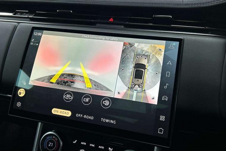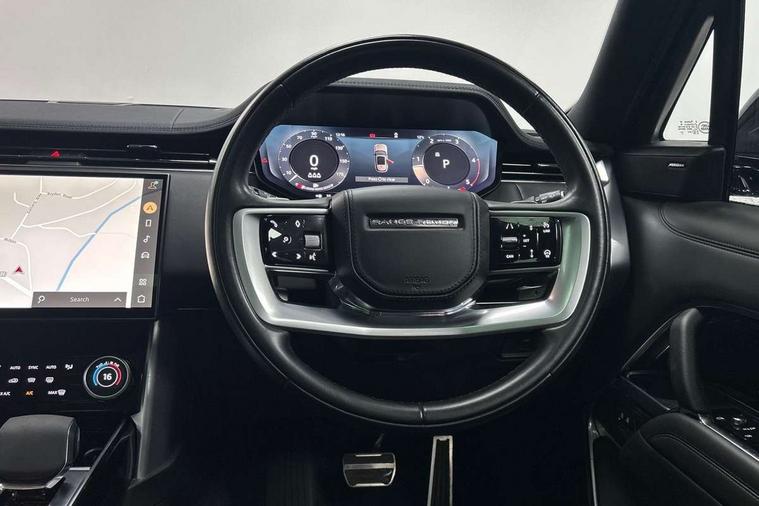 13.1" Touchscreen, 3D surround camera inc frwd traffic detection, vehicle clearance guidance, 3D view, clearsight ground view, manoevure light, 360 parking aid, wade sensing, Adaptive cruise control with steering assist, All Terrain Info Centre, All wheel steering, Android Auto, Apple car play, Blind spot assist, Bluetooth connectivity streaming, Driver condition response, Eco mode, Electric power assisted steering (EPAS), Emergency call service, Front and rear parking aid, Head up Display, Interactive driver display, Lane keep assist, Powered gesture tailgate/boot lid, Rear collision monitor, Rear traffic monitor, Remote, Traffic sign recognition with adaptive speed limiter, Wi-Fi Enabled with data plan, Wireless device charging with phone signal booster, 8 speed automatic transmission, Active damper technology system, Adaptive dynamics, All terrain progress control, All Wheel Drive (AWD), Automatic access height, Electronic active differential with torque vectoring by braking, Electronic air suspension with dynamic response, Terrain Response 2 Auto, Twin speed transfer box, Digital Audio Broadcast radio-DAB, Pivi pro including smart settings, Connected navigation pro, nuance speech, USB socket, Acoustic laminated windscreen, Animated directional indicators, Automatic headlights, Automatic levelling headlights, Centre high mounted stop light, ClearSight interior rear view mirror, Electric windows with one touch open/close and anti trap, Flush deployable exterior door handles, Front and rear recovery eyes, Front fog lights, Headlamp power wash, Heated rear window, Heated washer jets, LED tail lights, Power fold, auto-dimming, heated door mirrors with approach lights, Rain sensing windscreen wipers, Range rover badge, Rear boot, Rear fog lights, Rear side wing doors, Rear wash/wipe, Side repeater indicators in mirror, Trailer stability assist, Winter wiper park position, 12V power sockets, 3 seat bench in 2nd row, Air quality sensor, Bright metal pedals, Cabin air purification pro, Cabin lighting, Customer configurable single point entry, Driver and passenger front seat armrests, Easy boot loading, Ebony Carpet, Front and rear cupholders, Front and rear grab handles, Front head restraints, Gearshift paddles, Heated steering wheel, Hook in load space, Loadspace light, Luggage tie down in loadspace, Multifunction steering wheel, Rear centre armrest, Rear head restraints, Rear ISOFIX, Single front passenger seat, Soft close doors, Twin blade sunvisors with Illuminated vanity mirrors, Upper and lower glovebox, Online pack with data plan - Range Rover, 3x3 point rear seat belts, Anti-lock braking system (ABS), Brake hold function, Cornering brake control (CBC), Customer configurable autolock, DSC - Dynamic Stability Control, Electronic brake force distribution, Electronic parking brake, Electronic traction control, Emergency brake assist, Emergency braking, Front airbags with passenger seat occupant detector, Front side airbags, Hill descent control, Hill launch assist, Illuminated seat belt buckles, Low traction launch, Occupant protection assist, Power operated child locks, Roll stability control, Tyre pressure monitoring system (TPMS), Immobiliser, Intrusion sensor and alarm, Keyless entry, Locking wheel nuts, Remote central locking, Noble chrome controls,