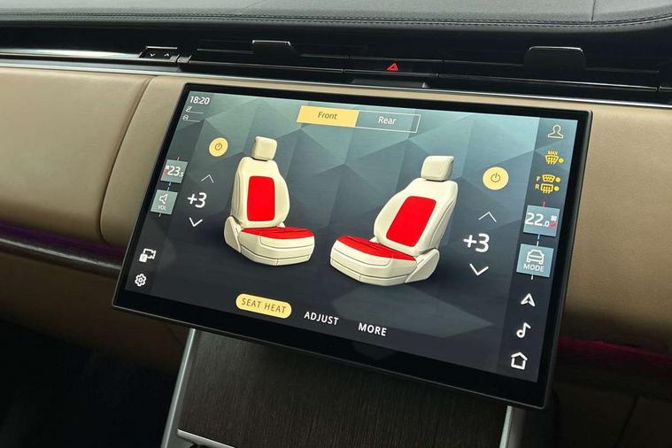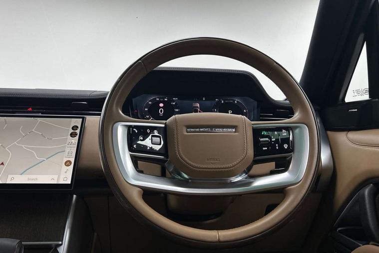 13.1" Touchscreen, 3D surround camera inc frwd traffic detection, vehicle clearance guidance, 3D view, clearsight ground view, manoevure light, 360 parking aid, wade sensing, All Terrain Info Centre, All wheel steering, Android Auto, Apple car play, Blind spot assist, Bluetooth connectivity streaming, Driver condition response, Eco mode, Electric power assisted steering (EPAS), Emergency call service, Front and rear parking aid, Interactive driver display, Lane keep assist, Park assist, Rear collision monitor, Rear traffic monitor, Remote, Traffic sign recognition with adaptive speed limiter, Wi-Fi Enabled with data plan, Wireless device charging with phone signal booster, 8 speed automatic transmission, Active damper technology system, Adaptive dynamics, All terrain progress control, All Wheel Drive (AWD), Automatic access height, Terrain Response 2 Auto, Twin speed transfer box, Digital Audio Broadcast radio-DAB, Pivi pro including smart settings, Connected navigation pro, nuance speech, USB socket, Acoustic laminated windscreen, Animated directional indicators, Automatic headlights, Automatic levelling headlights, Centre high mounted stop light, Electric windows with one touch open/close and anti trap, Engine cover, Flush deployable exterior door handles, Front and rear recovery eyes, Front fog lights, Headlamp power wash, Heated rear window, Heated washer jets, Illuminated aluminum treadplates with Range Rover script, LED tail lights, No badges, Pixel LED headlights with signature DRL, Power fold, auto-dimming, heated door mirrors with approach lights, Rain sensing windscreen wipers, Rear boot, Rear fog lights, Rear side wing doors, Side repeater indicators in mirror, Trailer stability assist, Winter wiper park position, 12V power sockets, 3 seat bench in 2nd row, Air quality sensor, Bright metal pedals, Cabin lighting, Customer configurable single point entry, Driver and passenger front seat armrests, Easy boot loading, Ebony Carpet, Front and rear cupholders, Front and rear grab handles, Front head restraints, Gearshift paddles, Heated steering wheel, Hook in load space, Loadspace light, Luggage tie down in loadspace, Multifunction steering wheel, Rear centre armrest, Rear head restraints, Rear ISOFIX, Single front passenger seat, Soft close doors, Upper and lower glovebox, Online pack with data plan - Range Rover, 3x3 point rear seat belts, Anti-lock braking system (ABS), Brake hold function, Cornering brake control (CBC), Customer configurable autolock, DSC - Dynamic Stability Control, Electronic brake force distribution, Electronic parking brake, Electronic traction control, Emergency braking, Front airbags with passenger seat occupant detector, Front side airbags, Hill descent control, Hill launch assist, Low traction launch, Occupant protection assist, Power operated child locks, Roll stability control, Tyre pressure monitoring system (TPMS), Immobiliser, Intrusion sensor and alarm, Keyless entry, Locking wheel nuts, Remote central locking, Noble chrome controls,
