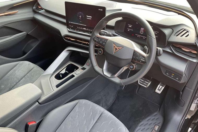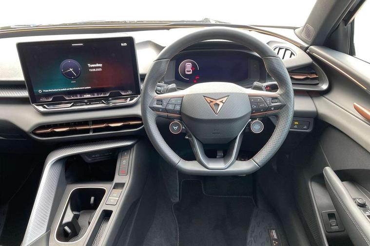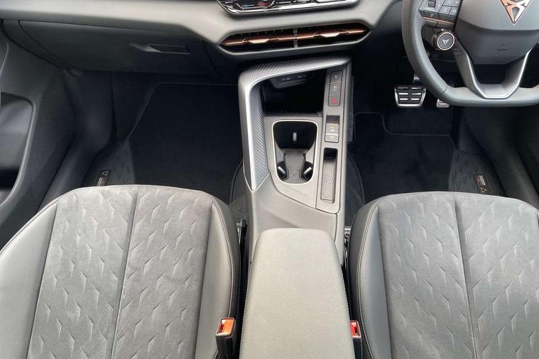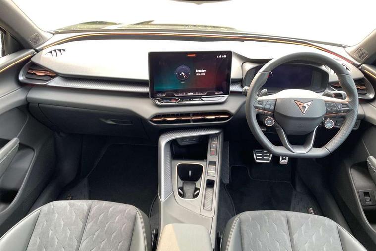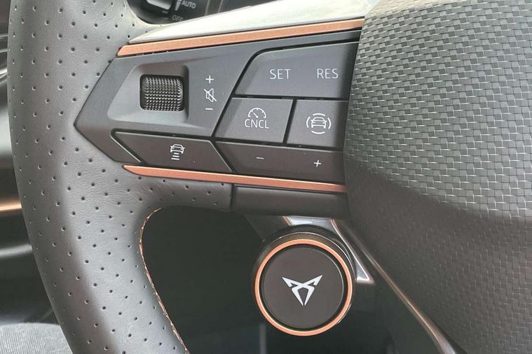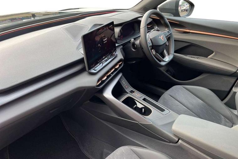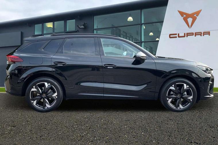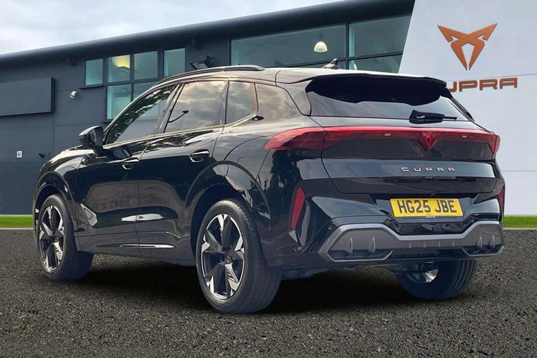 10.25" digital cockpit and configurable dashboard, Adaptive cruise control with follow-to-stop and speed limiter, Advanced driver alert system, Advanced lane assist with semi-automatic vehicle control in a medical emergency and traffic jam assist, Driving profile selection and conventional shock absorber, Dynamic road sign display, E-call, Electric tailgate with virtual pedal, Emergency steering support with turn assist, Four x USB Type C ports (2 in front and 2 in rear), Front and rear parking sensors, Front assist (Forward collision warning with automatic braking) with multifunction camera and front cross traffic assist, Head up Display, Intelligent park assist, Media system with Nav - 12.9" touch display, voice control, full link phone (wired/wireless), DAB and Steering wheel mounted controls, Rear traffic assist, Side and exit assist, Speed sensitive power steering, Start/stop system with regenerative braking, Top view camera (front camera, rear camera, 2 side cameras), Wireless phone charger, Auto dimming rear view mirror, Black roof rails, CUPRA 3D rear lights with ceremony & swiping indicator and illuminated logo, Dark tinted rear windows, Daytime running lights with automatic headlight control and Coming and Leaving home function, Door mirrors with memory function and lowing function on passenger mirror, Dynamic headlight range control, Electric front/rear windows, Electrically adjustable, heated and folding door mirrors, Front fog lamps with cornering function, Heat reflecting windscreen, High beam assist, LED headlamps with signature "CUPRA LED", Rain sensing wipers, Rear fog light on one side, back up light on both sides, Rear side wing doors, Rear wash/wipe, Third brake light, Welcome lights (within exterior mirror housing), 3 seat bench in 2nd row, Black roof lining, Cupra sports pedals, Dinamica cloth upholstery, Driver seat memory function, Electrically adjustable front seats including lumbar support, Front and rear head restraints, Front and rear reading lights X 4, Front centre armrest, Heated front seats, Heated leather wrapped multi function sports steering wheel with tiptronic, Illuminated interior front door sills, Isofix, Operating voltage 12V, Single front passenger seat, Smart wraparound interior lighting, Sunvisors with illuminated mirror, Three zone climate control with control panel in rear, Unsplit rear seat bench, split folding backrest, with centre armrest, Variable luggage/load compartment floor, 3 point seatbelts in front with pretensioner and electric height adjustment, 3 point seatbelts on all rear seats, Brake control system - ESC and brake booster, Child proof door locks, Driver and front passenger airbags, Electronic parking brake, Front and rear disc brakes, Front interaction airbag, Front passenger airbag deactivation switch, Front side airbags with curtain airbags, Pre-crash front and rear seat belt tensioner, window closure and hazard lights, Tyre pressure monitoring system, Visual and acoustic seat belt reminder, electric contact in front and rear, Anti theft alarm, Keyless locking and starting system with keyless access, Locking wheel bolts, Black decorative trims, Chrome interior detailing, 19" Spectrum exclusive machine alloy wheels, Tool kit,