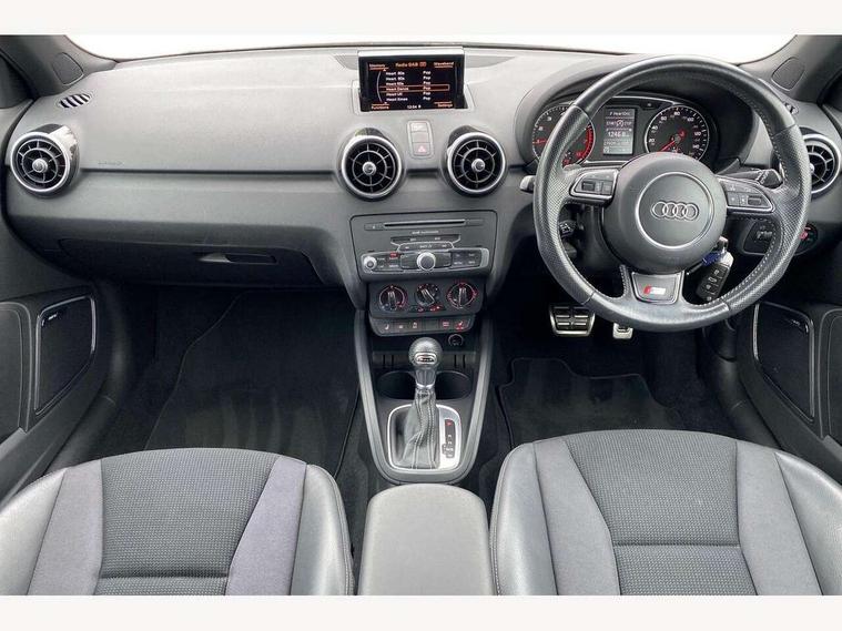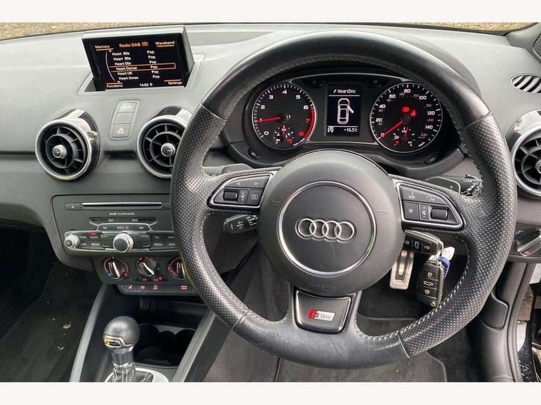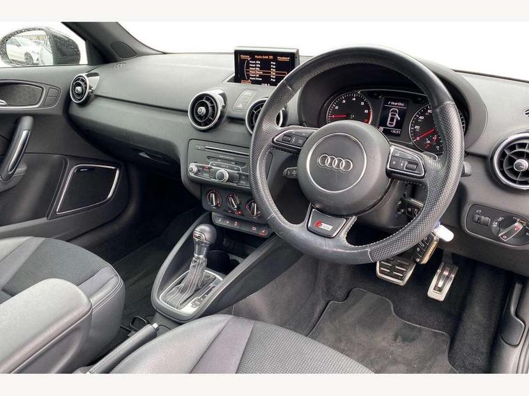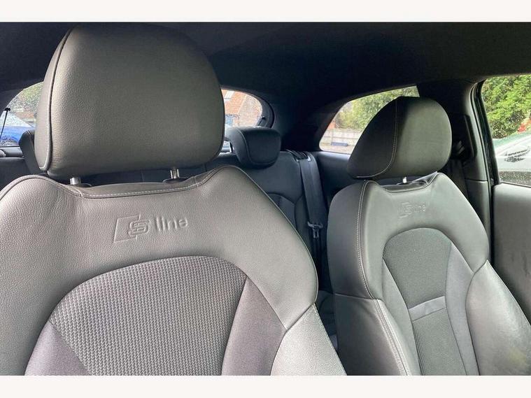 Audi drive select, Driver's information system, Electro-mechanical PAS, Low washer fluid indicator, Service interval indicator, Voice control system, Additional SD card reader, Audi music interface, Bluetooth audio streaming, DAB Digital radio, Adaptive brake lights, Adaptive Xenon headlights plus with LED daytime running lights, dynamic range control and headlight washers, Body coloured bumpers, Electric adjustable door mirrors, Electric front windows, Front fog lights, Heat insulating glass, Heated door mirrors, Heated rear windscreen, LED rear lights, Rear diffuser, Rear wiper, Roof spoiler, S Line body styling, 12V Accessory socket in centre console, Adjustable rear head restraints, Black cloth headlining, Cupholders in centre console, Door sills trims with aluminium inlays, Front floor mats, Front head restraints, Front seats - 'Easy Entry', Height adjustable front seats, Illuminated glovebox, Isofix attachments on outer rear seats, Jack and tool kit, Leather gear knob, Leather handbrake, Lumbar adjustment for front seats, Rake/reach adjustable steering wheel, Split folding rear seats, ABS/EBD, Brake assist function, Driver and passenger side airbags, Driver/Front Passenger airbags, EDL, ESP with ASR, First aid kit, Front and rear seatbelt reminder, Front passenger airbag deactivation, Head airbags, Height adjustable front seatbelts, Hill hold assist, Rear three point seatbelts x 2, Tyre pressure monitor, Warning triangle, Locking wheel bolts, Remote control central locking, Thatcham category 1 alarm + immobiliser, Tyre repair kit,