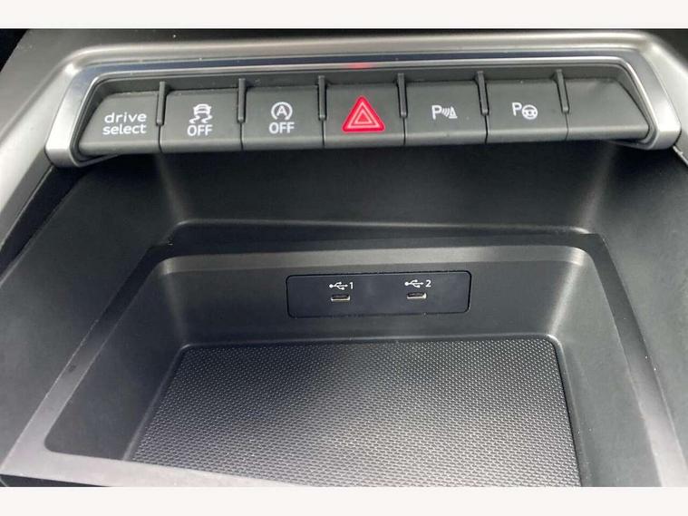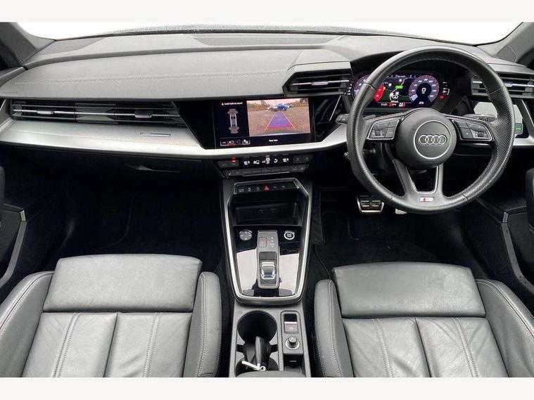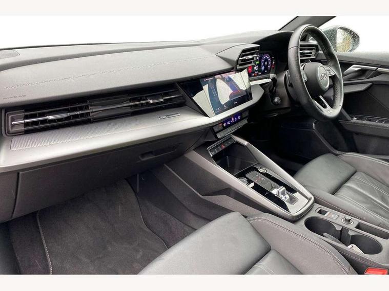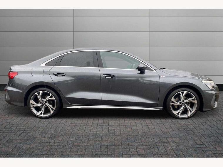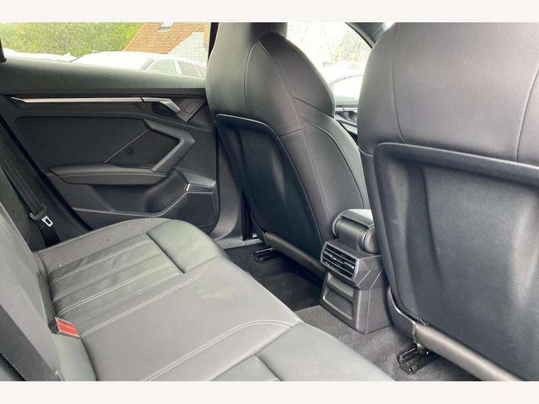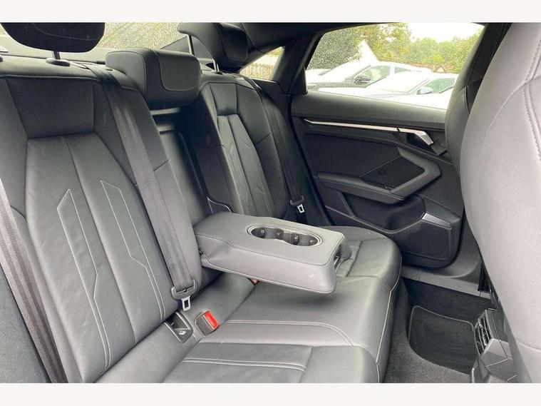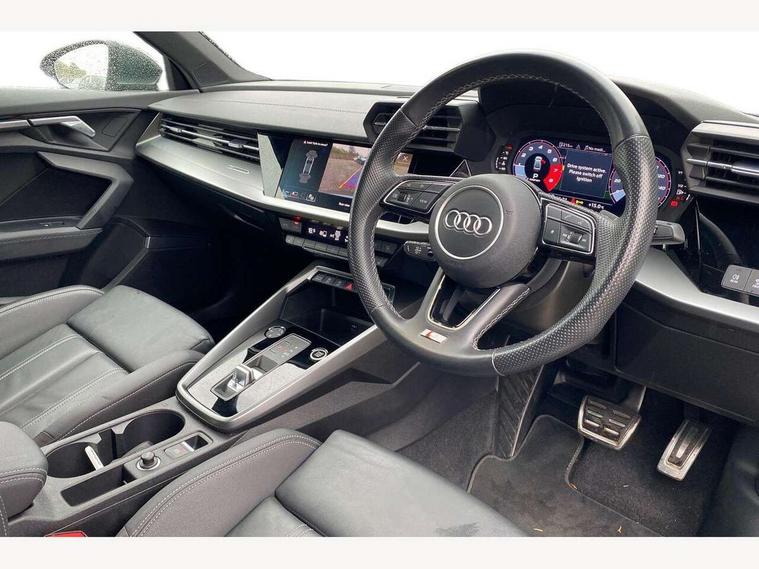 2x USB Type C ports (for charging and data transfer), Audi connect emergency call and service, Audi drive select (Auto, Comfort, Dynamic and Individual), Audi smartphone interface, Audi Virtual Cockpit - 10.25" digital and colour instrument cluster, Automatic start/stop system with recuperation, Bluetooth interface, Collision avoidance assistant, Electromechanical power speed sensitive steering, Lane departure warning system, MMI Navigation Plus with high resolution 10.1" colour touch screen display, Service indicator, Voice control system with natural language interaction, 6 passive loudspeakers, CD player, DAB Digital radio, 3rd brake light, Acoustic glass windscreen, Aluminium window trim, Auto dimming frameless rear view mirror, Electrically adjustable/heated/folding/dimming door mirrors with kerb view includes integrated LED indications + kerb view function for passenger side, Front electric windows, Illuminated door sills with aluminium inserts at the front with S logo, LED daytime running lights, LED headlights with LED rear lights and dynamic rear indicators, Light and rain sensors, Model and engine designation badges at rear, Privacy glass - dark tinted rear window, rear door and side windows, Rear electric windows, S line bumpers, S roof spoiler, 12V socket and storage compartment in front centre console, 40/20/40 split folding rear seat bench with cupholder, Black cloth headlining, Dual zone electronic climate control, Front and rear centre armrest in leather, Front and rear headrests, Front/rear floor mats, Height and reach adjustable steering wheel, Interior lighting - glove compartment light and right hand side, Luggage compartment floor covering, Manual boot compartment lid, Manually adjustable front sport seats, Seat side bolsters, Stainless steel pedals and front footrest in black, Twin leather upholstery with front sports seats S embossed logo, Aluminium interior elements pack - A3 Saloon, S line styling pack - A3 Saloon, 3x3 point rear seat belts, Driver and front passenger airbag with passenger airbag deactivation, Electronic Stabilisation Control (ESC) including ABS, ASR and EDL, First aid kit with warning triangle and 2 safety vests, Front side airbags with head airbags and interaction airbag, Hill hold assist, Pre-sense front with pedestrian and cyclist detection, Seatbelt monitoring, Tyre pressure loss indicator, Anti theft alarm, Anti-theft wheel bolts, Electronically operated child lock, Immobiliser, Remote control central locking, Aluminium air vent surrounds, Aluminium trim elements, Dark spectrum aluminium inlays, accent surfaces in the dashboard and centre console in platinum grey silk effect paint finish,