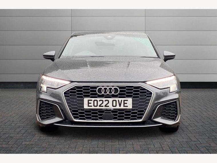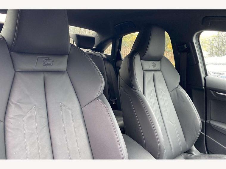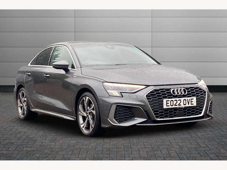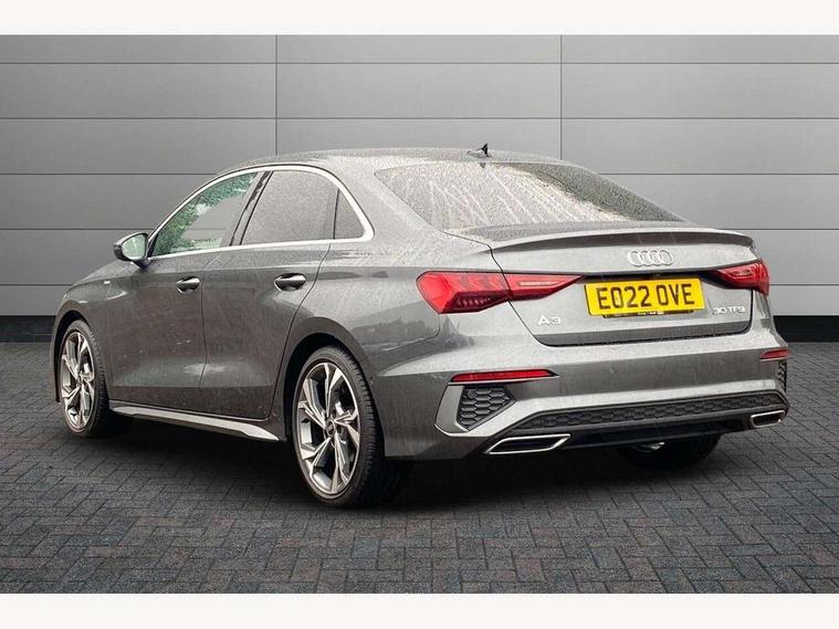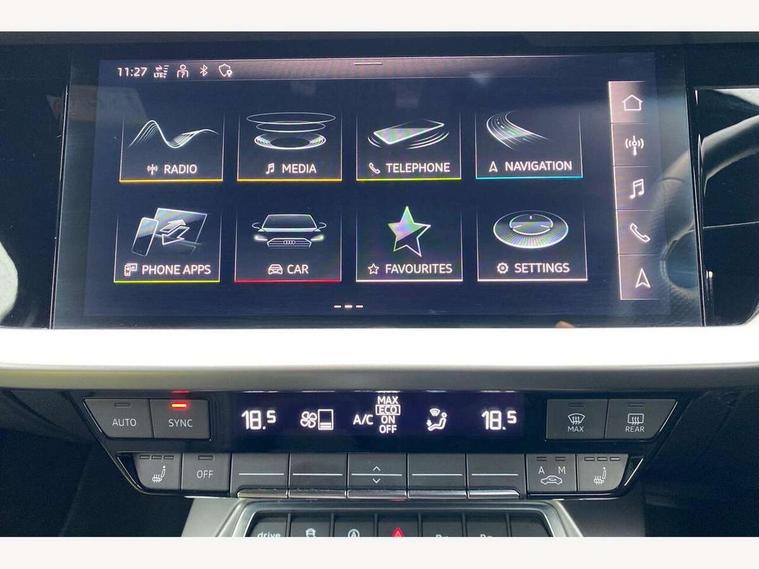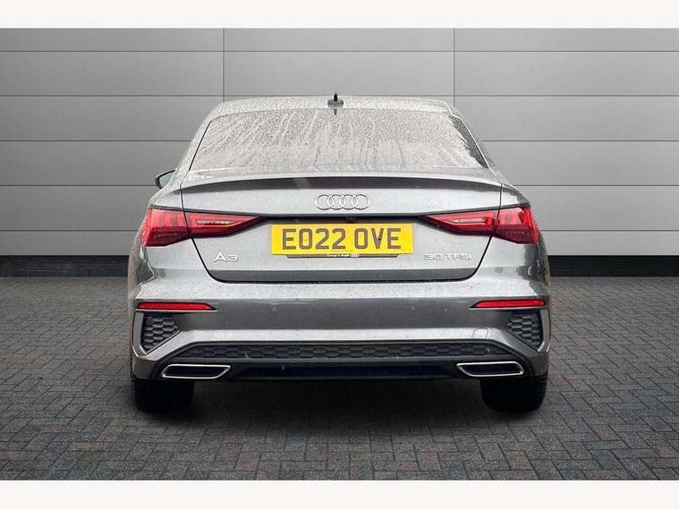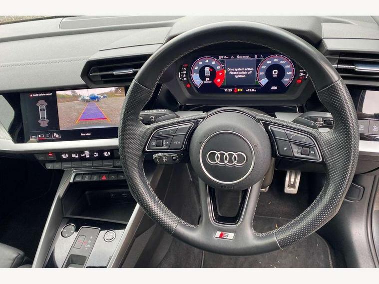 2x USB Type C ports (for charging and data transfer), Audi connect emergency call and service, Audi drive select (Auto, Comfort, Dynamic and Individual), Audi smartphone interface, Audi Virtual Cockpit - 10.25" digital and colour instrument cluster, Automatic start/stop system with recuperation, Bluetooth interface, Collision avoidance assistant, Electromechanical power speed sensitive steering, Lane departure warning system, MMI Navigation Plus with high resolution 10.1" colour touch screen display, Service indicator, Voice control system with natural language interaction, 6 passive loudspeakers, CD player, DAB Digital radio, 3rd brake light, Acoustic glass windscreen, Aluminium window trim, Auto dimming frameless rear view mirror, Electrically adjustable/heated/folding/dimming door mirrors with kerb view includes integrated LED indications + kerb view function for passenger side, Front electric windows, Illuminated door sills with aluminium inserts at the front with S logo, LED daytime running lights, LED headlights with LED rear lights and dynamic rear indicators, Light and rain sensors, Model and engine designation badges at rear, Privacy glass - dark tinted rear window, rear door and side windows, Rear electric windows, S line bumpers, S roof spoiler, 12V socket and storage compartment in front centre console, 40/20/40 split folding rear seat bench with cupholder, Black cloth headlining, Dual zone electronic climate control, Front and rear centre armrest in leather, Front and rear headrests, Front/rear floor mats, Height and reach adjustable steering wheel, Interior lighting - glove compartment light and right hand side, Luggage compartment floor covering, Manual boot compartment lid, Manually adjustable front sport seats, Seat side bolsters, Stainless steel pedals and front footrest in black, Twin leather upholstery with front sports seats S embossed logo, Aluminium interior elements pack - A3 Saloon, S line styling pack - A3 Saloon, 3x3 point rear seat belts, Driver and front passenger airbag with passenger airbag deactivation, Electronic Stabilisation Control (ESC) including ABS, ASR and EDL, First aid kit with warning triangle and 2 safety vests, Front side airbags with head airbags and interaction airbag, Hill hold assist, Pre-sense front with pedestrian and cyclist detection, Seatbelt monitoring, Tyre pressure loss indicator, Anti theft alarm, Anti-theft wheel bolts, Electronically operated child lock, Immobiliser, Remote control central locking, Aluminium air vent surrounds, Aluminium trim elements, Dark spectrum aluminium inlays, accent surfaces in the dashboard and centre console in platinum grey silk effect paint finish,
