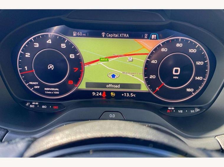 Audi connect navigation and infotainment includes innovative services, Audi connect remote and control connects your vehicle to your smartphone, Audi drive select, Audi drive select with efficiency, Audi smartphone interface, Audi virtual cockpit, Automatic start/stop system with recuperation, Bluetooth interface includes bluetooth audio streaming, Cruise control, MMI navigation plus with MMI touch, Power operated tailgate, Progressive steering, Rear parking sensors, 2 x SDXC card reader, 8 passive loudspeakers, DAB Digital radio, DVD Drive, Auto dimming rear view mirror, Black window trims, Body colour door mirrors, Electrically adjustable, folding, auto dimming and heated door mirrors with integrated LED side indicators, Front windscreen with grey tinted sunband, LED headlights with dynamic rear indicators, Side skirts in manhattan grey, Wheel arch trims in manhattan grey, 4-way electric lumbar support for front seats including seat height adjustment for both front seat, 60/40 split folding rear seat bench, Front and rear head restraints, Front centre armrest, Front/rear floor mats, Height/reach adjust steering wheel, Index cloth upholstery + front sports seats, ISOFIX child seat mounting for front passenger with airbag deactivation and outer rear seat including top tether attachment point for outer rear seats, Titanium grey cloth headlining, 3x3 point rear seatbelts, 6 airbags - Front, curtain and front side airbags, Electromechanical parking brake, Electronic stabilisation control including ABS, ASR and EDL, Hill hold assist, Pre-sense front with pedestrian recognition, Seatbelt monitoring, Tyre pressure warning light, Warning triangle and first aid kit, Anti theft alarm, Anti theft wheel bolts, Electronically operated child locks, Aluminium interior element, Inlays in silver grey diamond paint, Tool kit,