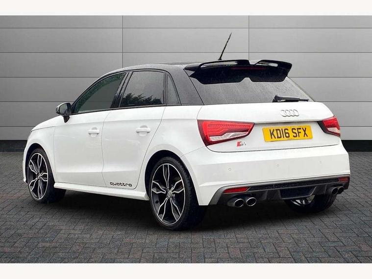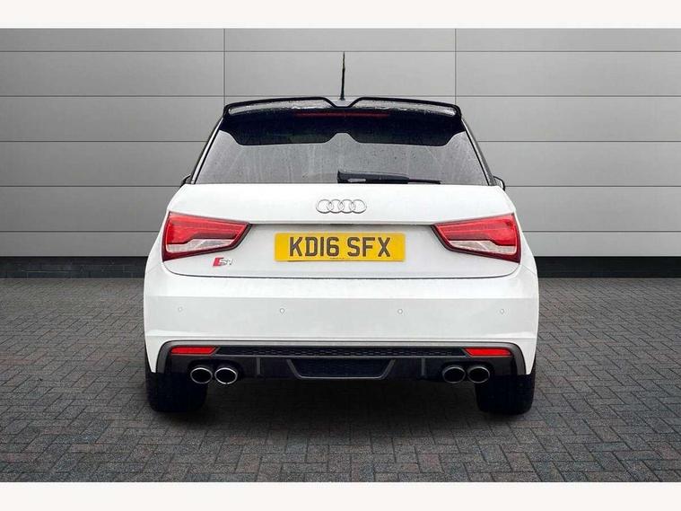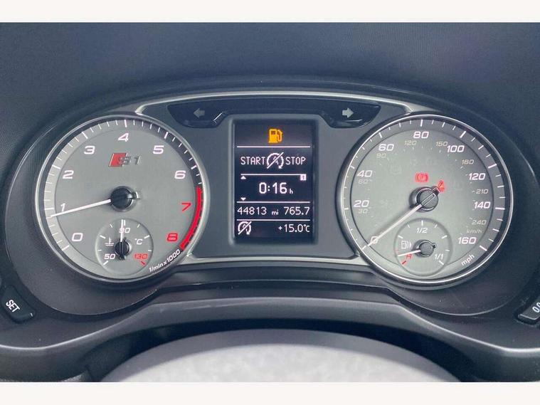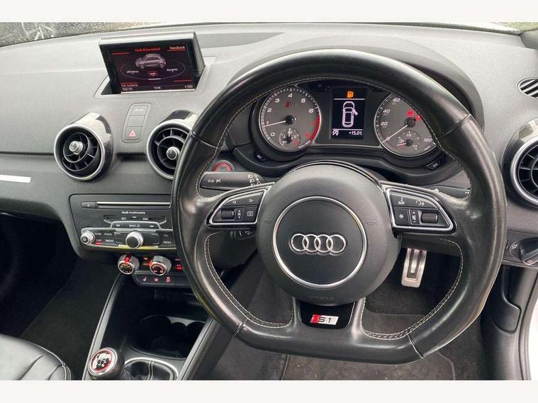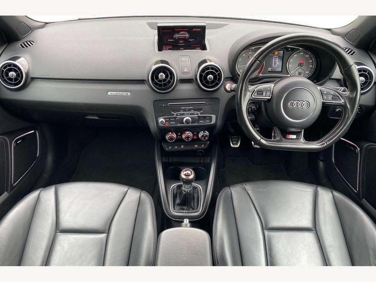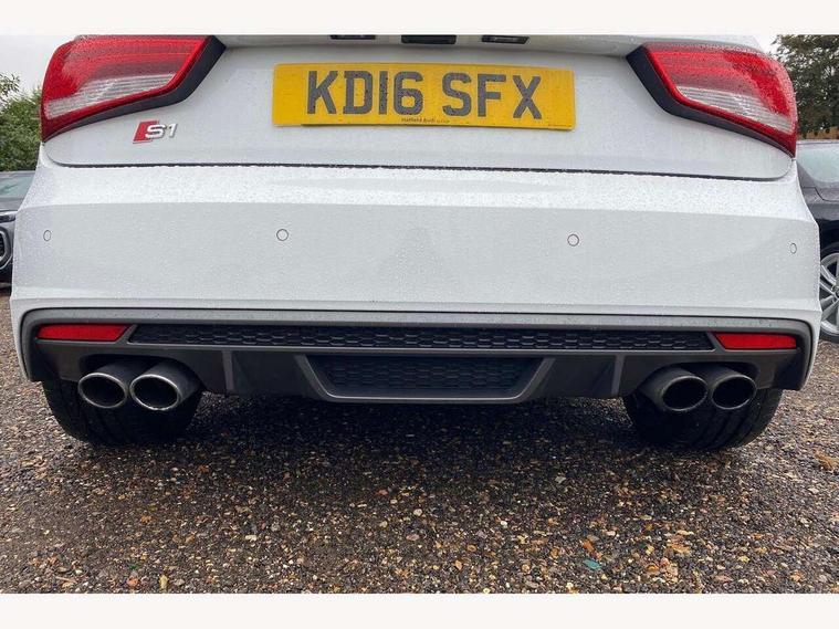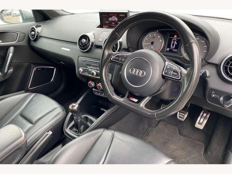 Audi drive select, Driver's information system, Low washer fluid indicator, Service interval indicator, Speed sensitive power steering, Variable Damper Control, Voice control system, S sports suspension, Additional SD card reader, Audi music interface, Bluetooth audio streaming, DAB Digital radio, Adaptive brake lights, Aluminium door mirror housings, Body coloured bumpers, Dual branch oval twin exhaust tailpipes, Electric adjustable door mirrors, Electric front windows, Electric rear windows, Heat insulating glass, Heated door mirrors, Heated rear windscreen, Rain and light sensors, Rear diffuser, Rear wiper, S body styling, Xenon plus headlights including automatic headlights, LED daytime running lights, LED rear lights, dynamic range control and headlight washers, 12V Accessory socket in centre console, 2 rear seats, Adjustable rear head restraints, Cupholders in centre console, Door sills trims with aluminium inlays, Electronic climate control (ECC), Front floor mats, Front head restraints, Height adjustable front seats, Illuminated glovebox, Isofix attachments on outer rear seats, Jack and tool kit, Leather handbrake, Lumbar adjustment for front seats, Mono.pur centre console and door armrest, Rake/reach adjustable steering wheel, Split folding rear seats, Stainless steel pedals, LED interior lighting pack - A1, ABS/EBD, Brake assist function, Driver and passenger side airbags, Driver/Front Passenger airbags, EDL, ESP with ASR, First aid kit, Front and rear seatbelt reminder, Front passenger airbag deactivation, Head airbags, Height adjustable front seatbelts, Rear three point seatbelts x 2, Tyre pressure monitor, Warning triangle, Locking wheel bolts, Remote control central locking, Thatcham category 1 alarm + immobiliser, Aluminium trim, Tyre repair kit,
