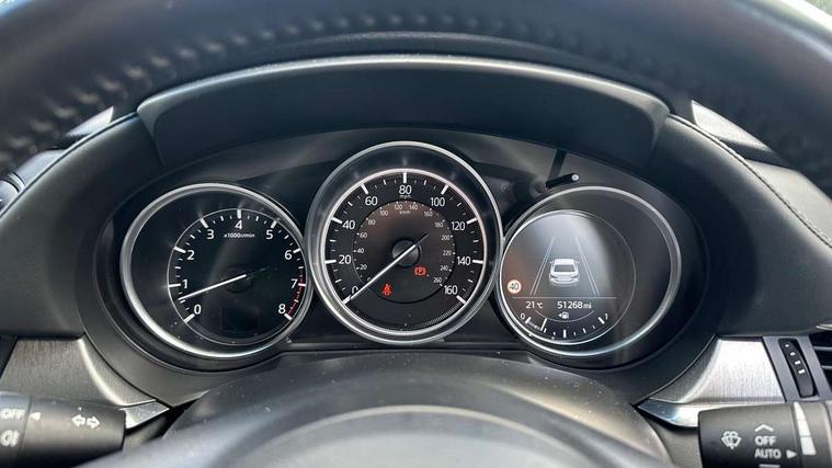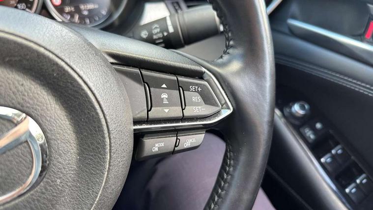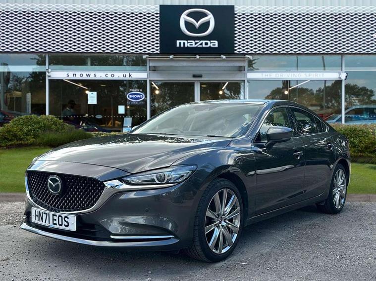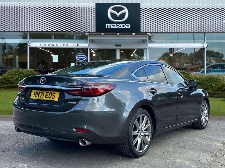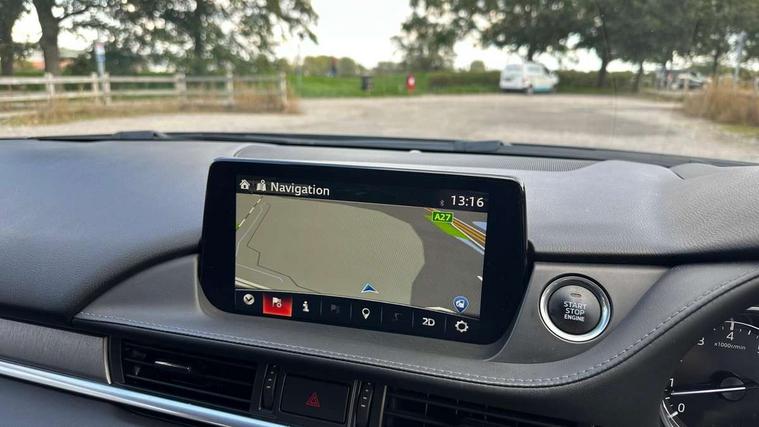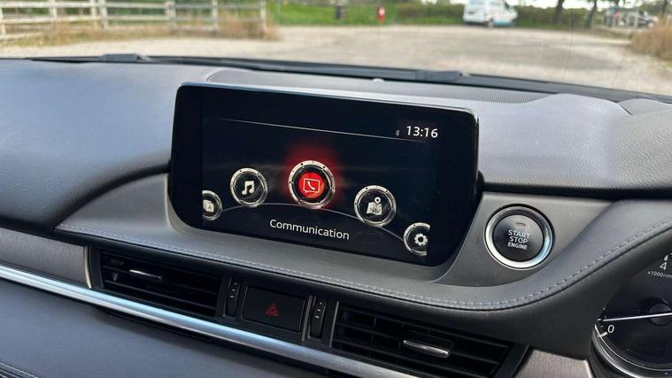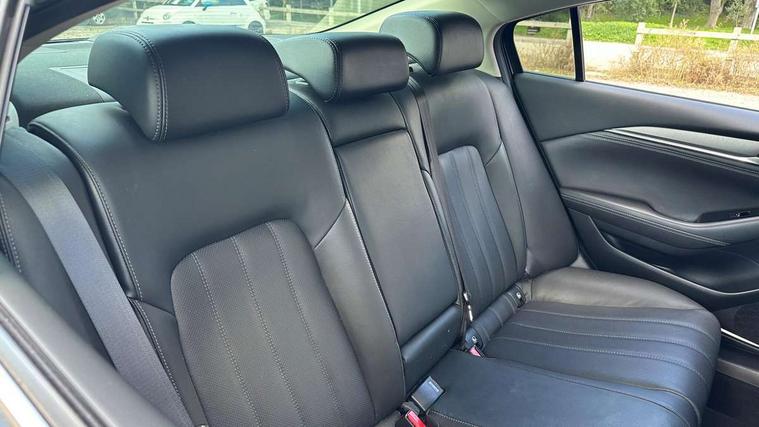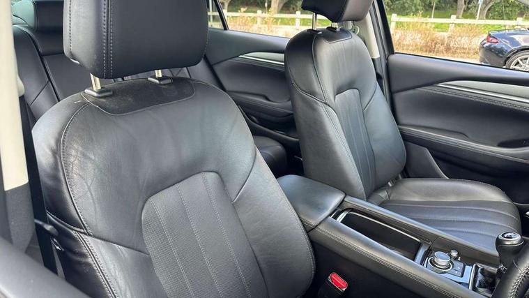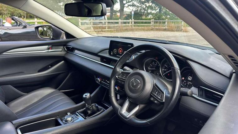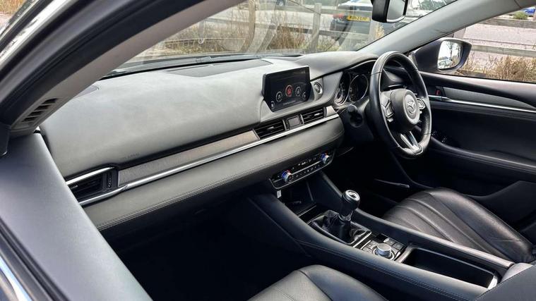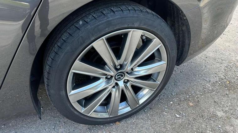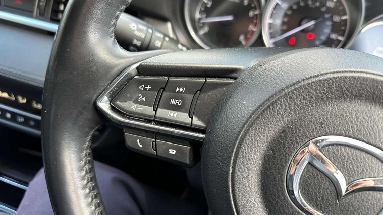 8" touchscreen with multimedia commander, Adjustable speed limiter, Audio transfer from bluetooth devices, Blind spot monitoring with rear cross traffic alert, Bluetooth connectivity with voice control, Colour head up display, Colour TFT display with speed, traffic signs and cruise control information, Electric power steering, Emergency stop signalling system, Engine start/stop button, Front and rear parking sensors, Intelligent speed assist, Lane keep assist system (LAS) with Lane departure warning system (LDWS), Radar cruise control, Reversing camera, Satellite navigation system with european maps, Service indicator, Traffic sign recognition, Trip computer, Wireless Apple CarPlay and wired Android Auto, I-ELOOP, i-stop, 2 USB ports, Additional USB connection in rear, Auxiliary input socket, Mazda Multimedia System - AM/FM/DAB radio, MP3 with 11 Bose speakers, Steering wheel mounted audio controls, Adaptive front lighting system, Auto dimming rear view mirror, Body colour door handles, Body colour rear roof spoiler, Body coloured door mirrors, Body coloured rear bumper, Chrome garnish front bumper mouldings, Coming/leaving home lighting function, Dual chrome exhaust, Dusk sensitive headlamps, Electric front/rear windows/one touch facility, Electrically adjustable/heated/auto power folding door mirrors with integrated indicators, Gloss black grille inserts, High beam control, LED auto leveling headlights, LED front fog lights, Privacy glass, Rain sensing front wipers, Rear bumper with black lower mouldings, Rear fog lights, Scuff plates, Signature LED daytime running lights, Signature LED rear combination lights with LED rear turn lights, Windscreen wiper de-icer, 12V power socket in centre console, 2 cupholders, 3 height adjustable rear headrests, 60/40 split folding rear seat, Driver seat with power slide, recline, height and lumbar adjustment with memory, Driver, Front passenger and two rear grab handles with coat hooks, Driver/passenger sunvisors with ticket holders + vanity mirrors, Dual zone climate control, Folding rear centre armrest with USB input, Front armrest with storage bin, Front centre console storage, Front driver and passenger seatback pocket, Front passenger and driver door pockets, Front passenger seat with power slide, recline and height adjustment, Gear shift indicator, Heated front seats, Heated steering wheel, Illuminated glovebox with lock, Interior incandescent lighting, Isofix rear child seat fastenings, Leather steering wheel and gear knob, Leather upholstery, Light roof lining, Luggage compartment lighting, Rear air vents, Roof mounted sunglasses holder, Tilt/telescopic adjustable steering wheel, 3 point ELR front seat belts, 3 rear 3 point seatbelts with ELR, ABS + EBD + EBA, Active bonnet, Active front headrests, DSTC-Dynamic Stability and Traction Control, Dual front airbags, Electronic parking brake with auto hold, Front Advanced Smart City Brake Support (SCBS), Front and rear curtain airbags, Front passenger airbag cut off switch, Front side airbags, G-Vectoring control plus, Height adjustable front seatbelts with pre-tensioners and load limiters, Hill hold control, Seatbelt reminder front and rear, Tyre pressure monitoring system, Automatic door locking, Deadlocking system, Remote central locking, Smart keyless entry, Thatcham category 1 alarm + immobiliser, 19" Bright alloy wheels, Tyre repair kit,