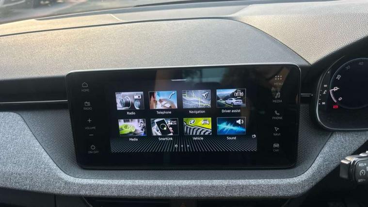 Advanced driver attention and drowsiness monitor, Bluetooth system, E-call, Front assist system, PAS, Rear parking sensors, Rear view camera, Service indicator, Speed limiter, Traffic sign recognition, Virtual cockpit with 10.25" display, Wireless smartlink, 4 USB C ports, 8 Speakers, 9.2" Skoda navigation display, DAB Digital radio, Auto dimming rear view mirror, Automatic headlight control with coming home and leaving home feature, Black roof rails, Body colour bumpers, Body colour door mirrors and handles, Chrome grille surround, Front and rear electric windows, Full LED headlights, Heated rear window, LED brake lights, LED daytime running lights, LED front turning lights, LED high beam, LED low beam, LED third brake light, Rear LED fog light, Rear side wing doors, Rear wiper, Ticket holder inside windscreen, 12V socket in luggage compartment, 3 seat bench in 2nd row, Black hotstamping, Cargo elements, Chrome inner door handles, Driver and passenger sun visors with vanity mirror, Dual zone climate control, Front and rear roof lights, Front centre armrest, Front head restraints, Glove compartment with illumination, Height adjustable driver seat, Height adjustable front passenger seat, Ice scraper, Inner circulation control with pollen filter, ISOFIX on front passenger seat, Isofix preparation for back seats, Krepp recycled decor inserts, Leather gearknob and handbrake lever, Loft cloth upholstery, Manual lumbar support for front seats, Net package and top tether hooks in boot space, Net under rear shelf, Overhead glasses storage compartment, Pocket on the back of both front seats include mobile phone pockets, Rake/reach adjustable steering wheel, Reading lights, Satin black door inserts, Single front passenger seat, Textile floor mats, Third rear headrest, Top tether for front passenger seat, Umbrella in driver's door, 3x3 point rear seatbelts, Airbags - driver and front passenger, Disc brakes, ESP, Extended and predictive pedestrian/cyclist protection, Front passenger airbag deactivation switch, Front side airbags with curtain airbags, Hill hold control, Manual leather parking brake, Manual rear child locks, One tone horn, Seatbelt reminder for driver an co-driver, Traction control, Tyre pressure monitor, Anti-theft alarm system with interior monitoring, backup horn, towing protection and remote central locking with SAFE system, Anti-theft wheel bolts, Electronic engine immobilizer,