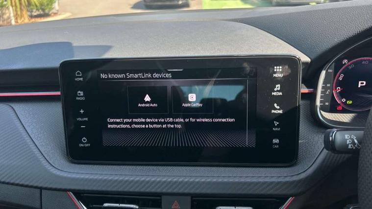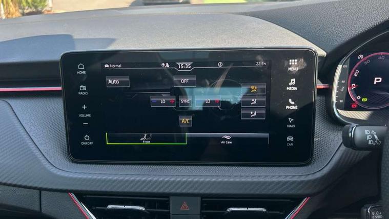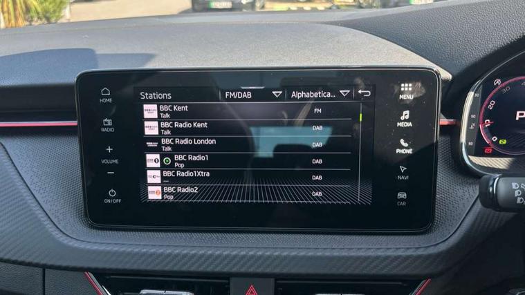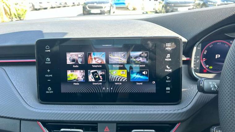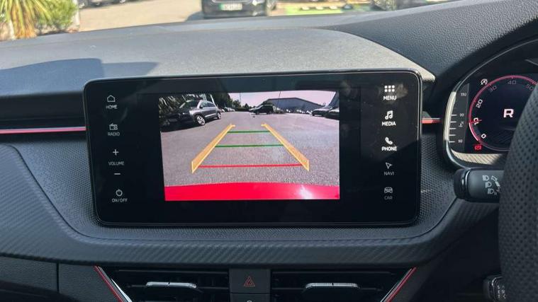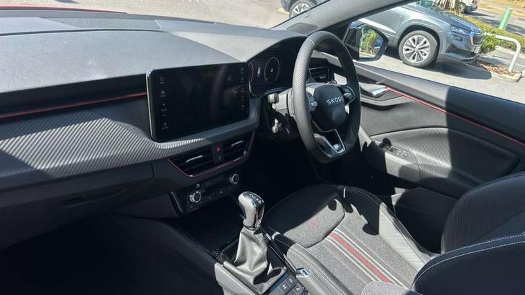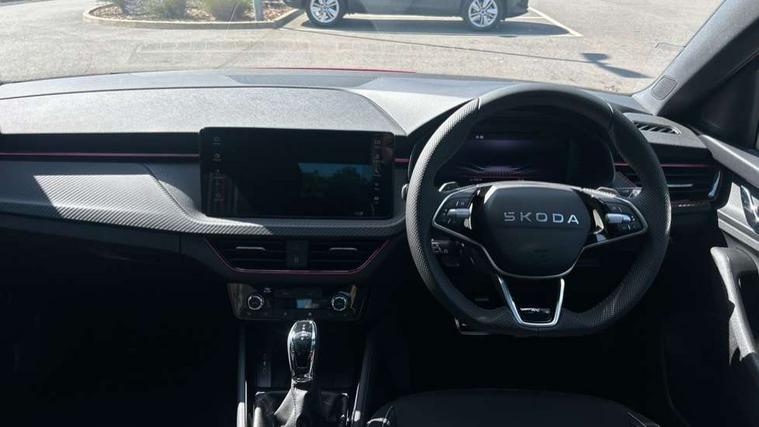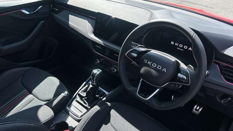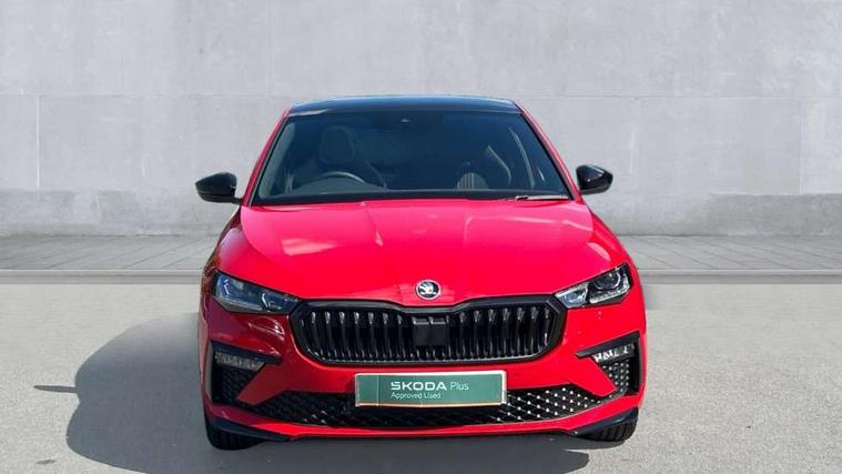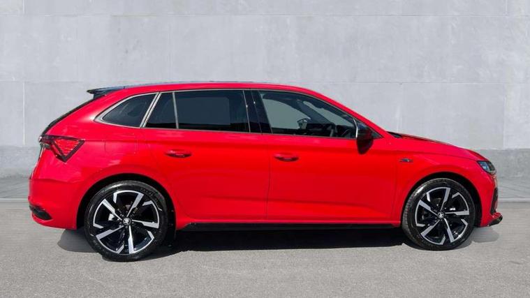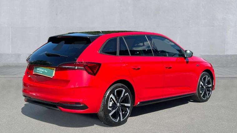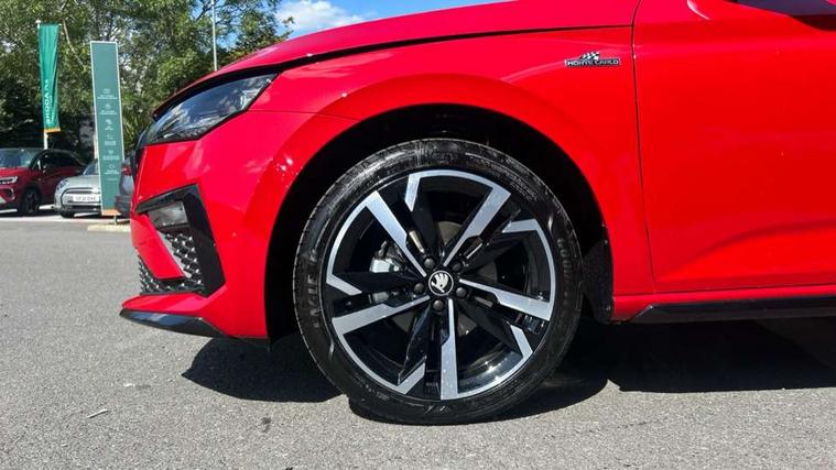 Advanced driver attention and drowsiness monitor, Bluetooth, e-Call (emergency call), Front assist system, PAS, Rear parking sensors, Rear view camera, Speed limiter, Tailgate, Traffic sign recognition, Virtual Cockpit - 10.25" digital display, Voice control system, Wireless smartlink, 4 USB C ports, 8 Speakers, 9.2" Skoda navigation display, DAB radio, Auto dimming rear view mirror, Automatic headlamp activation with Coming home and Leaving home feature, Automatic high/low beam, Automatic intermittent wipers, Black door mirrors, Black lettering on boot lid, Black radiator grille, Black rear diffuser, Black roof spoiler, Body colour bumpers, Body colour door handles, Chrome moulding around grille, Extended tailgate glass, Front and rear electric windows, Heated rear window, LED 3rd brake light, LED brake lights, LED daytime running lights, LED high beam, LED low beam, Light sensors, Monte carlo plaque, Panoramic glass roof, Privacy glass, Rear LED fog light, Rear side wing doors, Rear wiper, Tinted windows, Unique dark chrome design logo on alloy wheels, 12V socket in luggage compartment, 3 seat bench in 2nd row, Aluminium pedals, Ambient lighting in white/red, Black / White armrest stitching, Black ceiling, Black roof headlining, Cargo elements, Chrome inner door handles, Door inserts in art.leather carbon, Driver and passenger sun visors with vanity mirror, Dual zone climate control, Front and rear roof lights, Front centre armrest, Front head restraints, Height adjustable driver seat, Height adjustable passenger seat, Ice scraper, Illuminated glove compartment, Inner circulation control with pollen filter, ISOFIX for front passenger seat, Isofix preparation for back seats, Leather gearknob and handbrake lever, Luggage net under rear parcel shelf, Manual lumbar support for front seats, Monte Carlo cloth upholstery, Net package and top tether hooks in boot space, Pocket on the back of both front seats, incl. mobile phone pockets, Rear centre armrest, Red hotstamping, Single front passenger seat, Skoda lettering on steering wheel, Sport seats, Textile floor mats, Third rear headrest, Ticket holder, Top tether for front passenger seat, Umbrella in driver's door, Light and view plus pack - Scala, 3x3 point rear seatbelts, ABS, Child locks, Curtain airbags and front side airbags, Disc brakes, Driver and front passenger airbags, ESP, Hill hold control, Manual leather parking brake, One tone horn, Passenger airbag switch off function, Seatbelt reminder for driver and front passenger, Tyre pressure monitoring system, Anti theft alarm system with interior monitoring, backup horn and towing protection, Anti-theft wheel bolts, Remote central locking with 2 remote folding keys, SAFE function for remote central locking, Carbon effect decorative inserts, 18" Ursa black diamond cut alloy wheels,