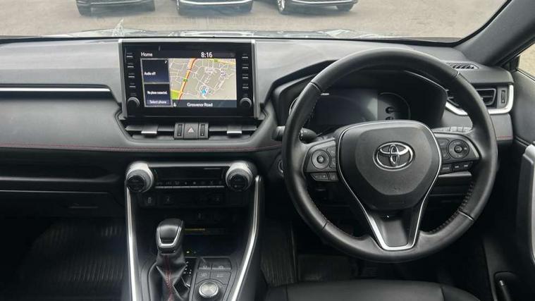 7" Coloured TFT multi informational display, Analog tachometer, Apple car play and Android auto, Blind spot monitoring with rear cross traffic alert, Bluetooth system, Cyclist Detection, Day and night time pedestrian detection, Digital speedometer, Drive mode selector, Driver attention alert system, eCall emergency call system, ECO-driving indicator, Electric power steering, EV audible alert, Front parking sensors, Hybrid system indicator, Intelligent adaptive cruise control, Lane departure alert with steering control, Lane trace assist, Lights on warning, Memory on adjustable speed limiter, My T Connected services, Power boot opening and closing, Push button start, Rear parking camera, Rear parking sensors, Remote boot door release in cabin, Remote boot door release in key, Road sign assist - RSA, Smartphone integration, Touch 2 Go navigation system, Traffic sign recognition, Trip computer, Voice control system, Wireless Mobile Phone Charger, 6.6 kw fast charger, 7.5m cable with home charging plug, Vehicle Stability Control (VSC), 2x USB sockets in front armrest, 2x USB sockets in rear, 6 speakers, 9" Multimedia display, Auxiliary socket for external MP3 player, DAB audio, Toyota touch 2 multimedia system, USB in front centre console, Anti-jam protection on power windows, Auto high beam, Auto up and down function on all power windows, Automatic headlamp levelling, Automatic headlights, Automatic wipers, Automatically retractable door mirrors, Bi-tone black roof, Black door mirrors, Black door moulding, Black front bumper, Black front grille, Black front under-run, Black rear bumper, Black rear spoiler, Black rear under-run, Black roof rails, Black Shark-fin antenna, Body colour door handles, Chrome window surround, Door mirror puddle lights, Dual exhaust pipes, Electric adjustable door mirrors, Emergency brake-light signal (EBS), Follow me home headlights, Framed electrochromatic rear view mirror, Front fog lights, Heated door mirrors, Honeycomb upper front grille, LED daytime running lights, LED dual beam projector headlights, LED front light guide, LED High mounted stop lamp, LED rear lights, Power front windows, Power rear windows, Privacy glass, Rear windscreen defogger, Rear wiper, Trailer sway control, Turning signal integrated indicators in door mirrors, 1.5L front and rear bottle holder, 12V socket in boot, 12v socket in front, 220v power socket in boot, 2x Rear coat hooks, 3 rear headrests, 60/40 split fold rear seat back with toyota easy flat system, Adjustable speed limiter switch on steering wheel, Array microphone, Black roof lining, Blue ambient lighting on front cupholders and open tray on passenger dashboard, Boot light, Clean air filter, Driver and front passenger personal light, Driver and front passenger Whiplash Injury Lessening seats, Driver and passenger seatback pockets, Driver and passenger sunvisors with illuminated vanity mirrors, Dual sided deck board in boot, Dynamic sports seats, Floor mats, Folding rear centre armrest, Front centre armrest, Front cupholders, Front footwell lights, Front headrests, Front/rear roof mounted assist grips, Heated driver and front passenger seats, Heated rear seats, Illuminated entry system, Isofix child seat preparation, Leather gearshift, Lockable glovebox, Manual telescopic and tilt 3-spoke nappa leather steering wheel, Manually reclining and sliding front passenger seat, Multimedia switches on steering wheel, Pollen filter, Power height-adjustable sliding reclining and lumbar support for driver seat, Rear console box, Rear door armrests with cupholder, Rear passenger air vents, Rear view display in display audio screen with dynamic guide lines, Reclining rear seats, Remote dual zone automatic air conditioning, Retractable tonneau cover, Satin chrome interior door handles, Silver gear shift surround on centre console, Sunglasses holder, Synthetic leather upholstery, Telephone and voice recognition switches on steering wheel, Under floor storage in luggage area, 3x3 point rear seatbelts, ABS/EBD, Acoustic vehicle alerting system, Adjustable front driver and passenger seat belt extender, Brake assist function, Brake hold function, Child proof door locks, Collision mitigation braking system, Driver/Front Passenger airbags, Driver/front passenger side airbags, Drivers knee airbag, Electronic parking brake, Electronic Stability Programme (ESP), Front and rear curtain airbags, Front and rear seatbelt reminder, Front passenger airbag detector, Hill start assist, Passenger airbag cut-off device, Pedestrian detection, Pre collision system, Seatbelt pretensioners with load limiters, Toyota safety sense, Traction control, Tyre pressure warning, Glass-breaking alarm sensors, Immobiliser, Intrusion alarm, Light - on and Key in reminder, Motion sensor alarm, Remote central locking, Smart entry + Smart start, Speed sensitive auto door locking, Tilt detection sensors, Black centre air vent surround, Black centre console, Soft-touch black upper dashboard with silver insert, Soft-touch texture on lower dashboard, 19" 5 spoke black machined face alloy wheels, Tyre repair kit,