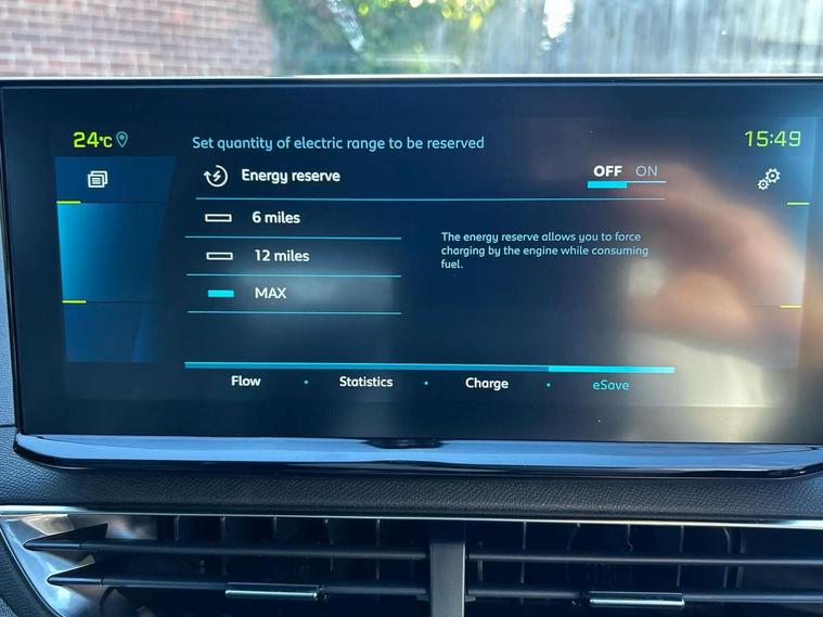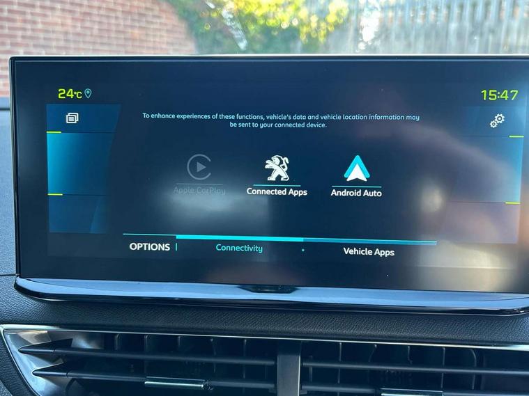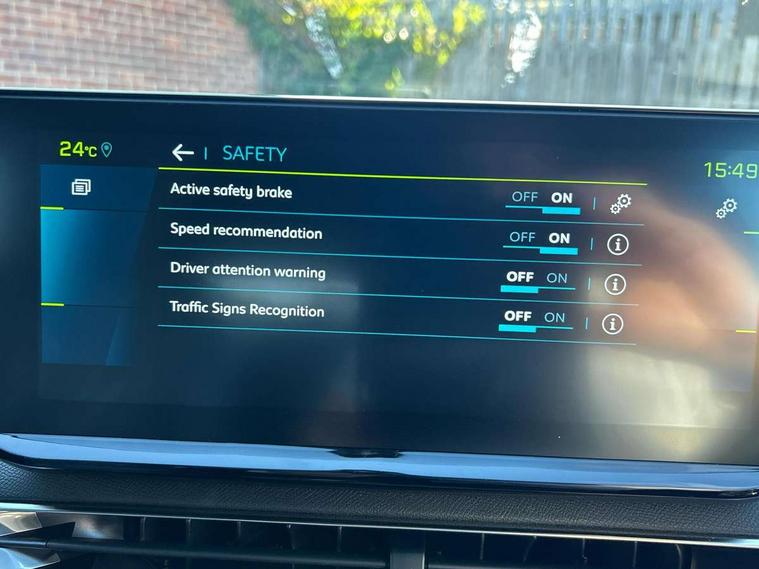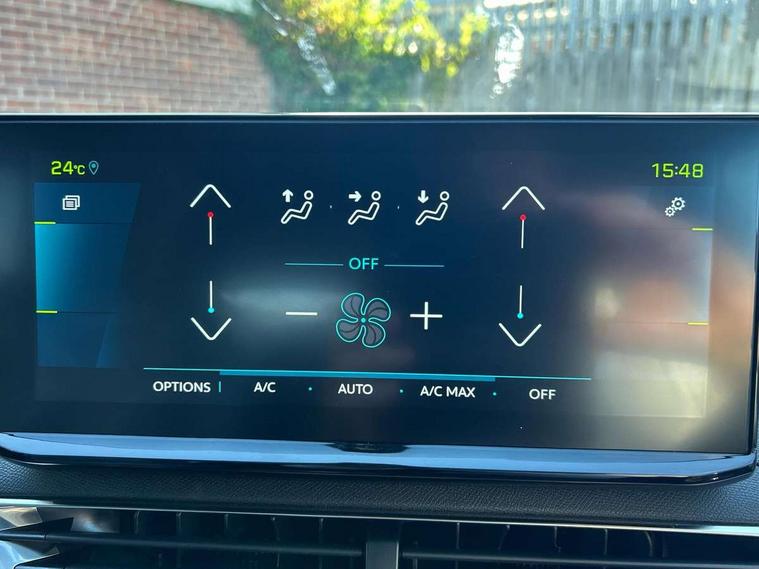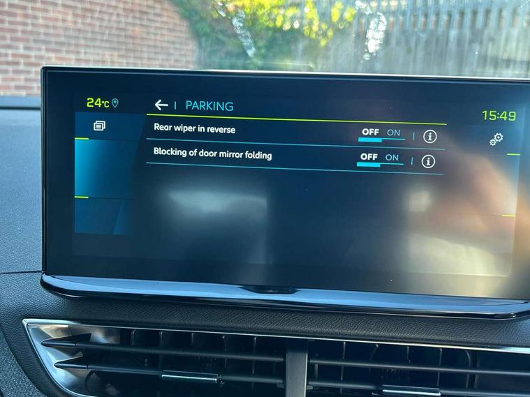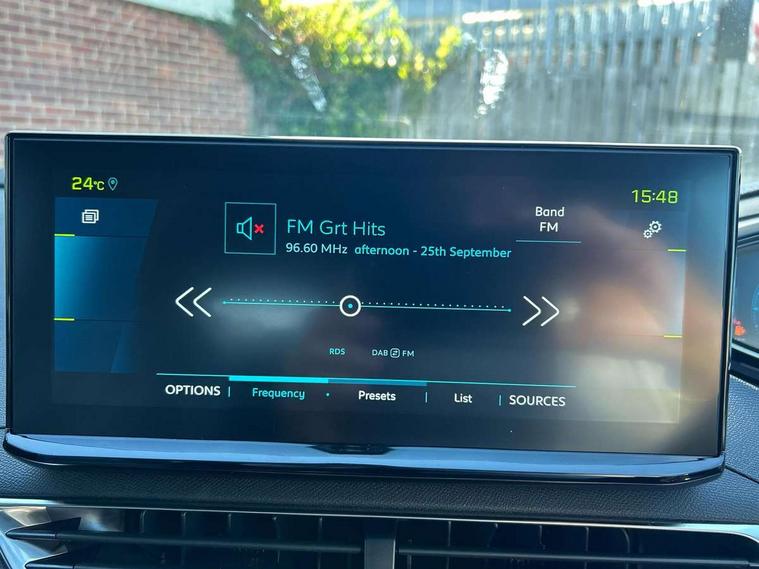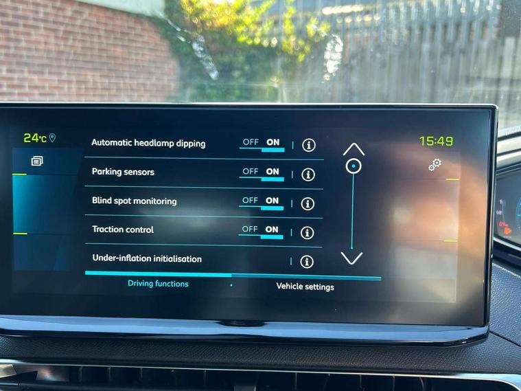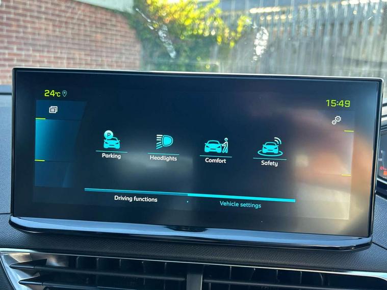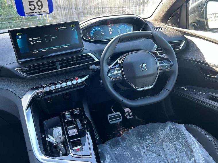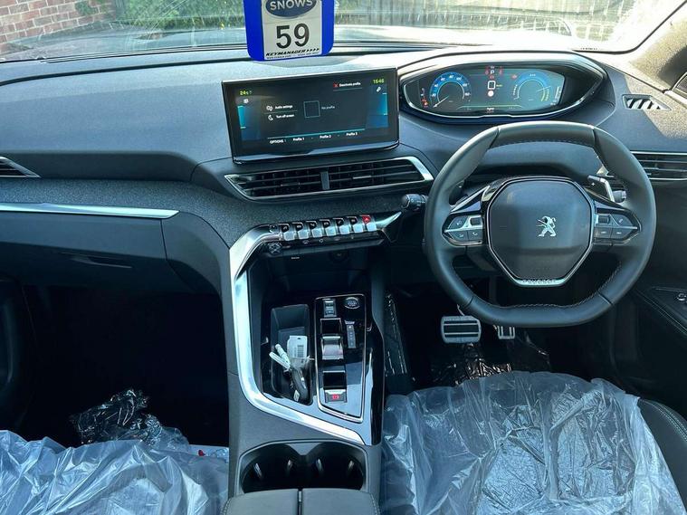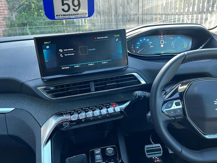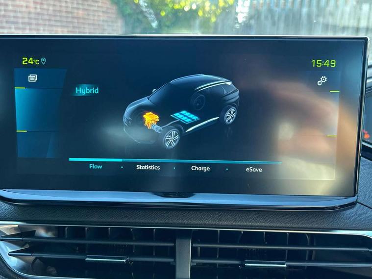 3D connected navigation with 10" HD touchscreen + voice recognition system, Apple car play and Android auto, Bluetooth telephone facility, Drive mode selector (Electric, Hybrid, Sport), Driving Time Warning (DAA1), Emergency services call system, Extended traffic sign recognition, Exterior temperature indicator with ice warning, Front and rear parking sensors, Lane departure warning system, Mirror screen with mirror link, apple carplay and android auto, Multi function trip computer, Peugeot i-cockpit with compact multi-function sports steering wheel, PEUGEOT i-Cockpit with configurable 12.3" Head-up digital instrument panel, PEUGEOT SOS and assistance, Speed limit recognition and recommendation, Deferred charging option, configurable in car or via My PEUGEOT App, Dynamic stability control and electronic anti-skid system, Mode 3 type 2 cable for wallbox charging, 6 speakers radio with mp3 compatible, DAB Digital radio, USB socket, Aluminium front door sills, Aluminium longitudinal roof bars, Automatic hazard light activation upon heavy brake application, Automatic triggered rear windscreen wiper in reverse gear, Black diamond roof, Black rubber side window trim, Black with chrome detailed front wing trim, Body colour door handles, Body colour rear roof spoiler with stainless steel edging trim, Body protectors (bottom of front and rear bumpers + wheel arches + protection at bottom of doors) in black, Chrome frameless 'Classic' grille, Chrome rear bumper facia, Dark tinted rear side windows + tailgate window, Diamond Black door mirror shells, Door mirror mounted LED courtesy floor lighting, Eco LED headlights, Electric folding door mirrors with exterior courtesy LED lighting, Electric operated/heated door mirrors, Front and rear door and sill protectors with polished stainless steel insert, Front bumper lower trim in Silver, Front windscreen wiper with magic wash cleaning system, Gloss black B and C pillar and aerodynamic deflector trim, Gloss black front bumper air scoops, Gloss black rear cluster connecting strip, Gloss black windscreen trim, Headlights left on audible warning, Heated rear windscreen with integrated antenna, HYBRID emblem on front wings and tailgate, LED daytime running lights, LED front indicator, LED rear number plate lighting, LED side indicator lights integrated into door mirrors, LED third brake light, One touch electric front/rear windows with pinch protection, Rear LED Peugeot signature 'Claw Effect' lights with clear lens and scrolling LED direction indicators, Rear side wing doors, Stainless steel door sill scuff plates, Stainless steel roof arches, 1/3 to 2/3 split folding rear seats, 12V Sockets in dashboard, rear cabin and load area, 2 cupholders in front centre console, 2 cupholders in rear armrest, 2 x Rear reading spotlights, 2x Rear coat hooks, 3x Isofix child seat fittings in the front passenger and outer rear seats, 4 Grab handles retractable and damped, Aluminium pedals, Blue ambient lighting for connecting zone, Blue ambient lighting to front door panels, Blue ambient lighting to headup instrument panel, Brumeo fabric trimmed door armrests, Cabin pre-conditioning, Centre front armrest with butterfly wing opening and illuminated storage compartment, Driver seat lumbar adjustment, Driver seat manual adjustment (longitudinal and back rest angle), Dual zone automatic climate control, e-Toggle compact gear selector, Electric power steering with reach and rake adjustable steering column, Fixed boot floor with access to the charging cable storage box, Flocked glovebox interior, Foldable front passenger seat with picnic table, Footwell illumination, Front interior light with 2 reading spotlights and rear interior light with timer, Front passenger seat manual adjustment (longitudinal and back rest angle), Front seat back map pockets, Gear shift indicator, Height adjustable front seats, Illuminated glovebox, Individual left and right controls in boot for seat folding, Leather steering wheel with detail stitch, LED interior lighting in storage spaces and load area, LED roof interior lighting, Rear bench seat with central armrest and ski hatch, Rear centre console ventilation system, Roof lining - Mistral black, Satin chrome dashboard trim, Satin chrome digital instrument panel and touchscreen trim, Satin chrome front door panel recess trim, Satin chrome interior door handles, Satin chrome scorpion's tail and toggle switch trim, Seatbelt not fastened audible and visual alert for front seats, Seatbelt unfastened on the move audible and visual alert for front and rear seats, Sunvisors with illuminated vanity mirrors, Safety Plus Pack - 3008, Visibility pack - 3008, 3x Rear three-point retractable seatbelts with force limiters in the outer rear seats, ABS (Anti-lock Braking System) with EBD (Electronic Brakeforce Distribution) and EBA (Emergency Braking Assistance), Acoustic vehicle alerting system, Adaptive driver and front passenger airbags with passenger airbag deactivation function, Driver and front passenger side airbags, Electric child locking functionality on rear windows and doors, Electric parking brake, Front and rear curtain airbags, Front optimised safety headrests and 3 x rear retractable headrests with height adjustable, Front three point retractable seatbelts with pre tensioners and force limiters, Front ventilated disc brakes and rear disc brakes, Hill start assist, Two tone horn, Automatic door locking when moving off, Electronic immobiliser, key operated exterior door lock from the left hand door, Perimetric and volumetric alarm with lift and tilt sensor, Peugeot Open and Go System, Remote control central locking with two plip keys, Brumeo fabric Dashboard, front and rear door panel finish, 18" Detroit storm grey diamond cut alloy wheels, Michelin e-primacy 225/55 R18 102V class A+ tyres, Puncture repair kit including compressor, sealant cartridge and towing eye,