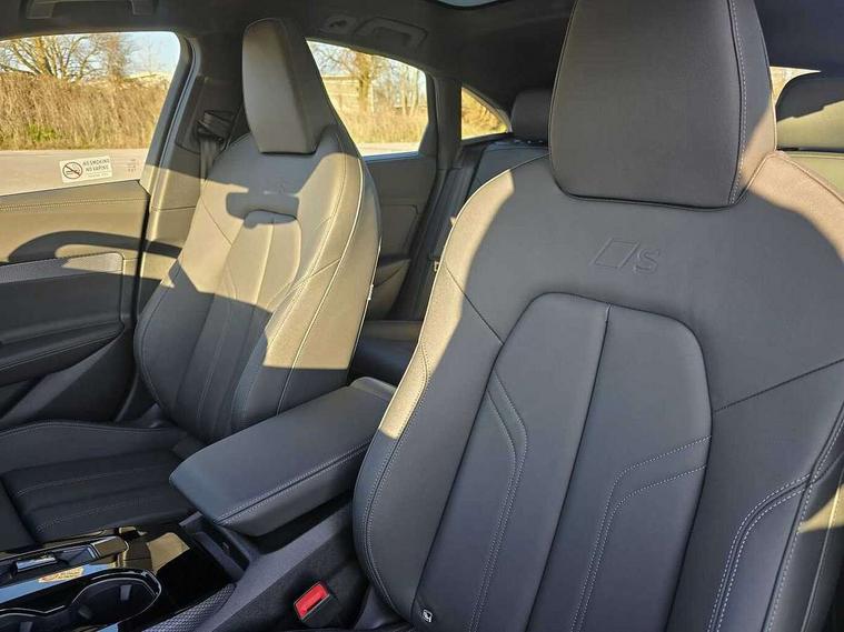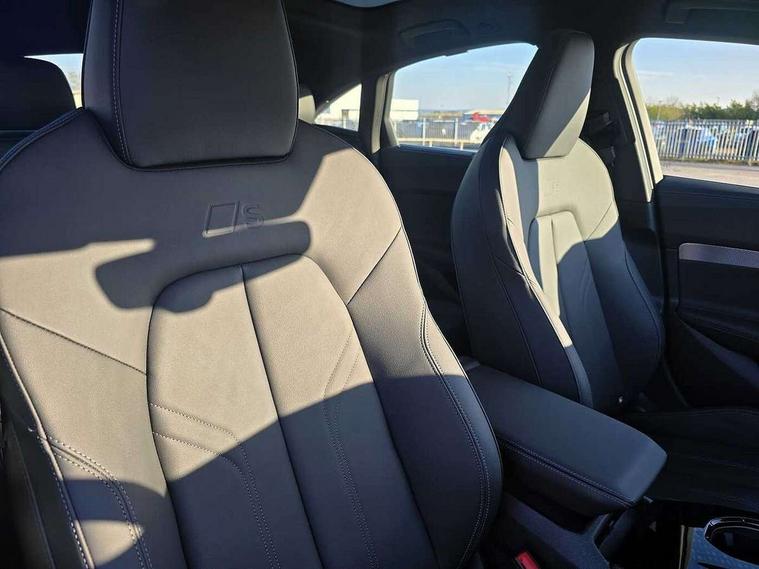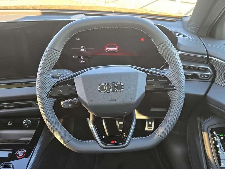 Adaptive cruise assist plus with steering intervention, Advanced driver attention and fatigue montior, Audi application store, Audi assistant, Audi connect emergency call and service, Audi drive select, Audi smartphone interface, Audi virtual cockpit plus with 11.9" OLED colour display, Automatic start/stop system with coasting functionality, Camera based traffic sign recognition, Garage door opener, Head up Display, Intersection assist, Lane change assistant with exit warning system, rear cross traffic alert and rear turn assist, Lane departure warning with emergency assist, MMI 10.9" front passenger touch display, MMI navigation plus with high resolution 14.5" OLED touchscreen colour display, Park assist plus, Parking system plus with 360 display, Progressive steering with servotronic, Swerve assist and turn assist, Top view camera, Traffic sign based speed limiter, Sports suspension with damper control lowered by 20mm, 2 USB-C ports in both the front and rear, Bang and Olufsen premium sound system with 3D sound, DAB digital radio reception, Smartphone compartment with wireless charging, Acoustic glass for front door windows, Aluminium window trims, Auto dimming rear view mirror, Body colour door mirrors, Clear glass, Digital OLED tail lights including communication light, Door mirrors - electrically adjustable, heated, folding and auto dimming on both sides, Front and rear electric windows, Front door sill trims with aluminium inlays, illuminated with 'S' logo, Headlight cleaning system, High beam assist, LED daytime running lights, LED third brake light, Manual sunshade for the rear door windows, Matrix LED headlights with eight light signatures selectable via the MMI or the myAudi app, Panoramic glass roof with switchable transparency, Privacy glass, Rear and side windows with heat insulating glass, Rear boot, Rear side wing doors, S Line badges on the front wings, S line bumpers, radiator grille and diffuser in phantom black and diffuser insert in matt anthracite, White rhombus logo projection light in exterior mirrors, Windscreen with acoustic glazing, 3 rear headrests, 3 seat rear bench, 3 spoke leather steering wheel with multi-function buttons with touch control, flattened on top and bottom, with S badging and contrast stitching, 3-zone automatic climate control, 4 way electric lumbar support for driver and front passenger, 40:20:40 split folding rear seat bench with centre armrest and cup holders, Comfort front centre armrest, Dynamic interaction light (coloured), Electric steering wheel adjustment, Electrically adjustable front seats, Front and rear floor mats, Front sport seats with integrated headrest and S embossed logo, Headlining in black cloth, Heated front and outer rear seats, Heated steering wheel, i-Size child seat mounting on the front passenger side and i-Size and top tether on the outer rear seats, Increased charging capacity for USB ports 2X100 Watts in rear, 2X60 Watts in front, Luggage compartment lid, electrically opening and closing, Single front passenger seat, Stainless steel pedals and footrest, Steering wheel grips in perforated leather and shift paddles, Twin leather upholstery, Ambient lighting package plus - A5, 3x3 point rear seat belts, Acoustic vehicle alerting system, Convenience key with safelock, Driver airbag, Electric child safety locks, First aid kit with warning triangle and vests, Front emergency brake assist, Front passenger airbag, Front passenger airbag deactivation, Hill hold assist, Occupant detection in rear seat area, Proactive passenger protection system for front, sides and rear, Seat belt monitoring with rear seat occupant reminder, Side airbags in front and rear with head airbag system and front interaction airbag, Tyre pressure loss indicator, Anti theft alarm, Anti-theft wheel bolts, Keyless Go, Accents in the interior in vanadium look, Black dashboard with contrast stitching, Inlays in matt brushed aluminium with linear embossing, anthracite, Softwrap in leatherette with contrast stitching, Upper and lower interior elements in leatherette, 19" 5 twin V spoke design alloy wheels in graphite grey, Tyre repair kit,