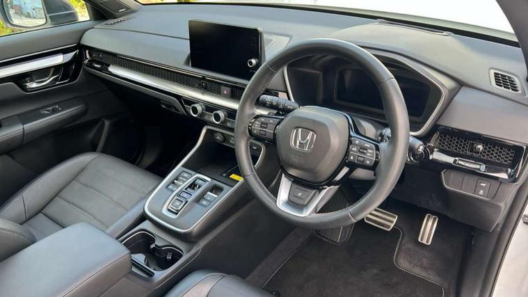 10.2" Multi information display, 4 x front 4 x rear 4 x side parking sensors, Active lane change assist, Adaptive cruise control with Cornering speed assist, Adjustable speed limiter, Agile handling assist, BLIS (Blind Spot Information System) with Cross Traffic Monitor, Bluetooth hands free telephone connection, Crossing traffic warning front, Drive Mode (EV, Econ, Sport, Normal, Snow, Tow), Driver attention monitoring system, E-call, eCall emergency call system, Electric power steering, Emergency stop signalling system, Forward collision warning, Handfree power tailgate with kick sensor and walk away close, Head up Display, HEV mode, Honda 360 sensing, Honda CONNECT navigation with My Honda+ 9" touchscreen, AM/FM/DAB, Apple Carplay and Android Auto, live traffic info, Honda parking pilot, Intelligent speed limiter, Lane change collision mitigation, Lane departure warning system, Lane keep assist system, Lane watch, Lead car departure notification system, Low speed following, Power meter, Road departure mitigation, Traffic jam assist, Traffic sign recognition, Wireless apple carplay, Wireless charging, Adaptive performance damper, Vehicle stability assist, 12 speakers, 1X USB (A/2.5A) and 1x Charger (C/3A) on Front, Bose premium sound system, Centre speakers, DAB+ radio, Dashboard centre speaker, Front tweeters, Rear USB 2x Charger (C/3A), Steering wheel mounted controls, Subwoofer, Active cornering lights, Adaptive driving beam, Auto dimming rear view mirror, Auto headlight adjuster, Auto headlights, Auto wipers, Black door mirror caps, Black paint + exculsive grille, Black Shark-fin antenna, Body colour bumpers, Body colour door handles, Body colour plus black colour roof spoiler, Electrically adjustable and heated door mirrors, Electrically folding door mirrors, Exhaust pipe finisher, Exterior mirror tilt for reverse, Front and rear electric windows, Front LED Indicator lights, Front turn type led with sequential, Headlight auto on/off timer, High gloss black window garnish, LED 3rd brake light, LED daytime running lights, LED front fog lights, LED Headlights, LED rear lights, Multi view camera system in door mirrors, Panoramic opening glass sunroof, Privacy glass, Rain sensor, Rear side wing doors, Rear wiper, Roof rails, Trailer stability assist, Welcome home function, 3 seat bench in 2nd row, 4 way driver lumbar support, 4 way electrically adjustable passenger seat without height adjust, 60/40 split folding rear seat, 8 way electrically adjustable drivers seat + mirror memory, Accessory sockets in Front & Trunk, Air conditioning - Rear vent, Ambient light in roof, Cargo net hooks, Courtesy lights, Dark roof lining, Driver and front passenger seat armrests, Driver/passenger front seatback pockets, Driver/passenger sunvisors and vanity mirrors, Driver/passenger sunvisors with illuminated vanity mirrors, Dual zone automatic climate control, Film layered honeycomb metal interior panels, Footwell ambient interior light front and rear, Front and rear ambient light (door handle&door line) and front cup holder, Front centre armrest, Front map lights, Front ventilated seats, Genuine leather steering wheel, Heated front seats, Heated rear seats, Heated steering wheel, Hybrid emblem, I-Size ISO Fix Points, Instrument panel with garnish wood film, Leather upholstery, Luggage floor box, Meter illumination, Platinum chrome interior door handles, Rear centre armrest, Rear headrests, Rear reading lights, Reclining rear seats, Single front passenger seat, Sport pedals, Sunglasses holder with mirror, Synthetic headrest, Tilt/telescopic adjustable steering wheel, Tonneau cover, Trunk light, Exclusive styling with sport paint pack - CR-V, 5 x 3 point seatbelts, ABS/EBD, Anti-whiplash front headrests, Brake assist function, Collision mitigation braking system, Deflation detection system, Driver airbag, Driver SRS airbag (single stage inflation), Electronic parking brake with auto hold, Front and rear collision mitigation throttle control, Front and rear curtain airbags, Front and rear seat belts with emergency locking retractor (ELR), Front centre airbag, Front passenger airbag, Front side airbags, Hill descent control, Hill start assist, Knee airbags (DR) and (AS), Low speed brake system, Manual child lock in rear doors, Paddle deceleration control, Passenger SRS airbag with cut off switch, Rear side airbags, Honda super locks, Immobiliser, Mirrors and windows key fob operation, Remote central locking with 2 key fobs, Security alarm, Selectable door unlock, Smart entry + Smart start, Tilt sensors, Ultrasonic security sensor, Flat tyre solution temper tyre/repair kit,