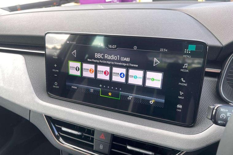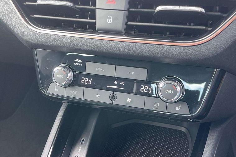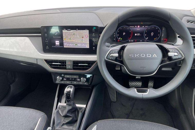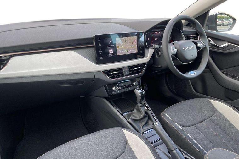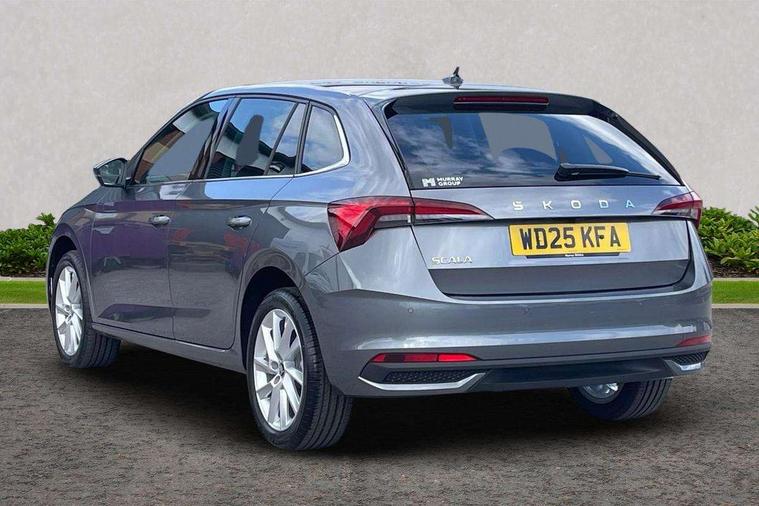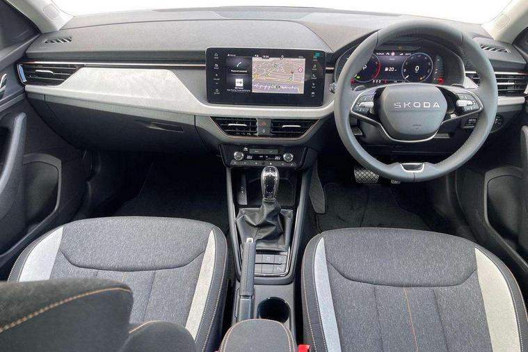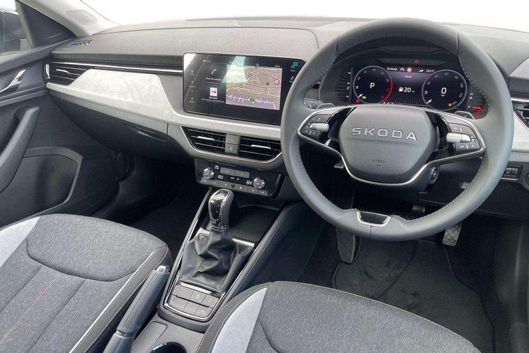 Advanced driver attention and drowsiness monitor, Bluetooth, e-Call (emergency call), Front assist system, PAS, Rear parking sensors, Rear view camera, Speed limiter, Tailgate, Traffic sign recognition, Virtual Cockpit - 10.25" digital display, Voice control system, Wireless smartlink, 4 USB C ports, 8 Speakers, 9.2" Skoda navigation display, DAB radio, Auto dimming rear view mirror, Automatic headlight control with manual coming and leaving home feature, Automatic intermittent wipers, Body colour bumpers, Body colour door mirrors and handles, Chrome moulding around grille, Chrome window frames, Front and rear electric windows, Heated rear window, LED 3rd brake light, LED daytime running lights, LED high beam, LED low beam, Light sensors, Privacy glass, Rear LED fog light, Rear side wing doors, Rear wiper, Tinted windows, Unique dark chrome design logo on alloy wheels, 12V socket in luggage compartment, 3 seat bench in 2nd row, Ambient lighting in white/red, Black / Copper armrest stitching, Cargo elements, Chrome inner door handles, Copper hotstamping, Door inserts in accent black, Driver and passenger sun visors with vanity mirror, Dual zone climate control, Front and rear roof lights, Front centre armrest, Front head restraints, Glasses storage in roof liner, Height adjustable driver seat, Height adjustable passenger seat, Ice scraper, Illuminated glove compartment, Inner circulation control with pollen filter, ISOFIX for front passenger seat, Isofix preparation for back seats, Leather gearknob and handbrake lever, Lodge cloth upholstery, Luggage net under rear parcel shelf, Manual lumbar support for front seats, Net package and top tether hooks in boot space, Pocket on the back of both front seats, incl. mobile phone pockets, Rear centre armrest, Single front passenger seat, Skoda lettering on steering wheel, Textile floor mats, Third rear headrest, Ticket holder, Top tether for front passenger seat, Umbrella in driver's door, Convenience pack without rear camera - Scala, 3x3 point rear seatbelts, ABS, Child locks, Curtain airbags and front side airbags, Disc brakes, Driver and front passenger airbags, ESP, Hill hold control, Manual leather parking brake, One tone horn, Passenger airbag switch off function, Seatbelt reminder for driver and front passenger, Tyre pressure monitoring system, Anti theft alarm system with interior monitoring, backup horn and towing protection, Anti-theft wheel bolts, Remote central locking with 2 remote folding keys, SAFE function for remote central locking, Decorative inserts,