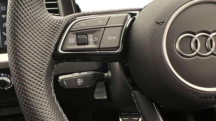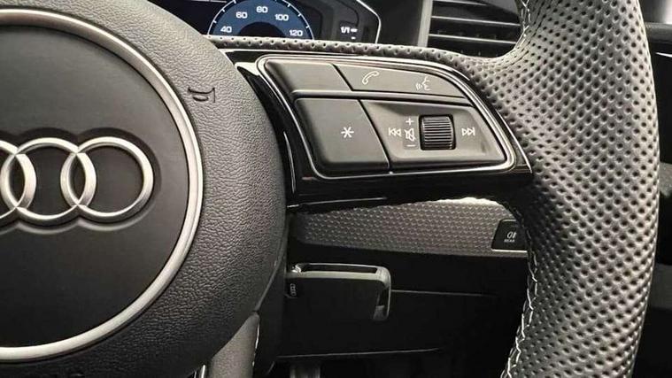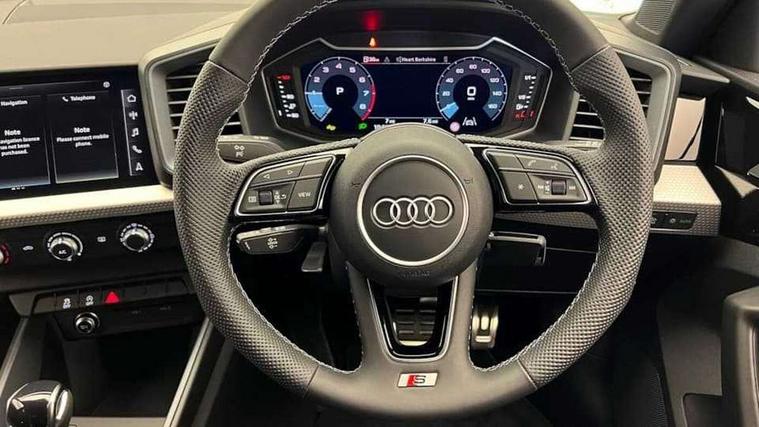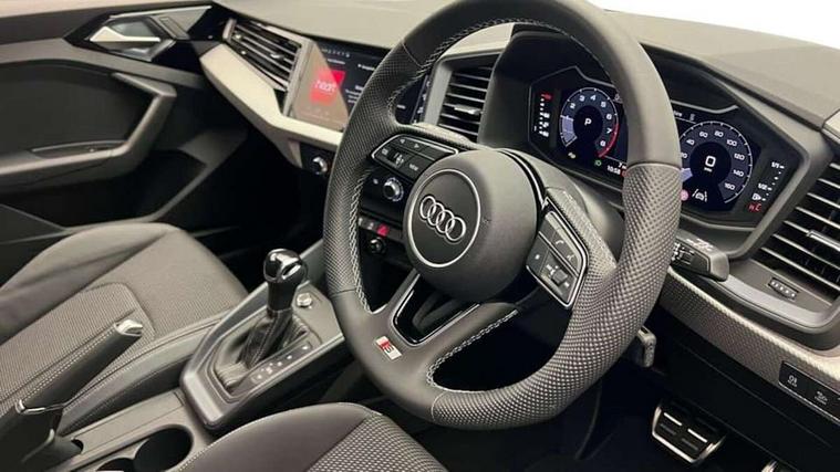 10.25" Digital instrument cluster display classis style instrument dials + speed, odometer, time, outside temperature, telephone menu + fuel level warning, Advanced driver attention and drowsiness monitor, Audi connect emergency call and service, Audi remote connect and control, Audi smartphone interface, Bluetooth interface, Camera based traffic sign recognition, Cruise control, Driver's information system, Electromechanical power steering, Lane departure warning system, Rear parking sensor, Service interval indicator, Speed limiter, Start stop system with recuperation, Voice control system, Washer fluid level indicator, Sports suspension, 2 x USB type C connection points, 6 loudspeakers, DAB Digital radio, MMI radio plus with 10.1" colour MMI display screen and MMI touch, Auto dimming rear view mirror, Body coloured door mirrors, Door sill trims with aluminium inlays and S line logo in front, Electric front and rear windows, Electrically adjustable, heated, folding door mirrors with integrated LED side indicator, Front side air inlets in grained matt black and C frame in anthracite black, Headlight cleaning system, Heat insulating glass windscreen and side windows, Heated rear windscreen, High level LED brake light, LED daytime running lights, LED headlights with range control LED rear lights + dynamic rear indicators, Privacy glass, Radiator grille and rear diffuser in matt anthracite black, Radiator protective grille frame in matt aluminium silver, Rain and light sensors, Rear fog lights, Rear side wing doors, Rear wiper, S line badges on front wings, Side front spoiler lips in grained matt black, 12V socket in centre console with two cup holders, 3 rear seats with headrests, 3 seat bench in 2nd row, 3 spoke leather multi-function plus steering wheel features S badging and grips in perforated leather with contrast stitching, 40:60 Split folding rear seat or fully collapsed, Black cloth headlining, Front and rear velour black floor mats with contrast stitching in fine silver, Front head restraints, Front passenger seat, Height and reach adjustable steering wheel, Interior lighting includes roof module, front and rear reading lights and right luggage compartment lighting, ISOFIX child seat mounting for front passenger and outer rear seats including top tether attachment point of outer rear seats, Leather gear knob with aluminium trim, Leather handbrake grip, Manual air conditioning, Manual height adjustable for driver and front passenger seat, Manually adjustable lumbar support in front seats, Stainless steel pedals, Ambient lighting package - A1, Luggage compartment pack - A1, S line exterior styling pack - A1 Sportback, 3x3 point rear seatbelts, Audi pre-sense front with pedestrain and cyclist recognition, Brake assist function, Driver and front passenger airbag with front side and head airbags, Electronic Stability Control including ABS, EBD, ASR and EDL, Front passenger airbag deactivation switch, Hill hold assist, Manual rear child locks, Seatbelt height adjustment for front seats, Seatbelt monitoring, Tyre pressure loss indicator, Warning triangle and first aid kit, Anti theft alarm, Anti theft wheel bolts, Immobiliser, Remote control key with safelock, Aluminium trim for control switches, air vents and digital instrument cluster, Black dashboard, Silver grey inlays polygon structure in diamond paint finish, Structured grey accent surfaces insert of air vents, interior door handle recesses and centre console in quartz paint finish,
