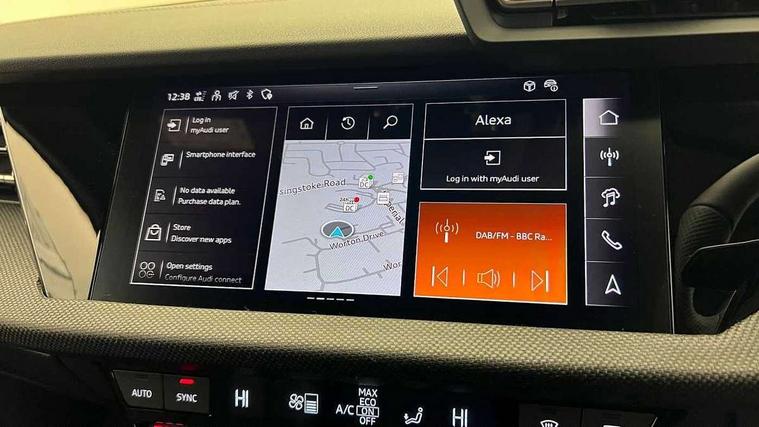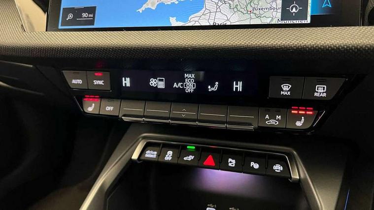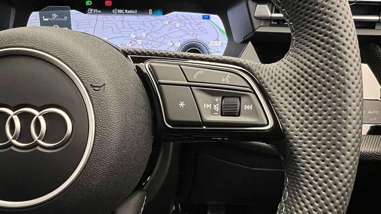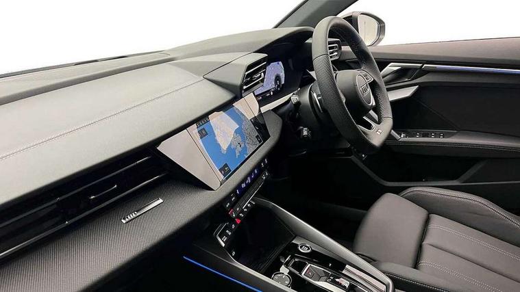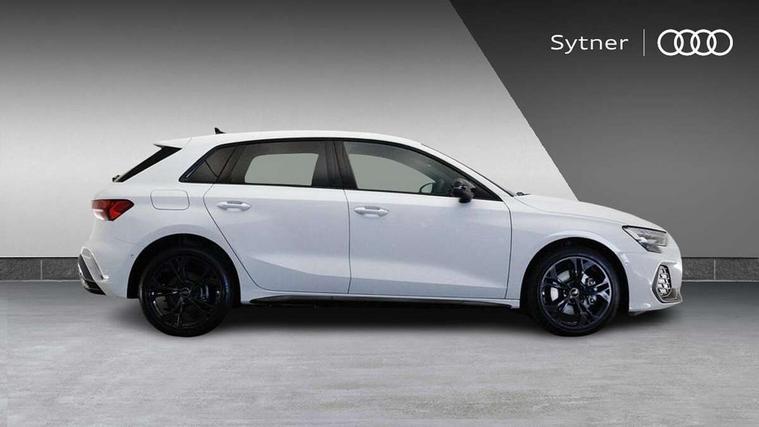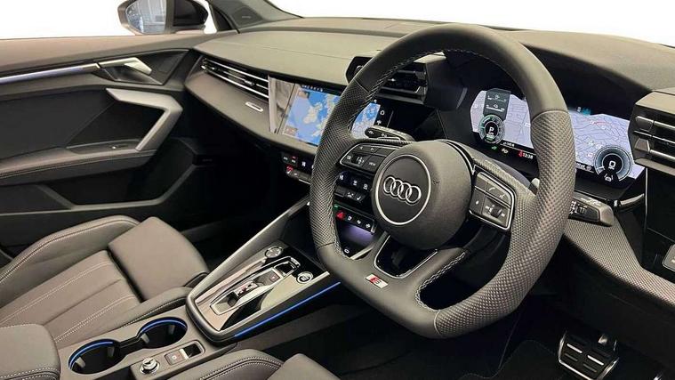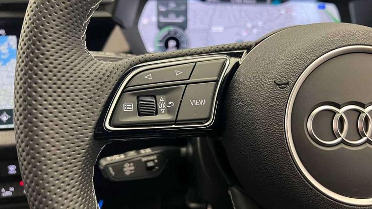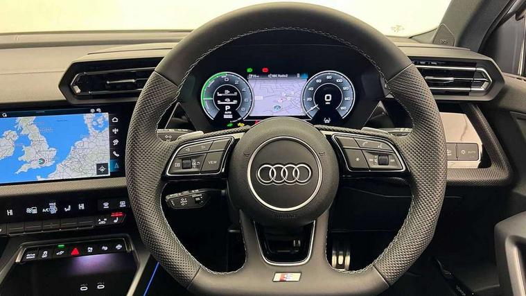 Adjustable speed limiter, Audi drive select, Audi smartphone interface with app store includes wireless Apple carplay, Android auto and Amazon alexa integration, Audi virtual cockpit plus - 12.3" full HD resolution dynamic digital instrument cluster, Automatic start/stop system with recuperation, Bluetooth interface, Camera based traffic sign recognition, Collision avoidance assistant, Cruise control, Distraction and Fatigue warning, e-Call (emergency call), Electromechanical power speed sensitive steering, Lane departure warning system, MMI Navigation Plus with high resolution 10.1" colour touch screen display, Park Assist with parking system Plus, Service indicator, Trip computer, Voice control system with natural language interaction, 3 pin 10 amp domestic charging cable, CCS socket for DC charging, Charging cable for public charging, mode 3 (type 2), up to 22 kW (AC), Compact charging system, Industrial connector CEE 32 A, 230 V, length 1.6 m, Standard suspension, Type 2 socket for AC charging, Audi Phonebox light with wireless charging, Audi sound system - 10 loudspeakers including centre loudspeaker and subwoofer, DAB Digital radio, USB ports with charging function in the rear, Acoustic glass windscreen, Anthracite grey Audi rings (front and rear), Audi beam uses LEDs to project the Audi logo onto the ground as you exit your A3, Auto dimming frameless rear view mirror, Black accents front and rear bumpers, Black accents in the area of the Audi single frame grille, Black accents window trims strips, Electrically adjustable/heated/folding/dimming door mirrors with kerb view includes integrated LED indications + kerb view function for passenger side, Exterior model badging, Front electric windows, Heat insulating glass windscreen, Illuminated door sills with aluminium inserts at the front with S logo, LED 3rd brake light, LED daytime running lights, LED headlights with LED rear lights and dynamic rear indicators, Light and rain sensors, Privacy glass - dark tinted rear window, rear door and side windows, Rear electric windows, Rear side wing doors, Rear wiper, 12V socket and storage compartment in front centre console, 3 seat bench in 2nd row, 3 spoke flat bottomed leather multifunction sport steering wheel with gear shift paddles, 3-zone deluxe automatic air conditioning, 4 way electrically adjustable lumbar support for driver and front passenger, 40/20/40 split folding rear seat bench, Black cloth headlining, Convenience auxiliary air conditioning, Front and rear centre armrest in artificial leather, Front and rear centre armrest in artificial leather with contrasting stitching on armrests and instrument panel, Front and rear headrests, Front/rear floor mats, Heated front seats, Height and reach adjustable steering wheel, Manual boot compartment lid, Manually adjustable front seats, Rear cup holders, S badging on the steering wheel, Seat side bolsters, Single front passenger seat, Stainless steel pedals and front footrest in black, Twin leather upholstery with front sports seats S embossed logo, Aluminium interior elements pack - A3 Sportback, Multi-coloured LED interior lighting package - A3 Black Edition, 3x3 point rear seat belts, Acoustic vehicle alerting system, Driver and front passenger airbag with passenger airbag deactivation, Electronic Stabilisation Control (ESC) including ABS, ASR and EDL, First aid kit with warning triangle and 2 safety vests, Front side airbags with head airbags and interaction airbag, Hill hold assist, Pre-sense front with pedestrian and cyclist detection, Seatbelt monitoring, Tyre pressure loss indicator, Anti theft alarm, Anti-theft wheel bolts, Electronically operated child locks, Immobiliser, Remote central locking with safelock, Inlays in black Impressum woven textile, 18" 5 Y twin spoke style alloy wheel in metallic black, Tyre repair kit,