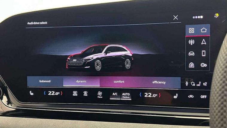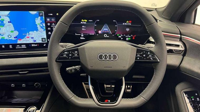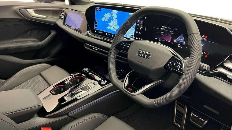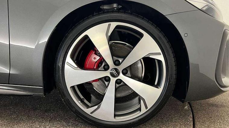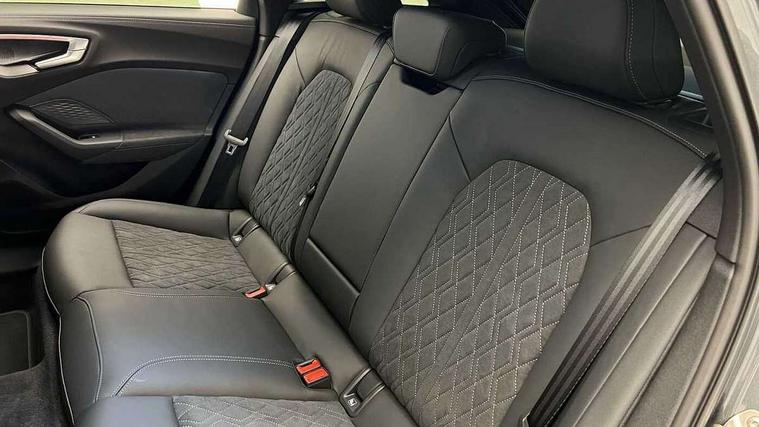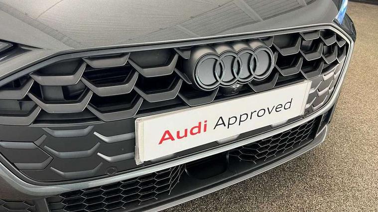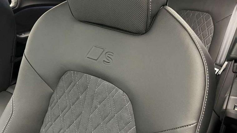 Adaptive cruise control, Advanced driver attention and fatigue montior, Audi application store, Audi assistant, Audi connect emergency call and service, Audi drive select, Audi virtual cockpit plus with 11.9" OLED colour display, Automatic start/stop system with coasting functionality, Camera based traffic sign recognition, Intersection assist, Lane change assistant with exit warning system, rear cross traffic alert and rear turn assist, Lane departure warning with emergency assist, MMI 10.9" front passenger touch display, MMI navigation plus with high resolution 14.5" OLED touchscreen colour display, Park assist plus, Parking system plus with 360 display, Progressive steering with servotronic, Smartphone interface, Swerve assist and turn assist, Top view camera, Traffic sign based speed limiter, Sports suspension lowered by 20mm, 2 USB-C ports in both the front and rear, Audi sound system impressive sound with 8 loudspeakers including centre speaker and subwoofer, 6-channel amplifier with a total output of 180 watts, DAB digital radio reception, Smartphone compartment with wireless charging, Aluminium window trims, Auto dimming rear view mirror, Black door handles, Black roof rails, Dark chrome-plated tailpipe trims, Door mirrors - electrically adjustable, heated, folding and auto dimming on both sides, Front and rear electric windows, Front door sill trims with aluminium inlays, illuminated with 'S' logo, Headlight cleaning system, High beam assist, LED daytime running lights, LED rear lights pro incl. dynamic rear indicators and illuminated light strip with animated coming and leaving home function, LED third brake light, Matrix LED headlights with eight light signatures selectable via the MMI or the myAudi app, Privacy glass, Rear and side windows with heat insulating glass, Rear side wing doors, Rear wash/wipe, S Line badges on the front wings, S line bumpers, radiator grille and diffuser in phantom black and diffuser insert in matt anthracite, White rhombus logo projection light in exterior mirrors, Windscreen with acoustic glazing, 3 rear headrests, 3 seat rear bench, 3 spoke leather steering wheel with multi-function buttons with touch control, flattened on top and bottom, with S badging and contrast stitching, 3-zone automatic climate control, 40:20:40 split folding rear seat bench with centre armrest and cup holders, Comfort front centre armrest, Electrically adjustable front seats, Front and rear floor mats, Front sport seats with integrated headrest and S embossed logo, Headlining in black cloth, Heated front seats, i-Size child seat mounting on the front passenger side and outer rear seats, i-Size and top tether on the outer rear seats, Luggage compartment lid, electrically opening and closing, Manual steering column height and depth adjustment, Memory function for driver seat, Single front passenger seat, Stainless steel pedals and footrest, Steering wheel grips in perforated leather and shift paddles, Ambient lighting package plus - A5, Black styling package plus - A5, 3x3 point rear seat belts, Acoustic vehicle alerting system, Convenience key with safelock, Driver airbag, Electric child safety locks, First aid kit with warning triangle and vests, Front emergency brake assist, Front passenger airbag, Front passenger airbag deactivation, Hill hold assist, Occupant detection in rear seat area, Proactive passenger protection system for front, sides and rear, Red brake calipers, Seat belt monitoring with rear seat occupant reminder, Side airbags in front and rear with head airbag system and front interaction airbag, Tyre pressure loss indicator, Anti theft alarm, Anti-theft wheel bolts, Keyless Go, Accent surfaces and control buttons in gloss black, Black dashboard with contrast stitching, Softwrap in Dinamica with contrast stitching, Upper and lower interior elements in dinamica microfiber, 20" 5 arm fold design Audi sport alloy wheels in silk matt grey and gloss turned finish, Tyre repair kit,