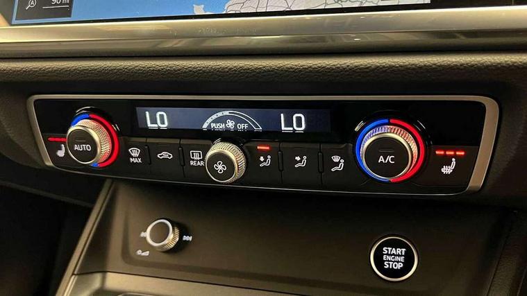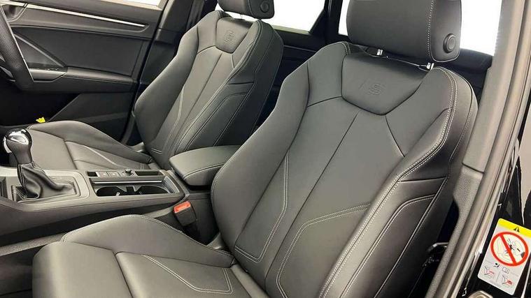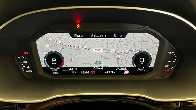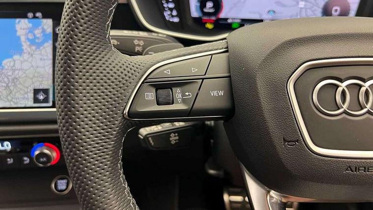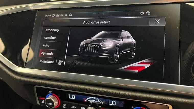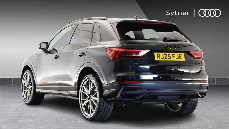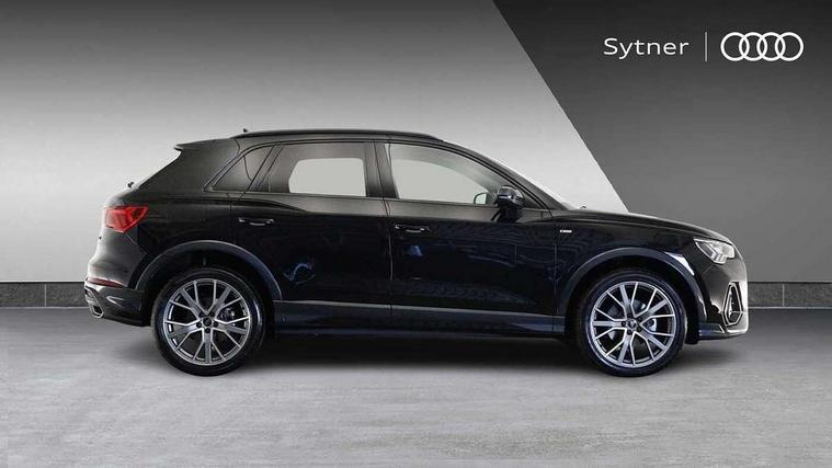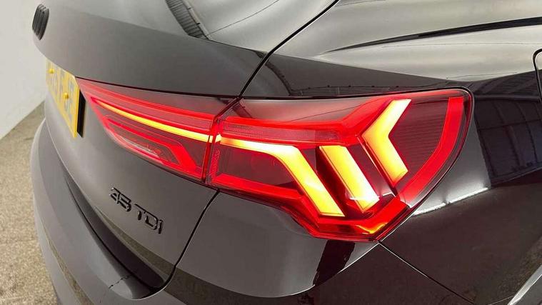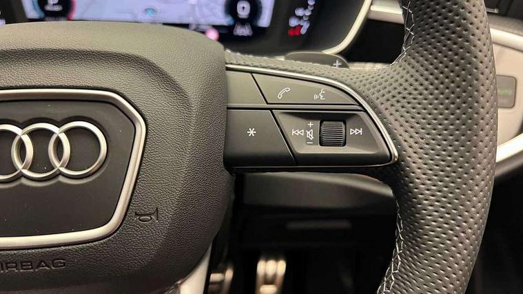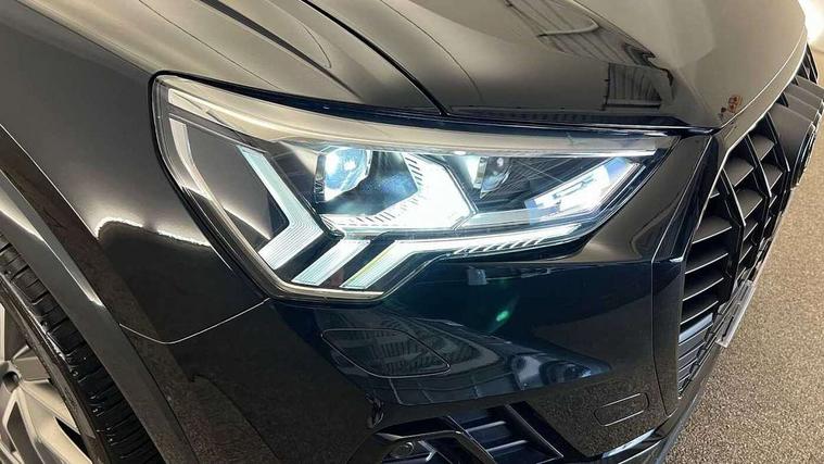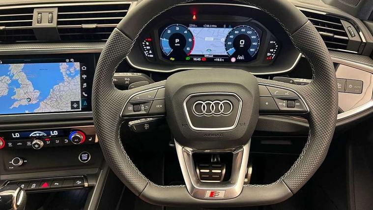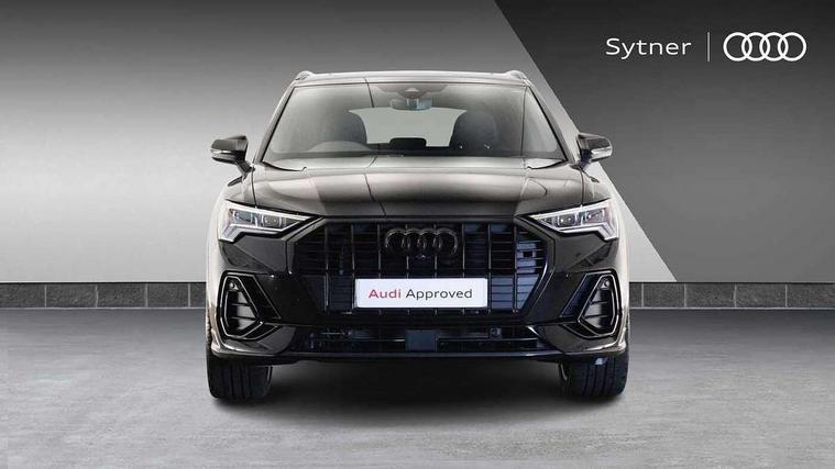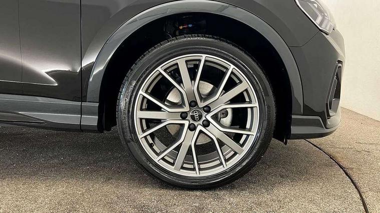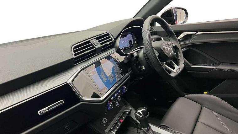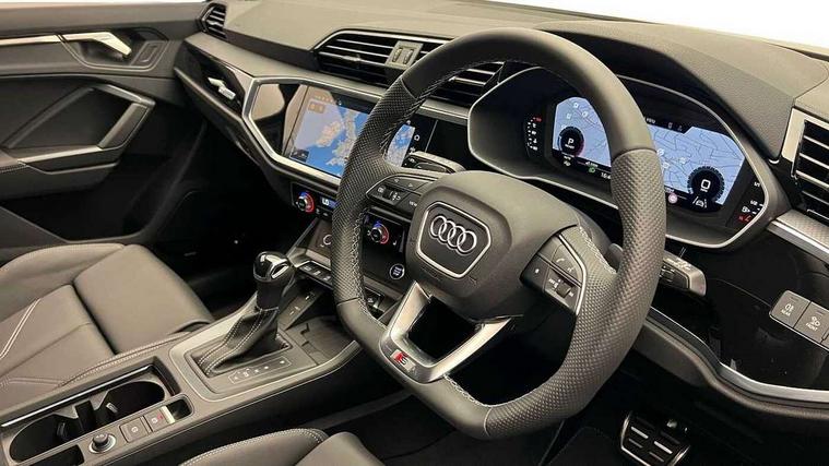 Amazon alexa Integration, Audi connect safety and service, Audi drive select, Audi lane departure warning, Audi smartphone interface includes wireless Apple carplay/Android Auto, Audi Virtual Cockpit - 10.25" display, Bluetooth interface, Camera based traffic sign recognition, Distraction and Fatigue warning, Legal emergency call, MMI Navigation Plus with high resolution 10.1 inch touchscreen colour display, Power operated tailgate, Progressive steering, Service interval indicator, Start stop system with recuperation, Voice control system with natural language interaction, Diesel particulate filter, Sports suspension, 2 USB-C ports with charge and data functions, 6 passive loudspeakers, DAB digital radio module, Acoustic windscreen, Anthracite black radiator grille, Audi Beam uses LEDs to project the Audi logo onto the ground as you exit your Q3, Auto dimming door mirrors, Auto dimming frameless rear view mirror, Black roof rails, Electrically folding, adjustable and heated door mirrors with integrated LED side indicators and kerb view function for passenger side, Front and rear electric windows, Front fog lights, Grille vertical bars in aluminium silver/Matt, High gloss black finish B and C pillars, LED Dynamic rear indicators, LED headlights with LED daytime running lights, LED rear lights, LED third brake light, Privacy glass dark tinted rear and rear-side windows (from B-pillar backwards), Rain and light sensors, Rear diffuser grille in grained matt black, Rear diffuser strip in matt anthracite black, Rear side wing doors, Rear wiper, S line bumpers in contrasting Manhattan grey, Variable front intermittent wipers, 12V socket in rear centre console, 3 seat bench in 2nd row, 40:20:40 folding with manual adjustment for 60:40 forwards/backwards position and backrest angle, Adjustable rear seat bench/backrest with centre armrest and cupholder, Black carpet mats, Black cloth headlining, Dual zone electronic climate control, Electric lumbar support, Front and rear black floor mats with contrast stitching in rock grey, Front and rear headrests, Front centre armrest, Height and reach adjustable steering wheel, Illuminated door sill trims with S logo, ISOFIX child seat mounting for front passenger with airbag deactivation and outer rear seat including top tether attachment point for outer rear seats, Luggage compartment sill protection in stainless steel, Manual front seats with height adjustment, Perforated leather gearknob, Single front passenger seat, Stainless steel pedals, Twin leather upholstery with front sport seats + S embossing, Black styling pack - Q3, Non smoking pack - Q3, 3x3 point rear seatbelts, 6 airbags - Driver, front passenger, curtain and side windows, Audi pre-sense front with pedestrain and cyclist recognition, Electrically operated child locks on rear doors, Electromechanical parking brake, Electronic stabilisation control including ABS, ASR and EDL, Front seatbelt reminder, Hill descent control, Hill hold assist, Pre sense basic, Seatbelt monitoring, Tyre pressure warning, Warning triangle and first aid kit, Anti theft wheel bolts, Immobiliser, Remote central locking, Thatcham approved category 1 anti theft alarm, Aluminium look interior elements, Detail dashboard around MMI touch colour display in glass look, black with surround in aluminium look, Leatherette door armrest, Piano black inlay,
