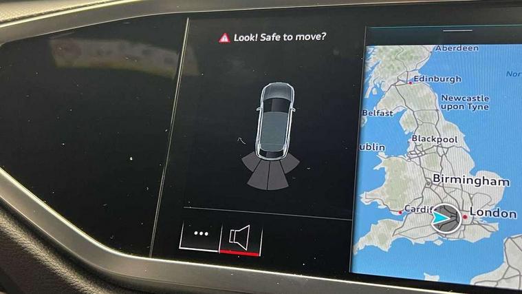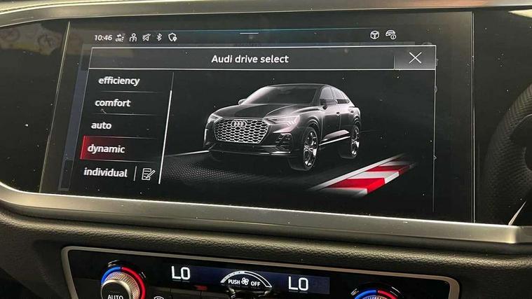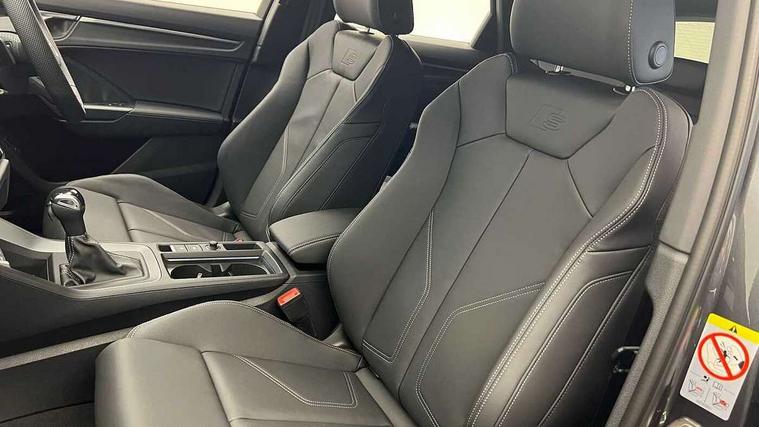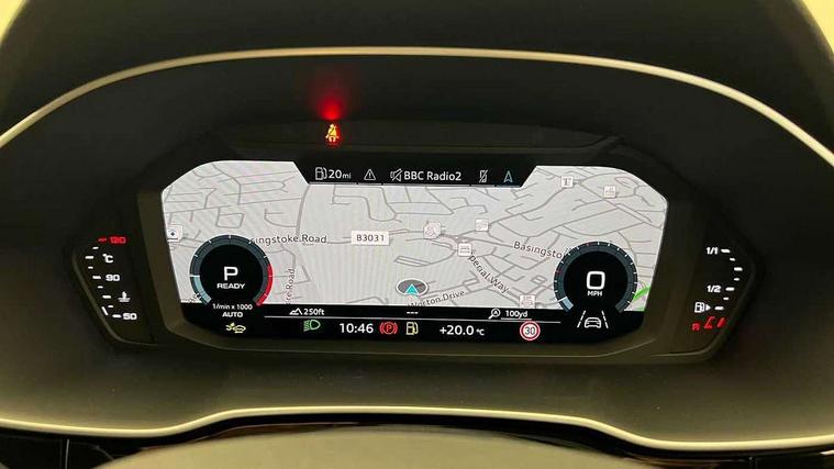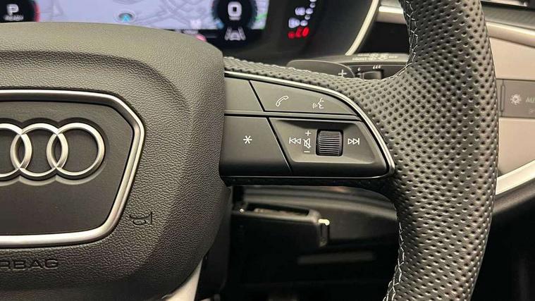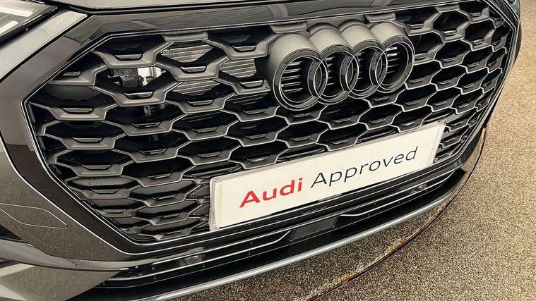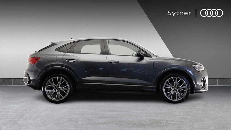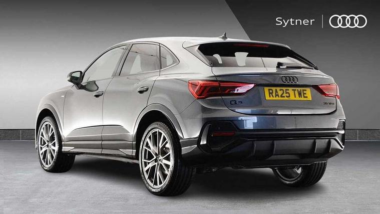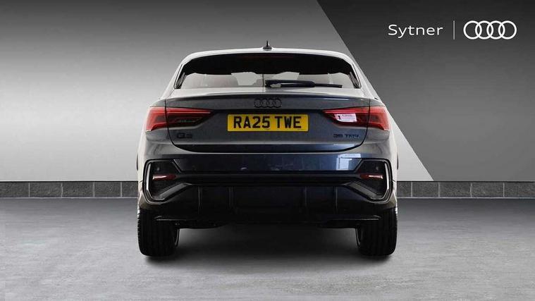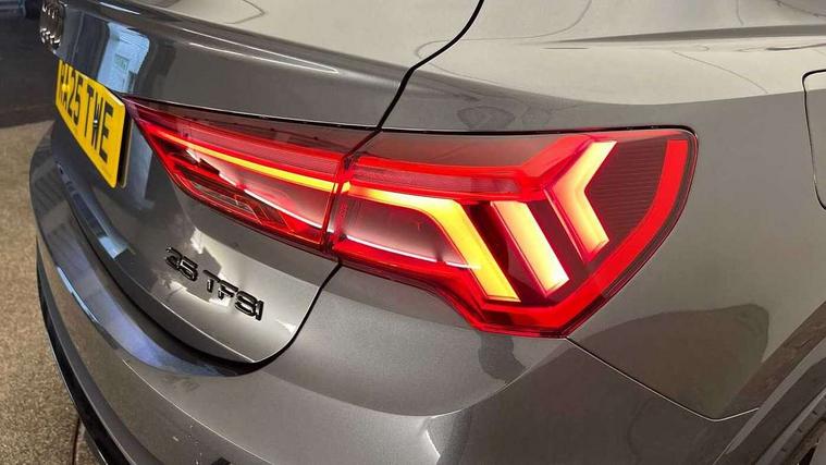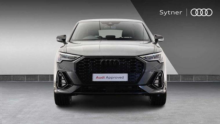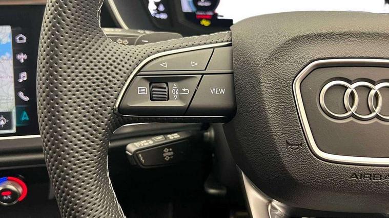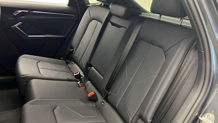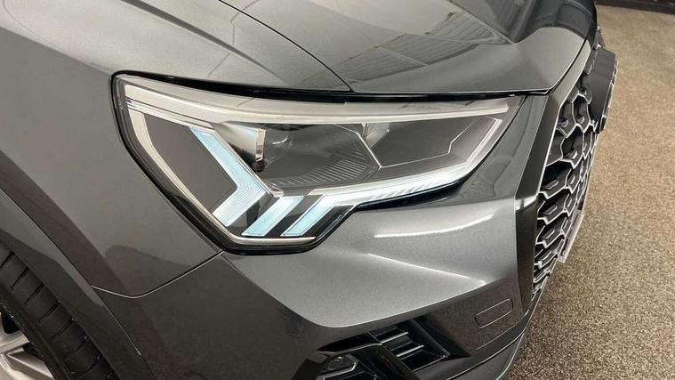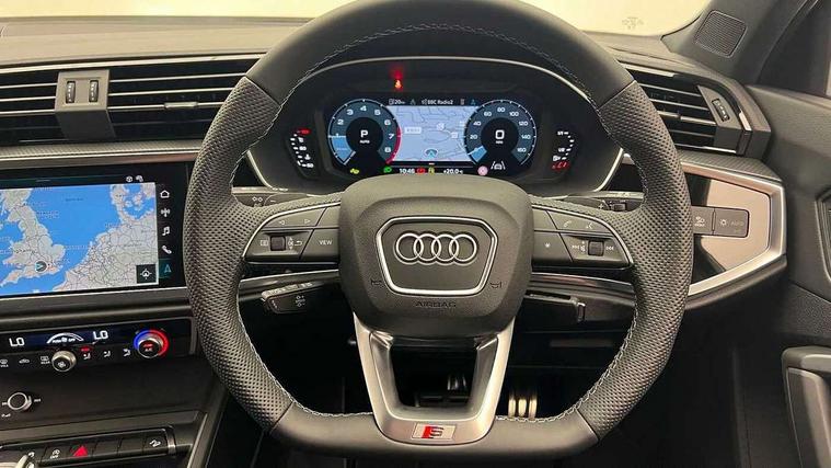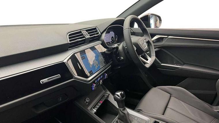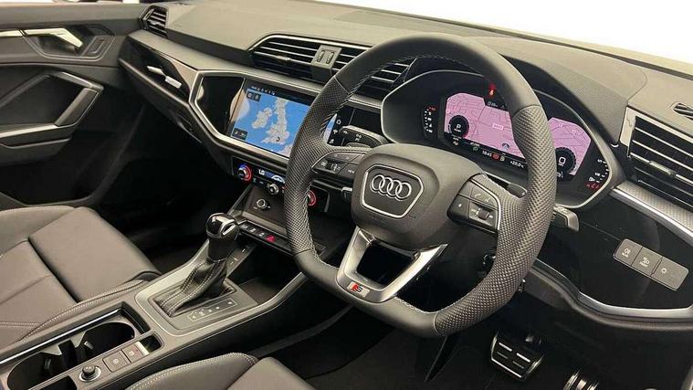 Audi connect safety and service, Audi drive select, Audi lane departure warning, Audi Virtual Cockpit - 10.25" display, Bluetooth interface, Camera based traffic sign recognition, Distraction and Fatigue warning, Legal emergency call, MMI Navigation Plus with high resolution 10.1 inch touchscreen colour display, Power operated tailgate, Progressive steering, Service interval indicator, Smartphone interface includes wireless Apple carplay/Android Auto, Start stop system with recuperation, Voice control system with natural language interaction, Sports suspension, 2 USB-C ports with charge and data functions, 6 passive loudspeakers, DAB digital radio module, Acoustic windscreen, Audi Beam uses LEDs to project the Audi logo onto the ground as you exit your Q3, Auto dimming door mirrors, Auto dimming frameless rear view mirror, Electrically folding, adjustable and heated door mirrors with integrated LED side indicators and kerb view function for passenger side, Front and rear electric windows, Front fog lights, Front underbody protection in manhattan grey paint finish, High gloss black finish B and C pillars, Honeycomb design radiator grille in matt anthracite black, LED Dynamic rear indicators, LED headlights with LED daytime running lights, LED rear lights, LED third brake light, Privacy glass dark tinted rear and rear-side windows (from B-pillar backwards), Rain and light sensors, Rear diffuser grille in grained matt black, Rear diffuser strip in matt anthracite black, Rear side wing doors, Rear underbody protection in matt black, Rear wiper, S line front and rear bumpers and side skirts in contrasting Manhattan grey paint finish, Variable front intermittent wipers, 12V socket in rear centre console, 3 seat bench in 2nd row, 40:20:40 folding with manual adjustment for 60:40 forwards/backwards position and backrest angle, Adjustable rear seat bench/backrest with centre armrest and cupholder, Black carpet mats, Black cloth headlining, Dual zone electronic climate control, Electric lumbar support, Front and rear black floor mats with contrast stitching in rock grey, Front and rear headrests, Front centre armrest, Height and reach adjustable steering wheel, Illuminated door sill trims with S logo, ISOFIX child seat mounting for front passenger with airbag deactivation and outer rear seat including top tether attachment point for outer rear seats, Luggage compartment sill protection in stainless steel, Manual front seats with height adjustment, Perforated leather gearknob, Single front passenger seat, Stainless steel pedals, Twin leather upholstery with front sport seats + S embossing, Black styling pack - Q3, Non smoking pack - Q3, 3x3 point rear seatbelts, 6 airbags - Driver, front passenger, curtain and side windows, Audi pre-sense front with pedestrain and cyclist recognition, Electrically operated child locks on rear doors, Electromechanical parking brake, Electronic stabilisation control including ABS, ASR and EDL, Front seatbelt reminder, Hill descent control, Hill hold assist, Pre sense basic, Seatbelt monitoring, Tyre pressure warning, Warning triangle and first aid kit, Anti theft wheel bolts, Immobiliser, Remote central locking, Thatcham approved category 1 anti theft alarm, Aluminium look interior elements, Detail dashboard around MMI touch colour display in glass look, black with surround in aluminium look, Leatherette door armrest, Piano black inlay,
