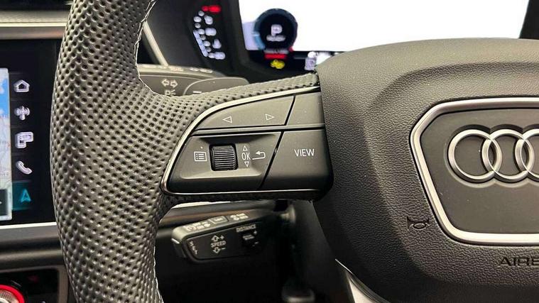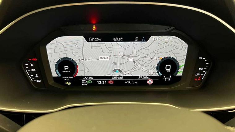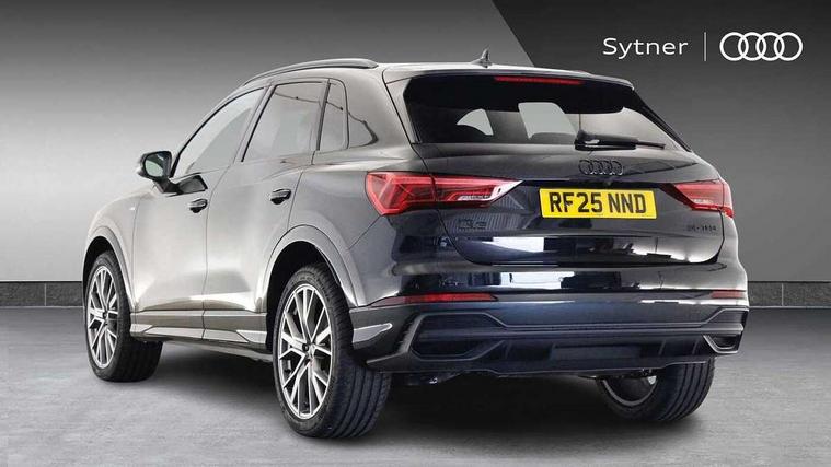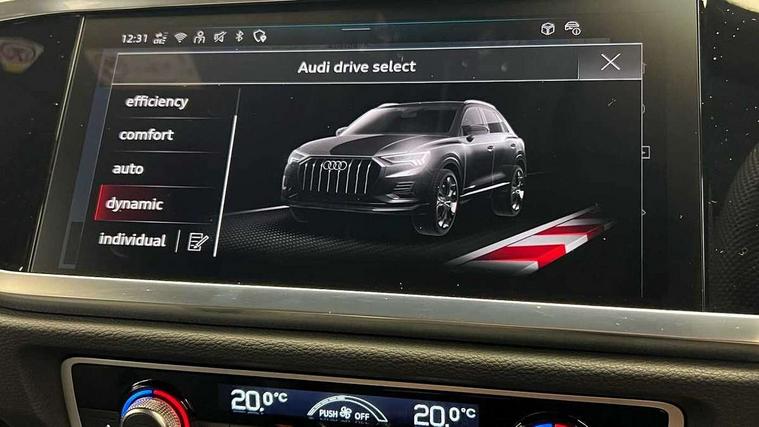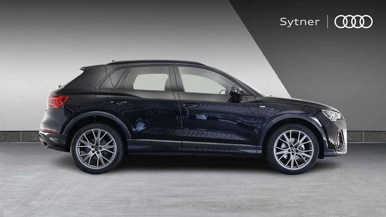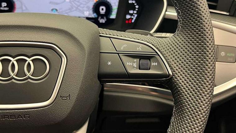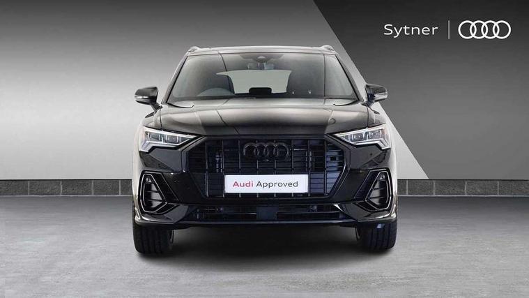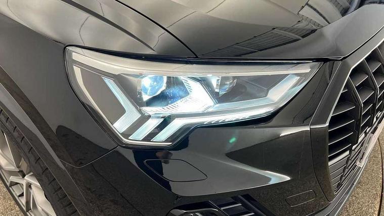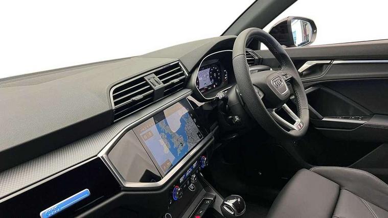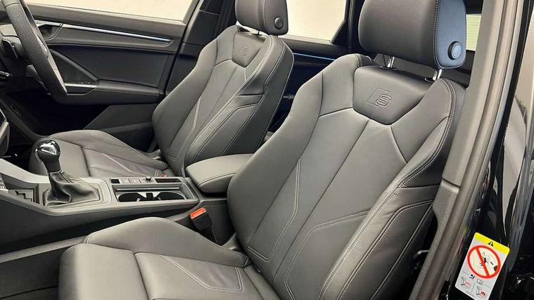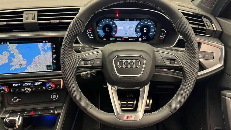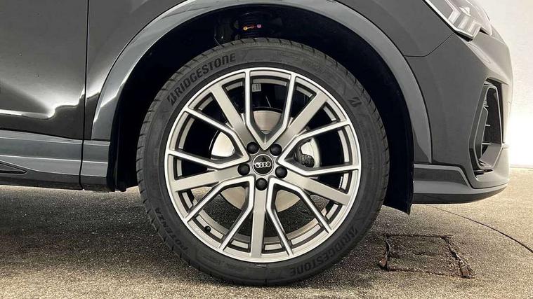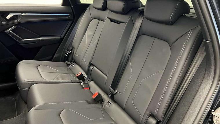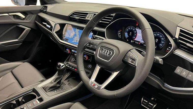 Amazon alexa Integration, Audi connect safety and service, Audi drive select, Audi lane departure warning, Audi smartphone interface includes wireless Apple carplay/Android Auto, Audi Virtual Cockpit - 10.25" display, Bluetooth interface, Camera based traffic sign recognition, Distraction and Fatigue warning, Legal emergency call, MMI Navigation Plus with high resolution 10.1 inch touchscreen colour display, Power operated tailgate, Progressive steering, Service interval indicator, Start stop system with recuperation, Voice control system with natural language interaction, Sports suspension, 2 USB-C ports with charge and data functions, 6 passive loudspeakers, DAB digital radio module, Acoustic windscreen, Anthracite black radiator grille, Audi Beam uses LEDs to project the Audi logo onto the ground as you exit your Q3, Auto dimming door mirrors, Auto dimming frameless rear view mirror, Black roof rails, Electrically folding, adjustable and heated door mirrors with integrated LED side indicators and kerb view function for passenger side, Front and rear electric windows, Front fog lights, Grille vertical bars in aluminium silver/Matt, High gloss black finish B and C pillars, LED Dynamic rear indicators, LED headlights with LED daytime running lights, LED rear lights, LED third brake light, Privacy glass dark tinted rear and rear-side windows (from B-pillar backwards), Rain and light sensors, Rear diffuser grille in grained matt black, Rear diffuser strip in matt anthracite black, Rear side wing doors, Rear wiper, S line bumpers in contrasting Manhattan grey, Variable front intermittent wipers, 12V socket in rear centre console, 3 seat bench in 2nd row, 40:20:40 folding with manual adjustment for 60:40 forwards/backwards position and backrest angle, Adjustable rear seat bench/backrest with centre armrest and cupholder, Black carpet mats, Black cloth headlining, Dual zone electronic climate control, Electric lumbar support, Front and rear black floor mats with contrast stitching in rock grey, Front and rear headrests, Front centre armrest, Height and reach adjustable steering wheel, Illuminated door sill trims with S logo, ISOFIX child seat mounting for front passenger with airbag deactivation and outer rear seat including top tether attachment point for outer rear seats, Luggage compartment sill protection in stainless steel, Manual front seats with height adjustment, Perforated leather gearknob, Single front passenger seat, Stainless steel pedals, Twin leather upholstery with front sport seats + S embossing, Black styling pack - Q3, Non smoking pack - Q3, 3x3 point rear seatbelts, 6 airbags - Driver, front passenger, curtain and side windows, Audi pre-sense front with pedestrain and cyclist recognition, Electrically operated child locks on rear doors, Electromechanical parking brake, Electronic stabilisation control including ABS, ASR and EDL, Front seatbelt reminder, Hill descent control, Hill hold assist, Pre sense basic, Seatbelt monitoring, Tyre pressure warning, Warning triangle and first aid kit, Anti theft wheel bolts, Immobiliser, Remote central locking, Thatcham approved category 1 anti theft alarm, Aluminium look interior elements, Detail dashboard around MMI touch colour display in glass look, black with surround in aluminium look, Leatherette door armrest, Piano black inlay,