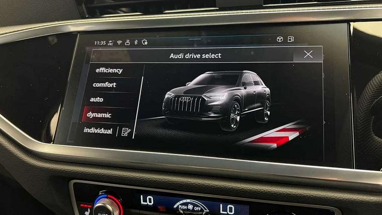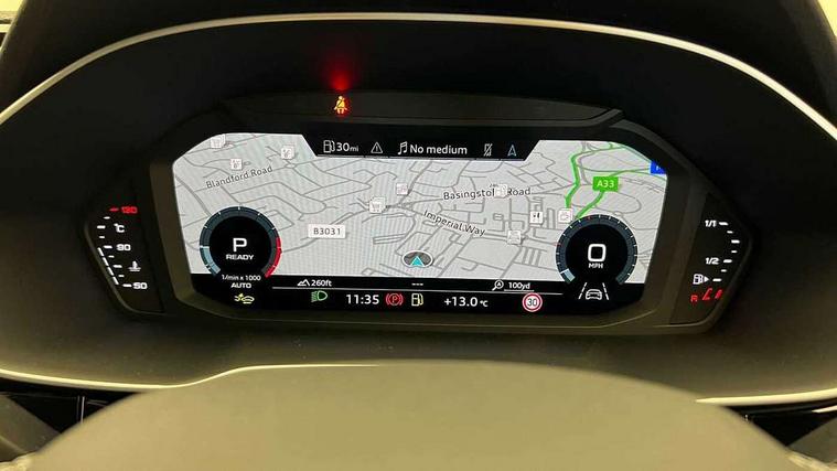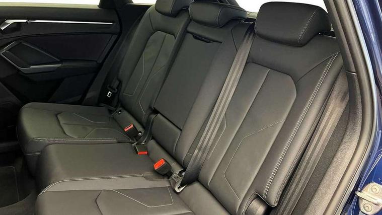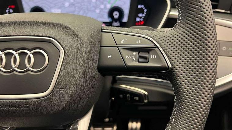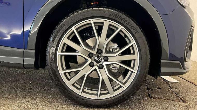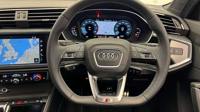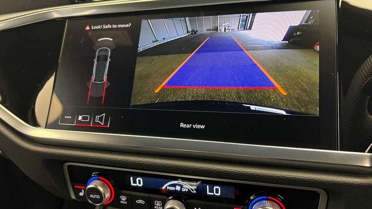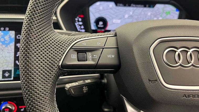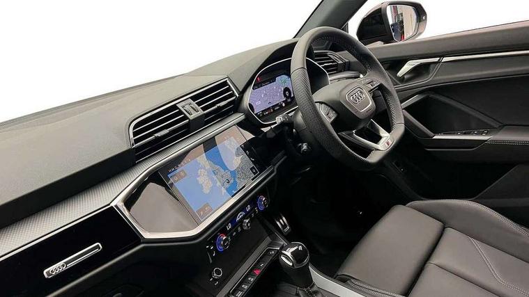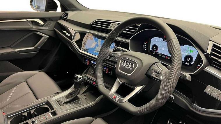 Amazon alexa Integration, Audi connect safety and service, Audi drive select, Audi lane departure warning, Audi smartphone interface includes wireless Apple carplay/Android Auto, Audi Virtual Cockpit - 10.25" display, Bluetooth interface, Camera based traffic sign recognition, Distraction and Fatigue warning, Legal emergency call, MMI Navigation Plus with high resolution 10.1 inch touchscreen colour display, Power operated tailgate, Progressive steering, Service interval indicator, Start stop system with recuperation, Voice control system with natural language interaction, Sports suspension, 2 USB-C ports with charge and data functions, 6 passive loudspeakers, DAB digital radio module, Acoustic windscreen, Anthracite black radiator grille, Audi Beam uses LEDs to project the Audi logo onto the ground as you exit your Q3, Auto dimming door mirrors, Auto dimming frameless rear view mirror, Black roof rails, Electrically folding, adjustable and heated door mirrors with integrated LED side indicators and kerb view function for passenger side, Front and rear electric windows, Front fog lights, Grille vertical bars in aluminium silver/Matt, High gloss black finish B and C pillars, LED Dynamic rear indicators, LED headlights with LED daytime running lights, LED rear lights, LED third brake light, Privacy glass dark tinted rear and rear-side windows (from B-pillar backwards), Rain and light sensors, Rear diffuser grille in grained matt black, Rear diffuser strip in matt anthracite black, Rear side wing doors, Rear wiper, S line bumpers in contrasting Manhattan grey, Variable front intermittent wipers, 12V socket in rear centre console, 3 seat bench in 2nd row, 40:20:40 folding with manual adjustment for 60:40 forwards/backwards position and backrest angle, Adjustable rear seat bench/backrest with centre armrest and cupholder, Black carpet mats, Black cloth headlining, Dual zone electronic climate control, Electric lumbar support, Front and rear black floor mats with contrast stitching in rock grey, Front and rear headrests, Front centre armrest, Height and reach adjustable steering wheel, Illuminated door sill trims with S logo, ISOFIX child seat mounting for front passenger with airbag deactivation and outer rear seat including top tether attachment point for outer rear seats, Luggage compartment sill protection in stainless steel, Manual front seats with height adjustment, Perforated leather gearknob, Single front passenger seat, Stainless steel pedals, Twin leather upholstery with front sport seats + S embossing, Black styling pack - Q3, Non smoking pack - Q3, 3x3 point rear seatbelts, 6 airbags - Driver, front passenger, curtain and side windows, Audi pre-sense front with pedestrain and cyclist recognition, Electrically operated child locks on rear doors, Electromechanical parking brake, Electronic stabilisation control including ABS, ASR and EDL, Front seatbelt reminder, Hill descent control, Hill hold assist, Pre sense basic, Seatbelt monitoring, Tyre pressure warning, Warning triangle and first aid kit, Anti theft wheel bolts, Immobiliser, Remote central locking, Thatcham approved category 1 anti theft alarm, Aluminium look interior elements, Detail dashboard around MMI touch colour display in glass look, black with surround in aluminium look, Leatherette door armrest, Piano black inlay,