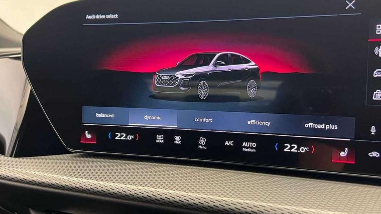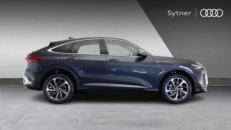 Adaptive cruise control, Advanced driver attention alert, Audi application store, Audi connect emergency call and service, Audi drive select, Audi smartphone interface, Audi virtual cockpit plus with 11.9" OLED colour display, Camera based traffic sign recognition, Fatigue monitor, Front cross traffic intersection assist, Lane departure warning system, MMI navigation plus with high resolution 14.5" OLED touchscreen colour display, Park assist plus, Parking system plus with 360 display, PAS, Reversing camera, Swerve assist and turn assist, Traffic sign based speed limiter, 2 USB-C ports in both the front and rear, Audi sound system impressive sound with 8 loudspeakers including centre speaker and subwoofer, 6-channel amplifier with a total output of 180 watts, DAB Digital radio, Smartphone compartment with wireless charging, Auto dimming rear view mirror, Body coloured door mirrors, Coming/leaving home lighting function, Electrically adjustable heated and folding + automatically dimming exterior mirrors, Front and rear electric windows, Front door sill trims with aluminium inlays, illuminated with 'S' logo, Headlight cleaning system, Heated rear window, High beam assist, High gloss window surrounds, Inlay and front air inlets in matt anthracite chrome, LED headlights plus incl. digital DRL, dynamic coming and leaving home function with turning/all weather/motorway/manouevring and intersection lights, LED rear lights pro incl. dynamic rear indicators and illuminated light strip with animated coming and leaving home function, Logo projection light in exterior mirrors, Privacy glass, Projection light for rear window, Radiator grille in phantom black, Rear and side windows with heat insulating glass, Rear honeycombe grille in matt black with inlay in matt anthracite chrome, Rear side wing doors, Rear wash/wipe, S Line badge on the front wings, S line bumpers in contrasting Volcano grey metallic paint finish, Towbar preparation, Windscreen with acoustic glazing, 3 rear head restraints, 3 seat bench in 2nd row, 3 spoke leather steering wheel with multi-function buttons with touch control, flattened on top and bottom, with S badging and contrast stitching, 40:20:40 split folding rear seat bench with centre armrest and cup holders, Comfort centre armrest, Deluxe 3 zone electronic climate control, Front and rear floor mats, Front seats with manual adjustment for position and 4-way electric lumbar support, Front sport seats with integrated head reastrains, Headlining in black cloth, Heated front seats, i-Size child seat mounting on the front passenger side and outer rear seats, i-Size and top tether on the outer rear seats, Interior trim in aluminium look, Luggage compartment lid, electrically opening and closing, Manual steering column adjustment, S embossed logo on front sport seats, Single front passenger seat, Softwrap in leatherette, Stainless steel pedals and footrest, Steering wheel grips in perforated leather and shift paddles, Ambient lighting package plus - Q5, Storage and luggage compartment pack - Q5, 3x3 point rear seatbelts, ABS, Acoustic vehicle alerting system, Driver and front passenger airbag with passenger airbag deactivation, Electric child safety locks, First aid kit with warning triangle and high visibility vests, Front emergency brake assist, Front side airbags with head airbag system and front interaction airbag, Hill hold assist, Rear seat occupant reminder, Tyre pressure loss indicator, Anti theft alarm, Anti-theft wheel bolts, Remote control key with SAFELOCK and keyless go, Accent surfaces and control buttons in gloss black, Anthracite matt brushed aluminium inlays with linear embossing, Black dashboard with contrast stitching, Upper and lower interior elements in artificial leather, Tyre repair kit,