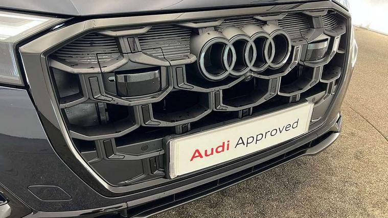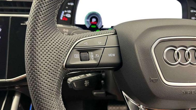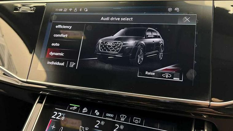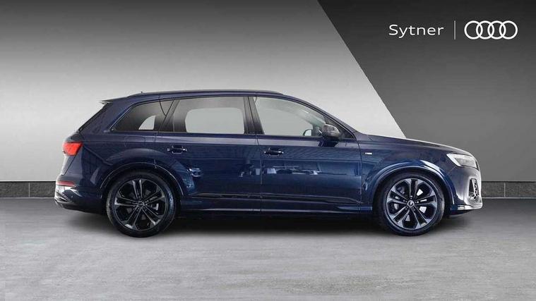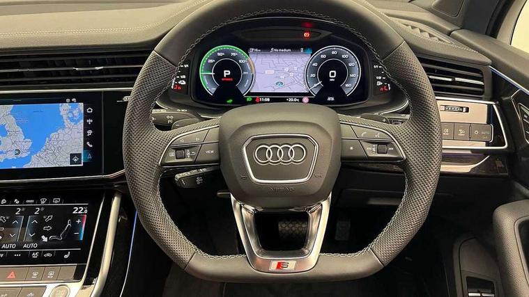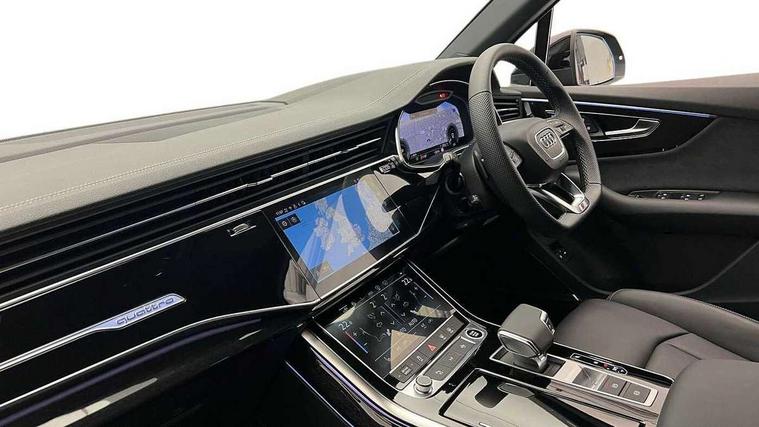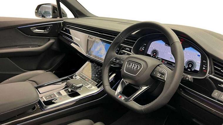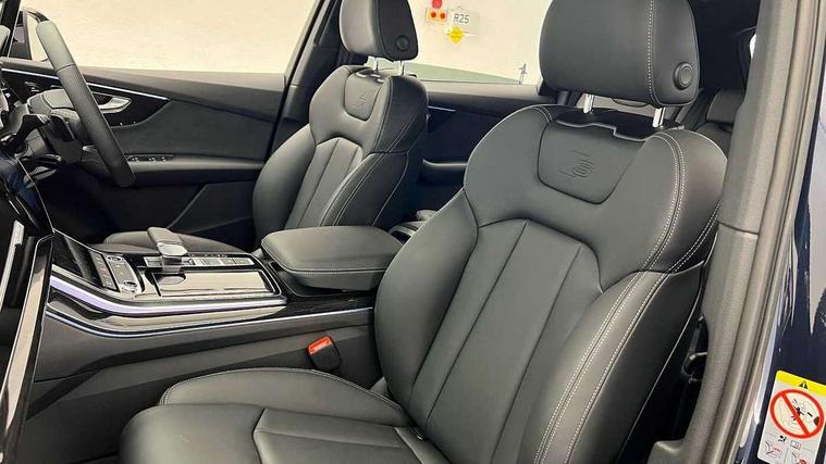 Audi connect safety and service (e-call), Audi connect with Amazon Alexa Integration, Audi drive select (Auto, Comfort, Dynamic, Efficiency, Individual, Off-road and All road), Audi phone box light with wireless charging, Audi smartphone interface includes wireless Apple carplay/Android Auto, Audi virtual cockpit - 12.3" high-resolution classic display with fully customisable instrument cluster, Bluetooth interface, Camera based traffic sign recognition, Electromechanical power steering, MMI navigation plus with MMI touch screens includes 10.1" and 8.6" screens with haptic feedback, Natural voice recognition, Operating buttons in Matte black, Parking system plus with 360 degree display (front, rear and side sensors) - acoustic and visual park assist system, Power operated tailgate, Rear view camera, Start/stop system, 85 litre fuel tank, Adaptive air sports suspension, Quattro all wheel drive with self locking centre differential, Audi music interface - front 2 USB-C ports with charger and data functions, Audi sound system with 6 channel amplifier, 180 watt amplifying capacity and 10 loudspeakers including subwoofer, DAB digital radio module, Aluminium window trim, Audi Beam uses LEDs to project S emblem with red rhombus onto the ground when opening the side doors (front/rear), Auto dimming frameless rear view mirror, Black exhausts, Black roof rails, Electrically adj heated/folding + automatically dimming exterior mirrors with memory + automatic kerb side function for passenger side exterior mirror, Heat insulating glass in windshield, Integrated LED indications in door mirrors, LED 3rd brake light, LED daytime running lights, LED rear tail lights, Loading edge protection in stainless steel, Matrix LED headlights with dynamic front and rear indicators, Privacy glass - dark tinted rear and rear side windows from B-pillar backwards, Rear side wing doors, Rear wiper, 3 seat bench in 2nd row, 3 zone climate control, Black carpets, Black cloth headlining, Comfort front centre armrest, Electric adjustable front seat with 4 way lumbar support, driver memory functionality, Folding rear seats, Front head restraints, Front/rear floor mats, Heated front seats, Illuminated door sill trims with S logo, ISOFIX child seat mounting for front passenger seat and 2 outer rear seats with top tether child seat mounting for all 3 rear seats, LED interior ambient lighting, Luggage compartment cover, Luggage compartment sill protection in stainless steel, Rear head restraints, Single front passenger seat, Stainless steel pedals, Sunvisors with illuminated vanity mirrors, Black styling pack plus - Q7, 3 point seatbelts on all rear seats, Audi pre sense front, Child locks on rear doors, Convenience key with safelock and gesture tailgate, Driver and front passenger, front side and curtain airbags, Electromechanical parking brake, Electronic Stabilisation Control (ESC) including ABS, ASR and EDL, Extended pedestrian protection measures, Hill hold assist, Seatbelt reminder, Tyre pressure loss indicator, Warning triangle and first aid kit, Anti theft alarm with tow away protection, Anti-theft wheel bolts and wheel loosening detection, Keyless Go, Remote central locking, Black dashboard, Polished oak trim with grey finish inlay, Tool kit, Tyre repair kit,