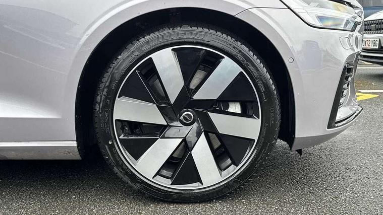 12.3" Progressive Driver Display, 360 degree surround view parking camera with side proximity sensors, 9" centre console touch screen, Adjustable steering wheel force, Android Auto, Apple CarPlay, Bluetooth handsfree system, Drive mode settings, Driver alert control with lane keeping aid, Driver assistance (pilot assist and adaptive cruise control), Driver awareness - Blind spot information system with steer assist, cross traffic alert with autobrake and rear collision warning and mitigation, E-call, Front and rear park assist, Google automotive services - Enabled entertainment apps, navigation with google maps, voice recognition with google assistant, Information centre, Intelligent speed assistance, Oncoming Lane Mitigation, Pilot assist, Power operated tailgate with handsfree opening and closing, Service interval indicator, Speed sensitive steering, Trip computer, Volvo cars services with app, Volvo on call app, 6m 3 phase 16amp Type 2 / mode 3 charge cable, Automatic transmission with start/stop and manual change functions, Dynamic chassis, Electric rear axle drive, Lithium-ion battery, On board charger - 6.4 kW 2 phase/3.7kW single phase, Recharging port located in nearside front wing, DAB Digital radio, Low speed exterior sound speaker, Premium sound by Harman Kardon, Dolby Pro Logic II surround sound, Dirac Unison, 13 speakers/600W and fresh air subwoofer, Steering wheel remote infotainment controls, Active bending headlights with adaptive shadow technology, Adaptive brake lights with high level LED brake lights, Auto dimming interior + exterior mirrors, Automatic headlight levelling system, Automatic LED Headlights + Active high beam incorporating daytime running lights, Dark tinted windows - rear side windows and rear screen, Front and rear power windows, Headlight cleaning system, Heated front windscreen, High gloss black autofolding heated power door mirrors, High gloss black front and rear bumper deco, High gloss black mesh front grille with high gloss black surround, High gloss black window surround, Home safe and approach lighting, Integrated roof rails in high gloss black, Power glass tilt and slide panoramic sunroof with sun curtain, Puddle lights, Rain sensor with automatic windscreen wiper activation, Rear side wing doors, Rear wiper, Roof antenna, Roof spoiler, Variable front intermittent wipers, Visible VIN plate, 12V socket in front tunnel console and luggage compartment, 2 zone electronic climate control with Clean zone air quality system + pollen filter, 3 Spoke tailored steering wheel with chrome trim, 60/40 versatile split folding 3 bench rear seats in 2nd row, A-pillar parking ticket holder, Air purifier PM2.5, B Pillar ventilation, Bright metal luggage scuff plate, Centre console storage, Charcoal carpets and floor mats, Extended front seat cushions, Front and rear courtesy and front reading lights, Front cupholders, Front footwell illumination, Front head restraints, Front/rear door pockets and front cupholder illumination, Glovebox compartment with illumination, Heated front seats, Heated rear seats outer positions, Heated steering wheel, Height/reach adjustable steering column, Illuminated vanity mirrors + ticket holder, ISOFIX attachment on outer rear seats, Load cover, Load protection net, Luggage compartment divider with grocery bag holder, Luggage compartment illumination, Luggage compartment load hooks, Multi directional lumbar support, Power driver seat with memory + exterior mirrors memory, Power folding rear headrests, Power height adjustable passenger seat, Power passenger seat with memory, Rear armrest with cupholder, Rear footwell and front and rear side step illumination, Rear reading lights, Recharge aluminium tread plates, Single front passenger seat, Tailgate illumination, Underfloor cargo storage, 5 x 3 point seatbelts, City safety with steering support with Pedestrian + cyclist + front collision warning with full auto brake and rear auto brake, Driver and passenger airbags, First aid kit, Front seats SIPS airbags, Hill start assist, IC (Inflatable Curtains) - Full Length, Passenger airbag cut-off switch, Power child locks on rear doors, Power parking brake with auto hold function, Road sign information display, Run off Road Mitigation, Run off Road Protection, Seatbelt reminder and pretensioners for all seats, SIPS (Side Impact Protection System), Slippery road and hazard light alert, Stability and Traction Control with Spin control, Engine Drag Control and Corner Traction Control, Tyre pressure monitoring system, Vehicle deceleration control with Anti-lock Brake System, Electronic Brake Distribution and Emergency Brake Assist, Warning triangle, WHIPS whiplash protection system - front, 2X Key integrated remote control central locking with deadlocking system and auto open/close power windows, Anti-theft alarm including immobiliser/volume sensor + level sensor, Care key with user defined top speed, Keyless drive includes keyless entry and keyless start, Locking wheel nuts, Private locking luggage compartment, Tyre sealant kit and compressor,