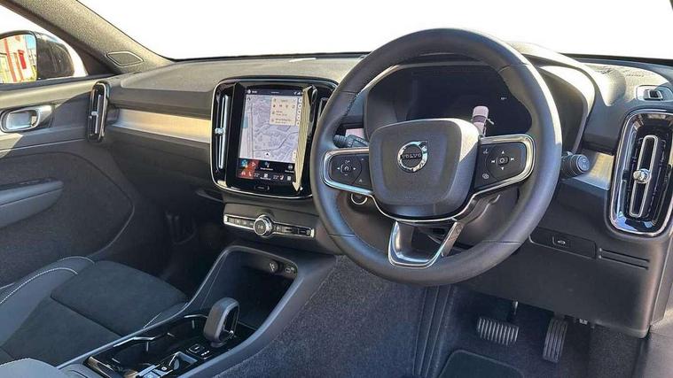 12.3" Progressive Driver Display, 9" centre console portrait touch screen, Adjustable steering wheel force, Android auto (Wired), Apple carplay (wired), Bluetooth handsfree system, Driver alert control, Driver assistance (pilot assist and adaptive cruise control), Driver awareness - Blind spot information system with steer assist, cross traffic alert with autobrake and rear collision warning and mitigation, E-call, Front and rear parking sensors, Front park assist, Google automotive services - Enabled entertainment apps, navigation with google maps, voice recognition with google assistant, Hands free power tailgate, Intelligent speed assistance, Lane keeping aid, Oncoming Lane Mitigation, Speed sensitive steering, Volvo cars services with app - Driving journal, emergency and breakdown call, engine remote start, remote door locking/unlocking and vehicle dashboard, Wireless/Inductive Mobile Phone Charging, Automatic transmission with start/stop and manual change functions, Dynamic chassis, DAB Digital radio, Steering wheel mounted remote controls, Adaptive brake lights with high level LED brake lights, Auto dimming feature for exterior door mirrors, Auto dimming interior mirror, Auto folding and heated power door mirrors, Automatic headlamp levelling, Automatic LED Headlights + Active high beam incorporating daytime running lights, Front aluminium tread plates, Front and rear electric windows, High gloss black front and rear skid plate, High gloss black front bumper deco, High gloss black mesh front grille with high gloss black surround, High gloss black window trim, Home safe and approach lighting, Integrated roof rails in high gloss black, LED front fog lights, Puddle lights, Rain sensor with automatic windscreen wiper activation, Rear side wing doors, Rear wiper, Roof antenna, Roof spoiler, Visible VIN plate, 12V socket in front tunnel console and luggage compartment, 2-Zone electronic climate control with CleanZone air quality system and pollen filter, 3 seat bench in 2nd row, 3 Spoke tailored steering wheel with chrome trim, 60/40 versatile split folding rear seat, Centre console cupholders and storage, Charcoal carpet and floor mats, Charcoal headlining, Connect suede textile/microtech upholstery, Flexible load floor and grocery bag holder, Front headrests, Front seat cushion extensions, Glovebox bag hook, Heated front seats, Height adjustable passenger seat, Height/reach adjustable steering column, High gloss centre tunnel deco, High level illumination - Front door pocket, front side step (under door), tailgate, instrument panel, front door inlay, rear courtesy&reading lights, Integrated waste bin, Isofix attachments on outer rear seats, Load cover, Load protection net, Mid level illumination - Front footwell, luggage & glovebox compartment, front cabin courtesy & reading lights, illuminated vanity mirrors+ticket holder, Multi directional lumbar support for driver and passenger seat, Power driver seat with memory + exterior mirrors memory, Rear armrest with cupholders, Rear headrests, Single front passenger seat, Underfloor luggage compartment storage, Climate pack without heated front seats - XC40, 3x3 point rear seatbelts, City safety with steering support with Pedestrian + cyclist + front collision warning with full auto brake and rear auto brake, Driver and passenger airbags, Drivers knee airbag, Electronic parking brake with auto hold, First aid kit, Front and outer rear seatbelt reminder and pretensioners, Front seats SIPS airbags, Hill descent control - Off-road drive mode, Hill start assist, IC (Inflatable Curtains) - Full Length, Passenger airbag cut-off device, Power child locks on rear doors, Road sign information display, Run off Road Protection, SIPS (Side Impact Protection System), Slippery road and hazard light alert, Stability and Traction Control with Spin control, Engine Drag Control and Corner Traction Control, Tyre pressure monitoring system, Vehicle deceleration control with Anti-lock Brake System, Electronic Brake Distribution and Emergency Brake Assist, Warning triangle, WHIPS whiplash protection system - front, 2 x Key integrated remote control central locking including with deadlocking system and auto open/close windows, Anti-theft alarm including immobiliser/volume sensor + level sensor, Keyless drive includes keyless entry and keyless start, Locking wheel nuts,