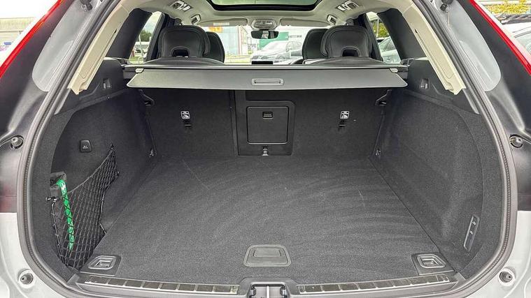 11.2" centre console touch screen, 12.3" Progressive Driver Display, 360 degree surround view parking camera with side proximity sensors, Adaptive cruise control, Adjustable steering wheel force, Android auto (Wired), Apple carplay (wired), Bluetooth handsfree system, Driver alert control with lane keeping aid, Emergency services call system, Front and rear park assist, Google Automotive Services, Intelligent speed assistance, Oncoming Lane Mitigation, PAS, Power operated tailgate with handsfree opening and closing, Service interval indicator, Speed limiter, Speed sensitive steering, Trip computer, Volvo cars services with app, Volvo on call with App, Wireless/Inductive Mobile Phone Charging, 8 speed automatic transmission with start/stop + manual change functions, Active four-C chassis + four corner adaptive damper with electronic rear air suspension, DAB Digital radio, Premium Sound by Bowers and Wilkins, dirac live, dolby pro logic II surround sound, 14 speakers/1100W output and subwoofer, Steering wheel remote infotainment controls, Active bending headlights with adaptive shadow technology, Adaptive brake lights with high level LED brake lights, Auto dimming interior + exterior mirrors, Automatic headlight levelling system, Automatic LED Headlights + Active high beam incorporating daytime running lights, Dark tinted windows for rear side windows and cargo area, Electric adjustable/heated/auto power folding door mirrors, Electric front+rear windows, Front aluminium tread plates, Headlight cleaning system, High gloss black door mirrors and window surround, High gloss black front and rear bumper decoratives, High gloss black mesh front grille with high gloss black surround, Home safe and approach lighting, Integrated roof rails in high gloss black, LED front fog lights with static cornering light function, Power glass tilt and slide panoramic sunroof with sun curtain, Puddle lights, Rain sensor with automatic windscreen wiper activation, Rear side wing doors, Rear wiper, Roof antenna, Roof spoiler, Tinted windscreen, Visible VIN plate, 12V socket in front tunnel console and luggage compartment, 3 seat bench in 2nd row, 4 Zone electronic climate control, A-pillar parking ticket holder, Air purifier particulate matter (PM) 2.5 filter, B Pillar ventilation, Bright metal luggage scuff plate, Centre console cupholders and storage, Charcoal floor mats, Front and rear courtesy lights, Front and rear door pocket illumination, Front cupholder illumination, Front footwell illumination, Front reading lights, Front seat cushion extensions, Glovebox compartment with illumination, Head restraints for all seats, Heated front seats, Heated steering wheel, Height/reach adjustable steering column, Illuminated luggage compartment, Illuminated vanity mirrors + ticket holder, Inner door release handle illumination, ISOFIX attachment on outer rear seats, Load cover, Load protection net, Multi directional lumbar support, Power driver seat with memory + exterior mirrors memory, Power folding rear headrests, Power passenger seat with memory, Rear armrest with cupholder, Rear footwell and front and rear side step illumination, Rear reading lights, Rear seat concealed storage, Single front passenger seat, Tailgate illumination and ambient door lighting, Underfloor stowage compartment, Versatile split folding rear seat - 60/40, Driver assist pack without Adaptive cruise control - XC60, 5 three point seatbelts, City safety with steering support with Pedestrian + cyclist + front collision warning with full auto brake and rear auto brake, Drivers knee airbag, Dual stage driver/passenger airbags, Electronic parking brake with auto hold, First aid kit, Front seats SIPS airbags, Hill descent control - Off-road drive mode, Hill start assist, IC (Inflatable Curtains) - Full Length, Passenger airbag cut-off device, Power child locks on rear doors, Run off Road Mitigation, Run off Road Protection, Seatbelt reminder and pretensioners, SIPS (Side Impact Protection System), Slippery road and hazard light alert, Stability and Traction Control with Spin control, Engine Drag Control and Corner Traction Control, Tyre pressure monitoring system, Vehicle deceleration control with Anti-lock Brake System, Electronic Brake Distribution and Emergency Brake Assist, Warning triangle, WHIPS whiplash protection system - front, Anti-theft alarm including immobiliser/volume sensor + level sensor, Key integrated remote control central locking + fuel flap with deadlocking system and auto open/close power windows, Keyless Drive (includes Keyless Entry and Keyless Start), Locking wheel nuts, Private locking for tailgate, Tailored instrument panel with contrast stitching, Summer tyres,