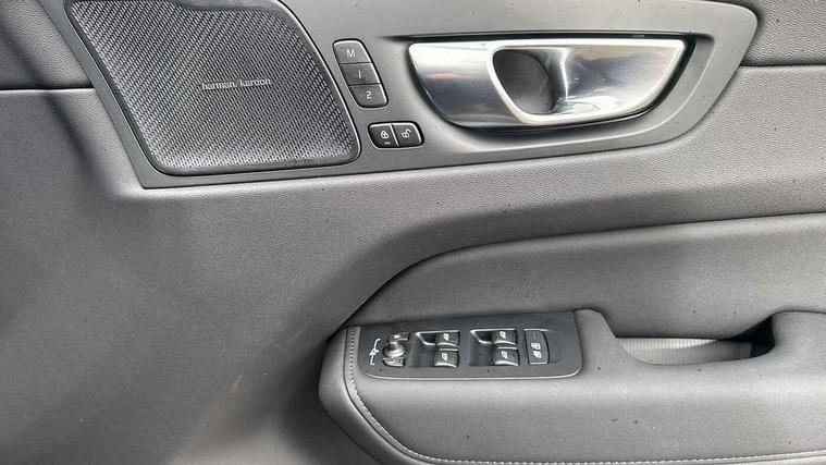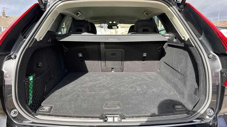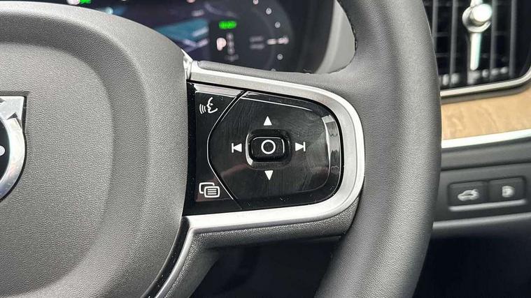 11.2" centre console touch screen, 12.3" Progressive Driver Display, 360 degree surround view parking camera with side proximity sensors, Adaptive cruise control, Adjustable steering wheel force, Android auto (Wired), Apple carplay (wired), Bluetooth handsfree system, Drive mode settings, Driver alert control with lane keeping aid, Emergency services call system, Front and rear park assist, Google Automotive Services, Intelligent speed assistance, Oncoming Lane Mitigation, PAS, Power operated tailgate with handsfree opening and closing, Service interval indicator, Speed limiter, Speed sensitive steering, Trip computer, Volvo cars services with app, Volvo on call with App, Wireless/Inductive Mobile Phone Charging, 2 phase on board charger 6.4kW (home charging limited to 3.7kW), 6m 3 phase 16amp Type 2 / mode 3 charge cable, 8 speed automatic transmission with start/stop + manual change functions, Electric rear axle drive, Recharging port located in nearside front wing, DAB Digital radio, Low speed exterior sound speaker, Premium Sound by Harman Kardon, dirac unison, dolby pro logic II surround sound, 13 speakers/600W output and fresh air subwoofer, Steering wheel remote infotainment controls, Adaptive brake lights with high level LED brake lights, Auto dimming interior + exterior mirrors, Automatic headlight levelling system, Automatic LED Headlights + Active high beam incorporating daytime running lights, Electric adjustable/heated/auto power folding door mirrors, Electric front+rear windows, Front aluminium tread plates, Heated front windscreen, High gloss black door mirrors and window surround, High gloss black front and rear bumper decoratives, High gloss black mesh front grille with high gloss black surround, Home safe and approach lighting, Integrated roof rails in high gloss black, Puddle lights, Rain sensor with automatic windscreen wiper activation, Rear side wing doors, Rear wiper, Roof antenna, Roof spoiler, Tinted windscreen, Visible VIN plate, 12V socket in front tunnel console and luggage compartment, 2 zone electronic climate control with Clean zone air quality system and pollen filter, 3 seat bench in 2nd row, 3 Spoke tailored steering wheel with chrome trim, A-pillar parking ticket holder, Air purifier particulate matter (PM) 2.5 filter, B Pillar ventilation, Bright metal luggage scuff plate, Centre console cupholders and storage, Charcoal floor mats, Front and rear courtesy lights, Front and rear door pocket illumination, Front cupholder illumination, Front footwell illumination, Front reading lights, Front seat cushion extensions, Glovebox compartment with illumination, Head restraints for all seats, Heated front seats, Heated steering wheel, Height/reach adjustable steering column, Illuminated luggage compartment, Illuminated vanity mirrors + ticket holder, Inner door release handle illumination, ISOFIX attachment on outer rear seats, Load cover, Load protection net, Multi directional lumbar support, Power driver seat with memory + exterior mirrors memory, Power height adjustable passenger seat, Power passenger seat with memory, Quilted nordico leather upholstery, Rear armrest with cupholder, Rear footwell and front and rear side step illumination, Rear reading lights, Rear seat concealed storage, Single front passenger seat, Tailgate illumination and ambient door lighting, Underfloor stowage compartment, Versatile split folding rear seat - 60/40, Driver assist pack without Adaptive cruise control - XC60, 5 three point seatbelts, City safety with steering support with Pedestrian + cyclist + front collision warning with full auto brake and rear auto brake, Drivers knee airbag, Dual stage driver/passenger airbags, Electronic parking brake with auto hold, First aid kit, Front seats SIPS airbags, Hill descent control - Off-road drive mode, Hill start assist, IC (Inflatable Curtains) - Full Length, Passenger airbag cut-off device, Power child locks on rear doors, Road sign information display, Run off Road Mitigation, Run off Road Protection, Seatbelt reminder and pretensioners, SIPS (Side Impact Protection System), Slippery road and hazard light alert, Stability and Traction Control with Spin control, Engine Drag Control and Corner Traction Control, Tyre pressure monitoring system, Vehicle deceleration control with Anti-lock Brake System, Electronic Brake Distribution and Emergency Brake Assist, Warning triangle, WHIPS whiplash protection system - front, Anti-theft alarm including immobiliser/volume sensor + level sensor, Key integrated remote control central locking + fuel flap with deadlocking system and auto open/close power windows, Keyless Drive (includes Keyless Entry and Keyless Start), Locking wheel nuts, Private locking for tailgate, Summer tyres, Tyre sealant kit + 12v compressor,