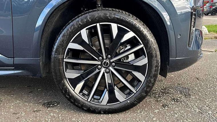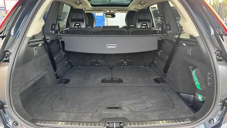 11.2" centre console touch screen, 12.3" Progressive Driver Display, 360 degree surround view parking camera with side proximity sensors, Adjustable steering wheel force, Apple carplay (wired), Bluetooth handsfree system, Drive mode settings, Driver alert control with lane keeping aid, Driver assistance (pilot assist and adaptive cruise control), Driver awareness - Blind spot information system with steer assist, cross traffic alert with autobrake and rear collision warning and mitigation, Driver monitoring system, Emergency call service, Front and rear park assist, Google Automotive Services - Navigation with Voice recoginition and google assistant, Handsfree power tailgate opening and closing, Intelligent speed assistance, Oncoming Lane Mitigation, PAS, Power operated tailgate, Service interval indicator, Speed sensitive steering, Trip computer, Volvo on call, Wireless/Inductive Mobile Phone Charging, 6m 3 phase 16amp Type 2 / mode 3 charge cable, 8 speed automatic transmission with start/stop + manual change functions, Active four C chassis - four corner adaptive dampers with electronic air suspension, Electric rear axle drive, Lithium-ion battery, On board charger - 6.4 kW 2 phase/3.7kW single phase, Recharging port located in nearside front wing, DAB Radio (Digital Audio Broadcasting), Low speed exterior sound speaker, Premium Sound by Harman Kardon, dirac unison, dolby pro logic II surround sound, 13 speakers/600W output and fresh air subwoofer, Steering wheel remote infotainment controls, Adaptive brake lights with high level LED brake lights, Auto dimming interior + exterior mirrors, Auto folding and heated power door mirrors, Automatic headlight levelling system, Automatic matrix LED headlights with Adaptive shadow technology and Active high beam, incorporating Day running lights, Body colour bumpers, Front and rear power windows, Headlight cleaning system, Heated front windscreen, High gloss black door mirrors and window surround, High gloss black front and rear bumper deco, High gloss black front grille and deco, Home safe and approach lighting, Integrated roof rails in high gloss black, Power glass tilt and slide panoramic sunroof with sun curtain, Puddle lights, Rain sensor with automatic windscreen wiper activation, Rear side wing doors, Rear wash/wipe with intermittent wipe setting, Roof antenna, Roof spoiler, Visible VIN plate, 12V socket in luggage compartment, 2nd Row centre armrest with and cupholders, 3 Spoke tailored sport steering wheel with chrome trim, 4 zone electronic climate control with Clean zone air quality system + pollen filter, A-pillar parking ticket holder, Air conditioning for 3rd row of seats, Air purifier PM2.5, Ambient door and instrument panel lighting, B Pillar ventilation, Bright metal luggage scuff plate, Centre console cupholders and storage, Floor mats, Front and rear courtesy lights, Front and rear door pocket illumination, Front footwell and side step illumination, Front headrests, Front reading lights, Front seat cushion extensions, Front tunnel storage illumination, Glovebox compartment light, Heated front seats, Heated rear seats, Heated steering wheel, Height/reach adjustable steering column, Illuminated front and rear aluminium tread plates, Illuminated luggage compartment, Illuminated tailgate, Illuminated vanity mirrors + ticket holder, Inner door release handle illumination, Isofix outer rear child seat preparation in 2nd row, Load cover, Load protection net, Lockable glovebox compartment, Luggage compartment divider with grocery bag holder, Nordico quilted upholstery, Outboard armrest with cupholder and storage for third row passengers, Power driver seat with multi directional lumbar support and memory for seat and exterior mirrors, Power folding 2nd row headrests, Power passenger seat with multi directional lumbar support and memory, Rear footwell and side step illumination, Rear headrests, Rear reading lights, Second row integrated child seat for centre seat, Single front passenger seat, Textile headlining, Three 2nd row individual folding passenger seats with fore/aft adjustment, Two 3rd row individual folding passenger seats, Underfloor luggage compartment storage, 7 three point seatbelts, City safety with steering support includes pedestrian, cyclist detection, front collision warning with full auto brake and rear auto brake, Driver and passenger airbags, Drivers knee airbag, First aid kit, Front seats SIPS airbags, Hill descent control - off drive mode, Hill start assist, IC (Inflatable Curtains) - Full Length, Passenger airbag cut-off switch, Power child locks on rear doors, Power parking brake with auto hold function, Road sign information display, Run off Road Protection, Seatbelt reminder and pretensioners for all seats, SIPS (Side Impact Protection System), Slippery road and hazard light alert, Stability and Traction Control with Spin control, Engine Drag Control and Corner Traction Control, Tyre pressure monitoring system, Vehicle deceleration control with Anti-lock Brake System, Electronic Brake Distribution and Emergency Brake Assist, Warning triangle, WHIPS whiplash protection system - front, 2x Key integrated remote control central locking + deadlocking system and auto open/close windows, Anti-theft alarm including immobiliser/volume sensor + level sensor, Keyless drive includes keyless entry and keyless start, Locking wheel nuts, Tailored instrument panel and door tops, Tyre sealant kit and compressor,