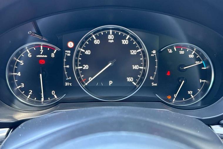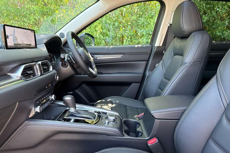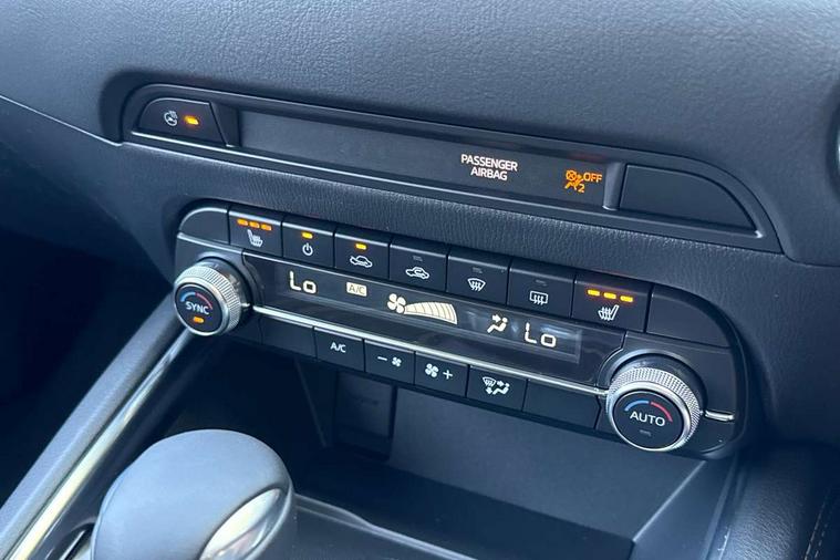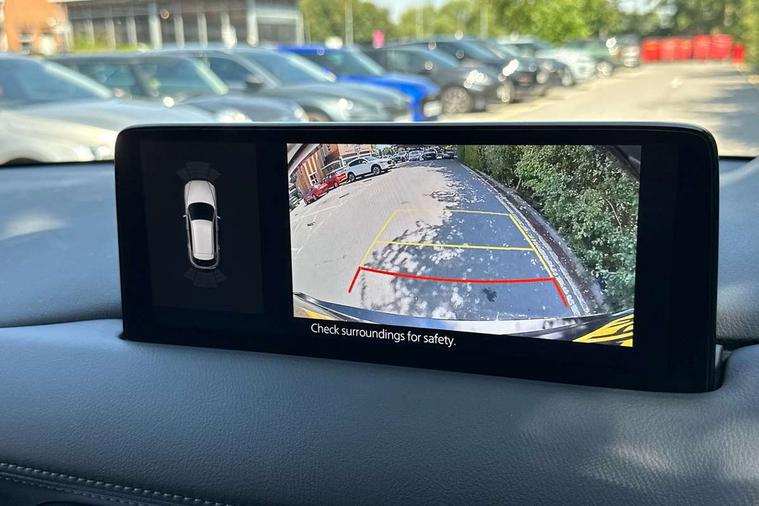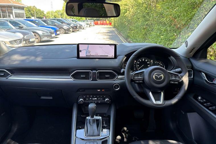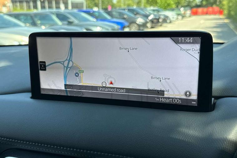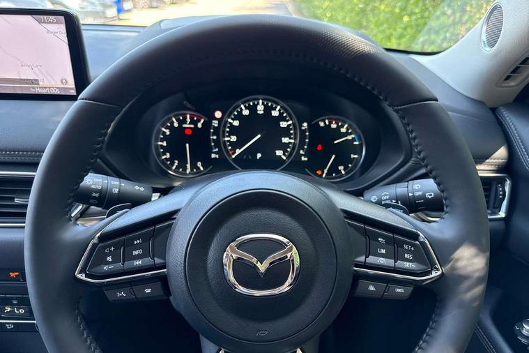 10.25" display with Mazda Connect infotainment, 7" colour TFT display, Advanced blind spot monitoring, Bluetooth connectivity with voice control, Collision prevention assist, Connected services, Cruising Traffic Support, Drive mode selector, Electric power steering, Emergency stop signalling system, Engine start/stop button, Forward collision warning, Front and rear parking sensors, Integrated navigation system, Intelligent speed assist, Lane departure warning system, Lane keep assist, Power liftgate, Qi wireless phone charging, Radar cruise control with Stop and Go, Rear cross traffic alert, Reversing camera, Service indicator, Traffic sign recognition (TSR), Trip computer, Windscreen projected colour active driving display (HUD) with memory, Wireless apple car play/android Auto, Cylinder Deactivation, i-stop, AM/FM radio, Bluetooth audio streaming, Bose premium sound system with 10 speakers, DAB Digital radio, Multimedia Commander including separate volume dial, Steering wheel mounted audio controls, Adaptive front lighting system, Auto dimming rear view mirror, Automatic headlights, Black inlay dashboard panel, Body colour door mirrors, Body colour roof spoiler, Body coloured front and rear black lower bumper mouldings, Coming/leaving home lighting function, Door mirror integrated indicators, Dual chrome tailpipes, Dusk sensitive headlamps, Electric front/rear windows with one touch auto up/down, Front grille in gloss black finish, Front grille in gloss black finish with chrome signature wing, Gloss black B and C pillars garnish, High beam assist, Intermittent rear wash/wipe, LED auto levelling, LED daytime running lights, LED front fog lights, LED Headlights, LED third brake light, Power folding and heated door mirrors, Power tilt/slide sunroof, Privacy glass (rear side windows only), Rain sensing front wipers, Rear side wing doors, Satin black side mouldings, Scuff plates, Shark fin antenna, Signature LED rear combination lights, Variable intermittent front wash/wipe, Vinyl with wood grain metal inlay door trim panel, Windscreen wiper de-icer, 12v electrical power outlet, 3 seat bench in 2nd row, 3 stage heated front seats, 40:20:40 Karakuri fold-flat seat system, 6 way electric adjustable passenger seat, 8 way electric driver seat with lumbar support + memory, Cargo room flat floor board with waterproof undertray, Driver seat power slide, recline and height adjustment, Driver, Front passenger and two rear grab handles with coat hooks, Driver/passenger front seatback pockets, Driver/passenger sunvisors + illuminated vanity mirrors (drivers with ticket holder), Dual zone climate control, Folding centre armrest with 2 cup holders, Front and rear door pockets, Front centre storage with two cupholders, Front passenger seat power slide, recline and height adjustment, Heated steering wheel, Humidity sensor, Illuminated glovebox, Interior dome light with integral spotlight, ISOFIX child seat anchorage points attached on outer rear seats, Karakuri tonneau cover, Leather upholstery, Leather wrapped steering wheel and gear knob, Light roof lining, Luggage compartment LED lighting, Luggage compartment power outlet, Paddle shifts, Rear air vents, Rear headrests, Rear seat recline, Roof mounted sunglasses holder, Single front passenger seat, Three height adjustable head restraints, Tilt/height adjustable steering wheel, USB Connectivity (2x front Type-C, 2x rear Type-B), White interior LED illumination lighting, 3 point front seatbelts with pre-tensioners, 3 rear 3 point seatbelts, ABS, Advanced Smart City Brake Support - SCBS, Child locks on rear doors, Driver and front passenger side airbags, DSTC-Dynamic Stability and Traction Control, Dual front airbags, Electronic brake force distribution, Electronic parking brake with auto hold, ESP, Front and rear curtain airbags, Front passenger airbag deactivation, G-Vectoring control, Hill hold assist, Seatbelt reminder front and rear, Single stage passenger airbags, Smart brake support with forward obstruction warning, Tyre pressure monitoring system, Automatic door locking when moving off, Deadlock, Immobiliser, Power door locks, Remote central locking, Smart keyless entry, Thatcham Cat.1 alarm, 19" diamond cut black alloy wheels, Tyre repair kit,