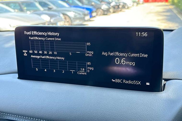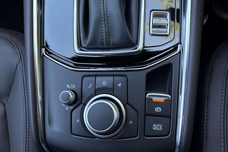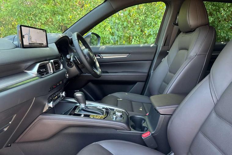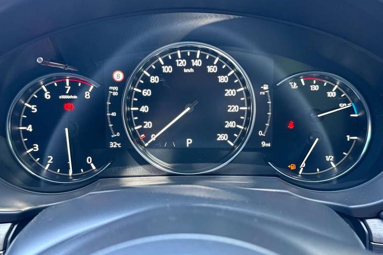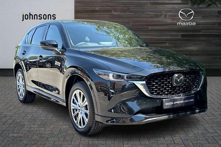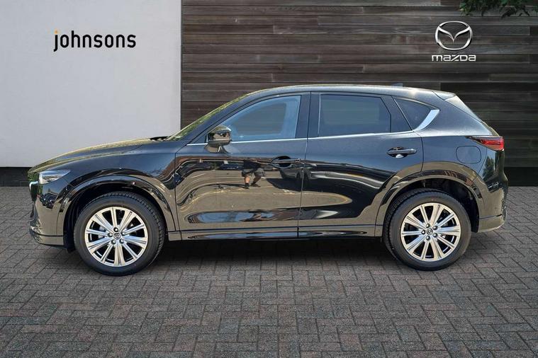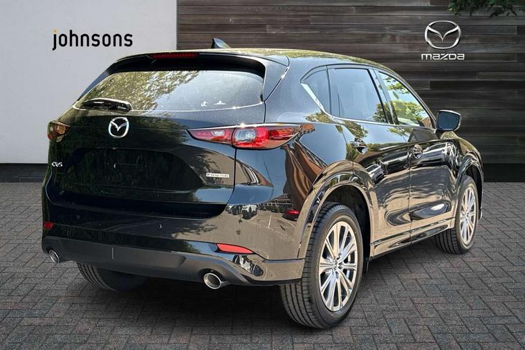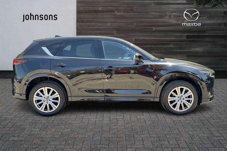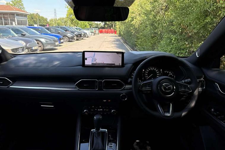 10.25" display with Mazda Connect infotainment, 360 degree surround camera, 7" colour TFT display, Advanced blind spot monitoring, Bluetooth connectivity with voice control, Collision prevention assist, Connected services, Cruising Traffic Support, Drive mode selector, Driver attention alert system, Electric power steering, Emergency stop signalling system, Engine start/stop button, Forward collision warning, Front and rear parking sensors, Integrated navigation system, Intelligent speed assist, Lane departure warning system, Lane keep assist, Power liftgate, Qi wireless phone charging, Radar cruise control with Stop and Go, Rear cross traffic alert, Service indicator, Traffic sign recognition (TSR), Trip computer, Windscreen projected colour active driving display (HUD) with memory, Wireless apple car play/android Auto, Cylinder Deactivation, i-stop, AM/FM radio, Bluetooth audio streaming, Bose premium sound system with 10 speakers, DAB Digital radio, Multimedia Commander including separate volume dial, Steering wheel mounted audio controls, Adaptive LED Headlights, Automatic headlights, Body colour door mirrors, Body colour roof spoiler, Body coloured front and rear lower bumper mouldings, Body coloured tire arch and side mouldings, Coming/leaving home lighting function, Door mirror integrated indicators, Dual large chrome tailpipes, Dusk sensitive headlamps, Electric front/rear windows with one touch auto up/down, Frameless auto dimming interior rear view mirror, Front grille in gloss black finish, Front grille in gloss black with black accent + chrome signature wing, Gloss black B and C pillars garnish, Gloss black front grille accent, Intermittent rear wash/wipe, LED auto levelling, LED daytime running lights, LED front fog lights, LED third brake light, Power folding and heated door mirrors, Power tilt/slide sunroof, Privacy glass (rear side windows only), Rain sensing front wipers, Real wood inlay dashboard panel, Rear side wing doors, Scuff plates, Shark fin antenna, Signature LED rear combination lights, Variable intermittent front wash/wipe, Vinyl with real wood inlay door trim panel, Windscreen wiper de-icer, 12v electrical power outlet, 3 seat bench in 2nd row, 3 stage heated front seats, 40:20:40 Karakuri fold-flat seat system, 6 way electric adjustable passenger seat, 8 way electric driver seat with lumbar support + memory, Black roof lining, Cargo room flat floor board with waterproof undertray, Driver seat power slide, recline and height adjustment, Driver, Front passenger and two rear grab handles with coat hooks, Driver/passenger front seatback pockets, Driver/passenger sunvisors + illuminated vanity mirrors (drivers with ticket holder), Dual zone climate control, Folding centre armrest with 2 cup holders, Front and rear door pockets, Front centre storage with two cupholders, Front passenger seat power slide, recline and height adjustment, Front seat ventilation, Heated outer rear seats, Heated steering wheel, Humidity sensor, Illuminated glovebox, Interior dome light with integral spotlight, ISOFIX child seat anchorage points attached on outer rear seats, Karakuri tonneau cover, Leather gear knob, Leather steering wheel with unique stitching and chrome centre bezel, Luggage compartment LED lighting, Luggage compartment power outlet, Nappa leather upholstery, Paddle shifts, Rear air vents, Rear headrests, Rear seat recline, Roof mounted sunglasses holder, Single front passenger seat, Three height adjustable head restraints, Tilt/height adjustable steering wheel, USB Connectivity (2x front Type-C, 2x rear Type-B), White interior LED illumination lighting, 3 point front seatbelts with pre-tensioners, 3 rear 3 point seatbelts, ABS, Advanced Smart City Brake Support - SCBS, Child locks on rear doors, Driver and front passenger side airbags, DSTC-Dynamic Stability and Traction Control, Dual front airbags, Electronic brake force distribution, Electronic parking brake with auto hold, ESP, Front and rear curtain airbags, Front passenger airbag deactivation, G-Vectoring control, Hill hold assist, Rear smart city brake support, Seatbelt reminder front and rear, Single stage passenger airbags, Smart brake support with forward obstruction warning, Tyre pressure monitoring system, Automatic door locking when moving off, Deadlock, Immobiliser, Power door locks, Remote central locking, Smart keyless entry, Thatcham Cat.1 alarm, Upper dashboard and door cards wood trim, 19" exclusive design bright alloy wheels, Tyre repair kit,