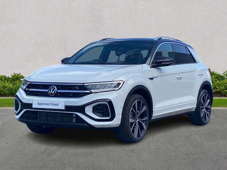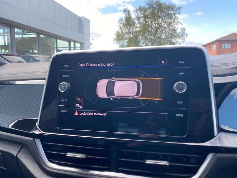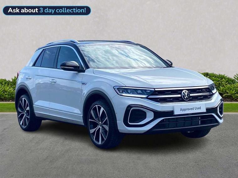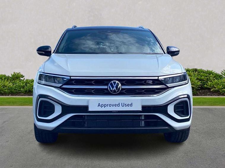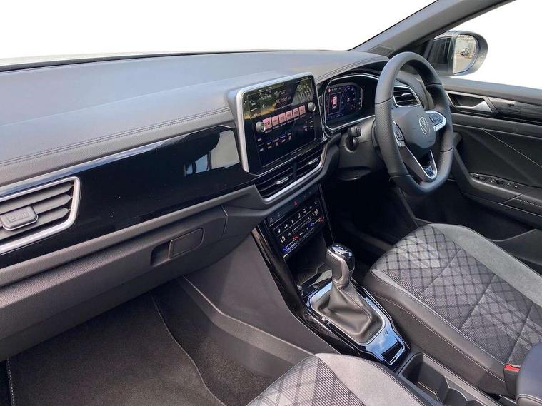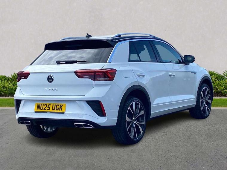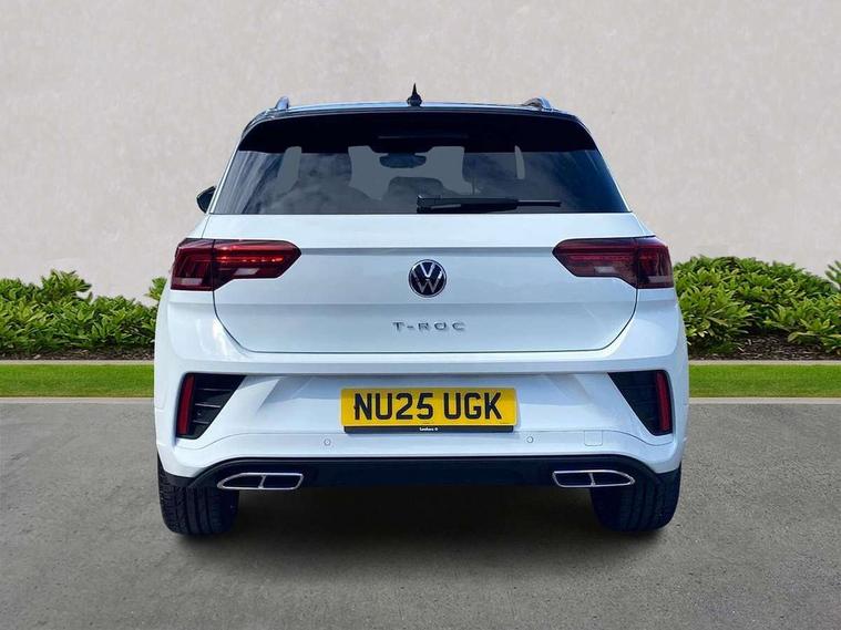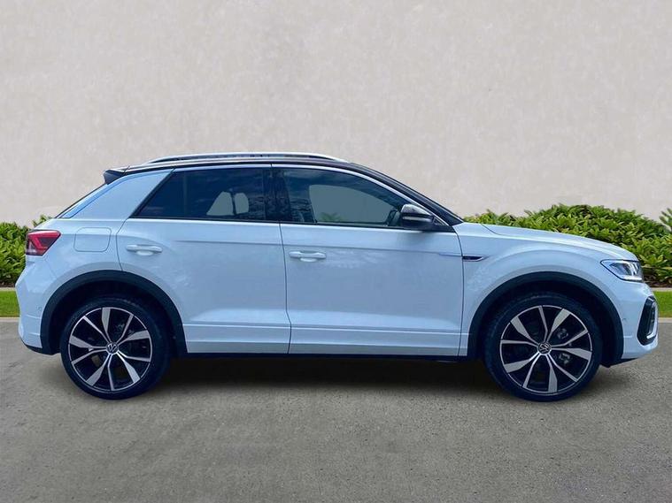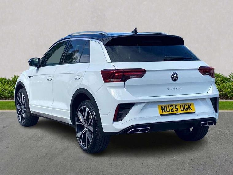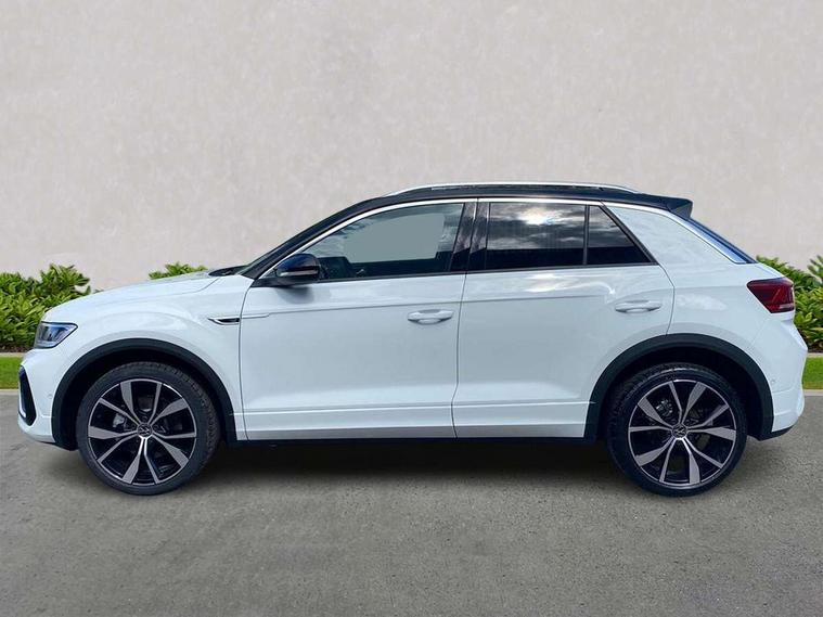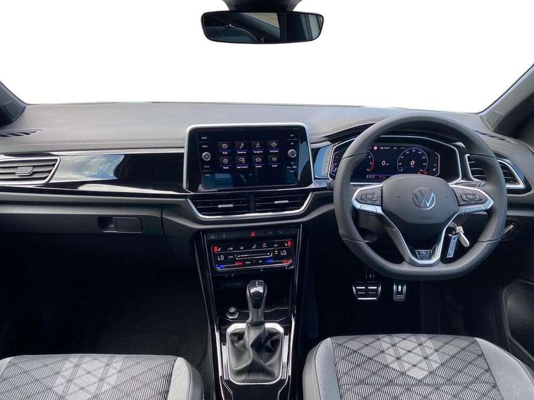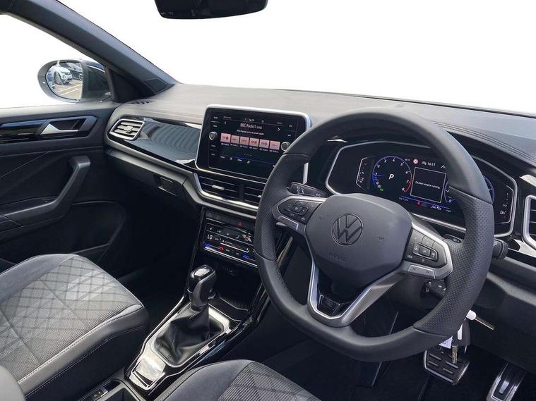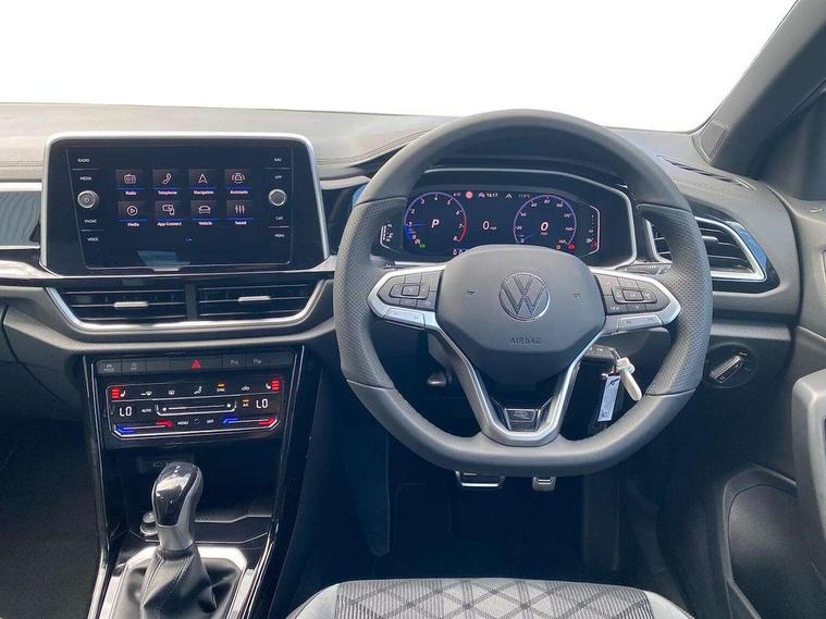 10.25" Digital cockpit pro, Advanced driver attention and drowsiness monitor, Emergency call service, Lane keeping system Lane Assist, Mobile phone interface, Modified key software - reduce switch off time for key status change to Long no motion, Online services, Park assist including front and rear parking sensors, Service interval indicator, Tailgate/trunk lid release from outside, Think blue trainer driver tips and journey analysis, Warning sound and light for front seatbelts unfastened, Wireless app connect, Battery regeneration during braking, Start/stop function with battery regeneration, DAB Digital radio, Diversity antenna for FM reception, Front and rear 6 speakers, Music playback - MP3, WMA and AAC files, Premium USB cable in choice of either Apple or Android smartphone compatibility, SD card slot, Simultaneous pairing of 2 compatible mobile devices, Title and cover art display, We Connect and We Connect Plus functionality, Auto dimming interior rear view mirror, Automatic hazard lights activation under emergency braking, Automatic headlight control with LED separate daytime running lights with coming/leaving home function, Body coloured exterior mirror housings and door handles, Electrically adjustable and heated door mirrors, Extended roof spoiler, Exterior mirrors aspherical on driver side, convex on front passenger side, External USB type C socket and charging sockets, Front windscreen wiper with intermittent wipe and 4 position delay, Heated rear window, LED 3rd brake light, LED rear combination lamps, LED rear number plate lights, Power windows with comfort operation and circuit breaker, Privacy glass for rear side windows and rear window, R-Line design body coloured bumpers, Rain sensor, Rear exhaust tailpipe, Rear fog light on one side and reversing lights on both sides, Rear side wing doors, Rear wash/wipe with intermittent wipe setting, Remote electrically foldable door mirrors, puddle lights and reverse activated passenger's door mirror, 12V power socket in centre console, 3 rear head restraints, 3 seat bench in 2nd row, 4 load lashing points in luggage compartment, Air care climatronic air conditoning system with active combination filter and 2-zone temperature control, Black roof lining, Chrome plated decorative trims, Chrome plated radiator grille inserts, air vent surrounds and light switch surrounds, Door and side trim panel with leatherette insert, Front + rear carpet mats, Front centre armrest, Front cupholders x 2, Front footwell illumination, Front reading light, Front scuff plates with R Line logo, Front seat back storage pockets, Glove compartment door with light, Instrument lighting, white adjustable panel illumination, Interior ambient lighting and surround lighting, Interior light delay, Isofix child seat preparation, Leather gearshift handle, Load-through provision with cup holder when folded down ('Unsplit rear seat bench, split folding backrest, with centre armrest), Luggage compartment lighting, Single front passenger seat, Stainless steel pedals, Storage compartment in left and right luggage area, Storage compartment in rear doors, Storage compartments in driver and front passenger doors, Sunvisors with illuminated vanity mirrors, Variable boot floor, height adjustable and removable, Driver assistance pack without proactive passenger protection - T-Roc, 3 point height adj front seatbelts + pretensioners, 3 point seatbelts in outer rear with ECE label, ABS, Child locks on rear doors, City emergency braking and pedestrian monitoring, Driver and front passenger airbag with front passenger airbag deactivation, Driver and front passenger safety-optimised head restraints, Drivers seatbelt reminder, Electronic parking brake, Electronic Stability Control (ESC) inc EDL (Electronic Differential Lock) and ASR (Traction Control), Front and rear passengers curtain airbag system including front side airbags, Hill start assist, Predictive pedestrian protection, Rear disc brakes, Two tone horn, Tyre pressure loss indicator, Volkswagen roadside assistance, Piano black decorative inserts in dashboard and front door trim panels, Trims for alloy wheels,