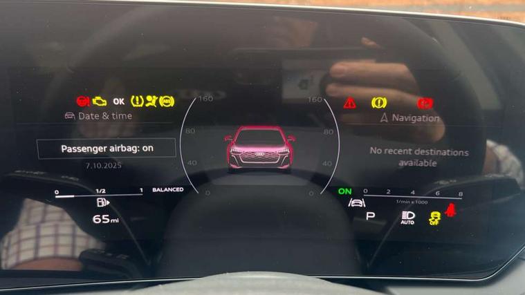 Adaptive cruise control, Advanced driver attention and fatigue montior, Audi application store, Audi assistant, Audi connect emergency call and service, Audi drive select, Audi smartphone interface, Audi virtual cockpit plus with 11.9" OLED colour display, Automatic start/stop system with coasting functionality, Camera based traffic sign recognition, Intersection assist, Lane departure warning, MMI navigation plus with high resolution 14.5" OLED touchscreen colour display, Park assist plus, Parking system plus with 360 display, Progressive steering with servotronic, Rear view camera, Swerve assist and turn assist, Traffic sign based speed limiter, Comfort suspension, 2 USB-C ports in both the front and rear, Audi sound system impressive sound with 10 loudspeakers including centre speaker and subwoofer, 6-channel amplifier with a total output of 180 watts, DAB digital radio reception, Smartphone compartment with wireless charging, Aluminium roof rails, Aluminium window trims, Auto dimming rear view mirror, Body colour door mirrors, Door mirrors - electrically adjustable, heated, folding and auto dimming on both sides, Front and rear electric windows, Front door sill trims with aluminium inlays, illuminated, High beam assist, LED headlights Plus incl. digital daytime running lights, turning light, all-weather light, motorway light, manouevring light and intersection light, LED rear lights pro incl. dynamic rear indicators and illuminated light strip with animated coming and leaving home function, LED third brake light, Rear and side windows with heat insulating glass, Rear side wing doors, Rear wash/wipe, Sport bumpers, radiator grille and diffuser in scandium grey and diffuser insert in matt selenite silver, White rhombus logo projection light in exterior mirrors, Windscreen with acoustic glazing, 3 rear headrests, 3 seat rear bench, 3-zone automatic climate control, 40:20:40 split folding rear seat bench with centre armrest and cup holders, Comfort front centre armrest, Front and rear floor mats, Front seats with manual adjustment for position and 4-way electric lumbar support, Front sport seats with integrated head reastrains, Heated front seats, i-Size child seat mounting on the front passenger side and outer rear seats, i-Size and top tether on the outer rear seats, Luggage compartment lid, electrically opening and closing, Manual steering column height and depth adjustment, Rock grey cloth headlining, Single front passenger seat, Twin leather upholstery, Twin spoke leather steering wheel with multi-function buttons with touch control, shift paddles and trim in chrome look, Ambient lighting package plus - A5, 3x3 point rear seat belts, Driver airbag, Electric child safety locks, First aid kit with warning triangle and vests, Front emergency brake assist, Front passenger airbag, Front passenger airbag deactivation, Front side airbags with head airbag system and front interaction airbag, Hill hold assist, Seat belt monitoring with rear seat occupant reminder, Tyre pressure loss indicator, Anti theft alarm, Anti-theft wheel bolts, Keyless Go, Accent surfaces and control buttons in gloss black, Black dashboard with contrast stitching, Inlays in matt brushed aluminium, silver, Softwrap in leatherette with contrast stitching, Upper and lower interior elements in leatherette, Tyre repair kit,