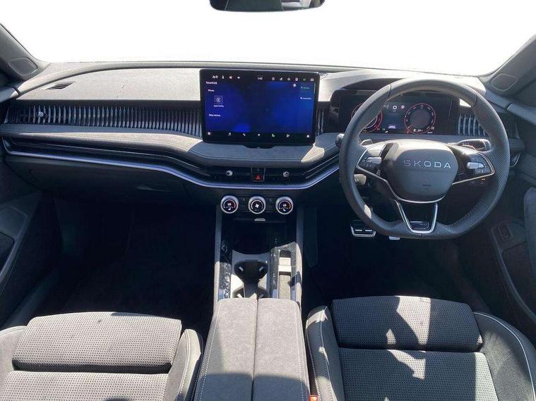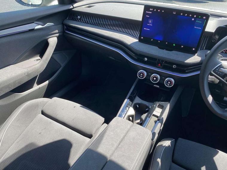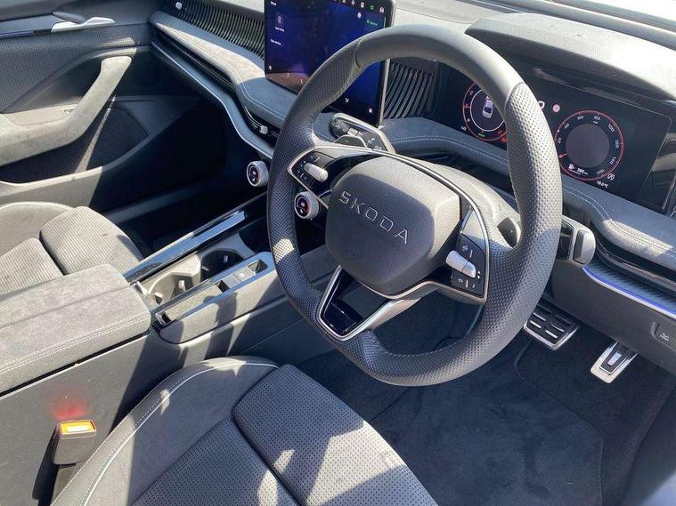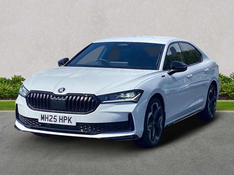 13" touchscreen display with satellite navigation, 4x USB-C ports (2x in front centre console and 2x in rear) (45W), Adaptive cruise control with speed assist, lane assist plus and traffic tram assist, Blind spot detection with door exit warning, Bluetooth system, CareConnect and Emergency Call, ChatGPT functionality, Driver fatigue sensor, Front assist with extended predictive pedestrian protection, Front cross traffic assist, PAS, Quick start all heating software functionality, Stop/start engine system, Traffic sign recognition, Turn assist with evasive assistance, Virtual Cockpit - 10.25" digital display, Voice control system, Washer for rear camera, Wireless charging for one smartphone (15W) with cooling function, Wireless smartlink apple carplay, SmartLink+ android auto, Dynamic chassis control plus with progressive dynamic steering, DAB Digital radio, Display cleaner, FM radio connection, Web radio connection, Acoustic side windows and interior noise suppression, Backdrop lighting, Black exterior styling window and grille surrounds, Body colour door handles, Dynamic range control with poor weather light and integrated fog light, Electrically adjustable, heated, folding and driver side auto-dimming door mirrors with memory function, integrated indicators and logo projection, Frameless auto-dimming rear view mirror with USB-C, Gloss black door mirrors, Ice scraper in fuel tank cap, LED 3rd brake light, Light assist with High beam control, Light assistant (coming/leaving home/tunnel light), Privacy glass, Rear fog lights (x2), Rear side wing doors, Skoda lettering in black, Sportline badging, Sports bumpers, Windscreen wipers with rain sensor, 12V socket 1x centre console 1x boot, 14-way electrically adjustable, memory, front seats with 4-way pneumatic lumbar support, and extendable thigh support with smart comfort entry aid, 2x cargo elements in boot, 2x light in boot, 3 seat bench in 2nd row, 60:40 Split folding rear seats, Aluminium pedals, Bottle holders in the front doors 1.5 litre bottle and rear 1.5 litre bottle, Cup holder in front with easy open mat, Front armrest with storage box, Front sports seats, Heated and ventilated front seats, Height adjustable front and rear head restraints, Illuminated glovebox, Interior lights with control switches, Isofix child seat fittings in outer rear and front passenger seats, LED front and rear reading lights, Single front passenger seat, Skoda lettering on steering wheel, Storage compartment with cover, Storage pockets on back of front seats, Sun visors with illuminated vanity mirrors, Ticket holder on A Pillar, Tri zone climate control, Umbrella in driver's door, Light and view package - Superb, Transport package - Superb Hatchback, 3 rear seatbelts, 8 Airbags - Front driver and passenger, front side driver and passenger, centre, curtain front and rear, drivers knee, Crew protect assist, Driver and passenger seatbelts with warning light, Electronic parking brake, ESC including ABS, EBV, MSR, ASR, EDS, HBA, DSR, RBS, CBC, multi-collision brake (MKB) and Auto hold, Hill hold assist, Power operated child lock in rear doors, Alarm with interior monitoring tilt sensor and back up horn, Backrest remote release from trunk, Electronic engine immobiliser, Keyless start/stop, Remote central locking with SAFE system, Third key, Walk away locking, Decorative front door sills, 19" Torcular polished black alloy wheels with anti theft wheel bolts,