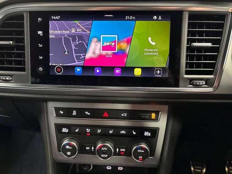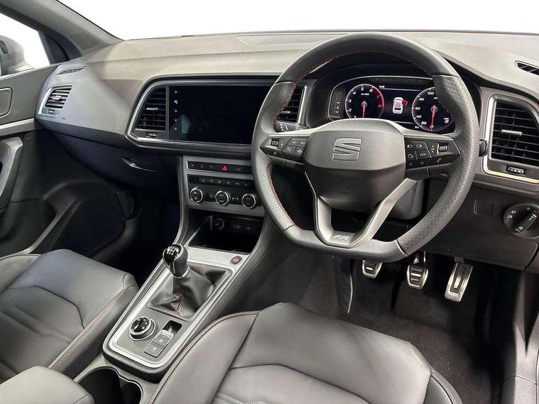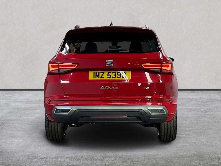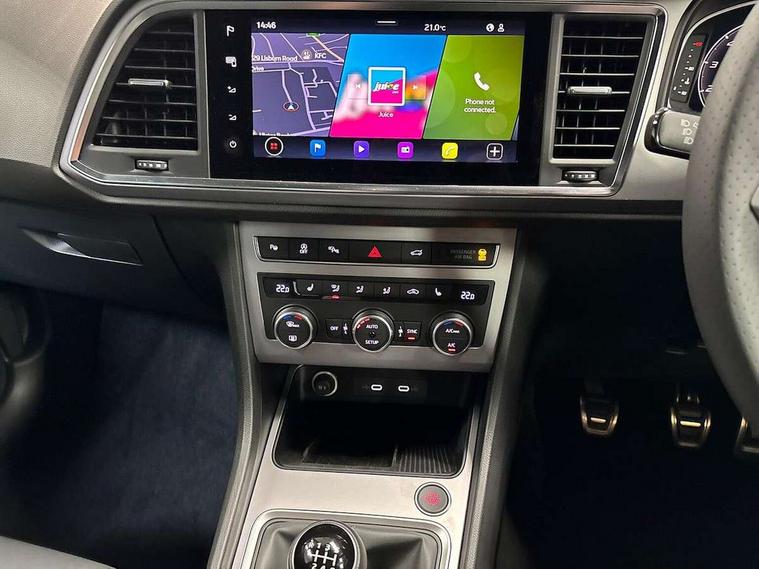 10" Digital cockpit, Bluetooth audio streaming with handsfree system, E-call, Electric tailgate with virtual pedal, Outside temperature gauge, Progressive power assisted steering, SEAT drive profile with driving experience button - Normal, Sport, Eco and Individual mode, steering and throttle response, Self parking functionality (includes front and rear parking sensors), Speed limiter, Start/stop system, Top view camera with rear view camera, Trip computer, wired and wireless full link smartphone integration, Wireless phone charger, Steering wheel mounted audio/phone controls, Black roof rails, Black side window trim, Body colour bumpers, Body coloured wheel arch surrounds, Chrome front grille frame, Dark tinted rear windows, Daytime running lights, Door mirrors with welcome light silhouette, Dynamic headlight range control with self adjusting whilst driving, Electric adjustable/heated/folding door mirrors, Front and rear electric windows, Illuminated aluminium front door sill, LED 3rd brake light, LED headlamps with lens and LED front fog lamps with cornering function, LED rear tail lights with dynamic indicators, Rear exhaust tailpipe, Rear fog lights, Rear side wing doors, Rear spoiler, Rear wash/wipe, Variable front intermittent wipers, 12v socket in front, 3 seat bench in 2nd row, 60/40 split folding rear seat, Aluminium pedals, Black greenhouse interior roof, Dual zone climate control, Electric adjustable driver seat with memory function, Front and rear head restraints, Front centre armrest, Front seat back storage pockets, Heated front seats, Height adjustable passenger seats with lumbar adjustment, ISOFIX points in outer rear seats with top tether anchorage points, Leather sports steering wheel and gear knob, Leather upholstery with front comfort seats, Rear armrest and easy back seat release mechanism from boot, Single front passenger seat, Convenience pack - Ateca, Interior lighting pack - Ateca, Navigation system pack with DAB - Ateca, Safety and driving pack (L) - Ateca, Safety and driving pack with attention and drowsiness assist - Ateca, 3x3 point rear seatbelts, ABS, Traction control system (TCS), Electronic stability control (ESC) and Electronic differential lock system (XDS), Airbags - Driver and front passenger airbag with deactivation, front side, two curtain and driver's knee airbags, Electric parking brake with auto hold function, Front and rear seatbelt reminder, Hill hold control, Manual rear child locks, Single tone horn, Tyre pressure monitoring system, Alarm, Keyless entry, Locking wheel bolts, Remote central locking, Chrome interior detailing, 19" Exclusive alloy whelels 36/10 in glossy black, Tool kit,