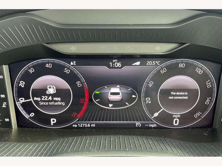 Drive mode selector, Driver alert system, Driver fatigue sensor, Driver profile selection, Electro-mechanical PAS, Multifunction colour trip computer, Outside temperature gauge, Rear view camera, Service interval indicator, Start/stop system with regenerative braking, DAB radio with Bluetooth, SD card slot, USB connection, Acoustic glass, Aero front windscreen wipers with intermittent function, Automatic headlight control system, Body colour door mirrors and handles, Body coloured bumpers, Chrome outside aluminium bar around the window, Chrome roof rails, Electric front and rear windows with child proof lock, Full LED headlights + adaptive front light system + LED daytime running lights and front cornering fog lights, Headlight washers, Heated rear windscreen, LED rear lights with high functionality, Light assistant (coming/leaving home/tunnel light), Privacy glass, Safety reflectors on front doors, Third brake light, 1.5 litre bottle holders in driver and front passenger door panels, 12V socket in boot, 12v socket in front centre armrest with storage compartment and rear air vents, 2 Folding hooks and nets in boot, 2 Front readings lights for driver and passenger, 3 rear height adjustable headrests, 4 foldable roof handles with rear coat hooks, 4 lashing points on luggage floor, Backrest release, Cargo elements in boot, Chrome inner door handles, Dual zone climate control, Folding tables on the front seat backrests, Front seat and rear pockets, Height adjustable front three point seats belts with tensioners, Height adjustable passenger seat, Height/reach adjust steering wheel, Ice scraper, Illuminated and cooled glovebox, Illuminated luggage compartment, Isofix child seat preparation outer rear, Net programme in boot, Pen holder, Pollen filter, Rear boot cover, Rear reading lights, Rear seats fixed folding and divided 60:40, Removable LED torch in the boot, Retractable parcel shelf attachable to tailgate, Safety vest holder, Storage box in upper central dashboard closed, Storage compartment below the passenger seat, Storage net on centre console passenger side, Sunglasses storage compartment, Sunvisors with illuminated vanity mirrors, Textile floor mats, Umbrella under passenger seat, VarioFlex seats with retractable parcel shelf, Airbags - Front side, head, knee and curtain, Automatic door unlocking in case of crash, Automatic fuel cut off in case of crash, Driver airbag, Electronic parking brake with auto hold function, Emergency rear braking signal, ESC including ABS, MSR, ASR, EDS, HBA, DSR, RBS, MKB and traction control, Front assist radar scanning of the space in front of the car with automatic braking, Hill hold control, Passenger airbag with switch-off function, Pedestrian monitor, Seatbelt reminder signalisation and pretensioner for all seats, Three point seatbelts rear, Two tone horn, Tyre pressure display, Tyre pressure monitor, Alarm with interior monitoring, back up horn and tilt sensor with safe function, Electronic engine immobiliser, Keyless entry and keyless start with safe system, Remote central locking with 2 remote folding keys, Chrome framed air vents, Storage on wheel cover,