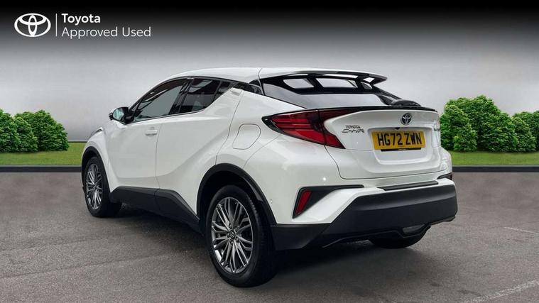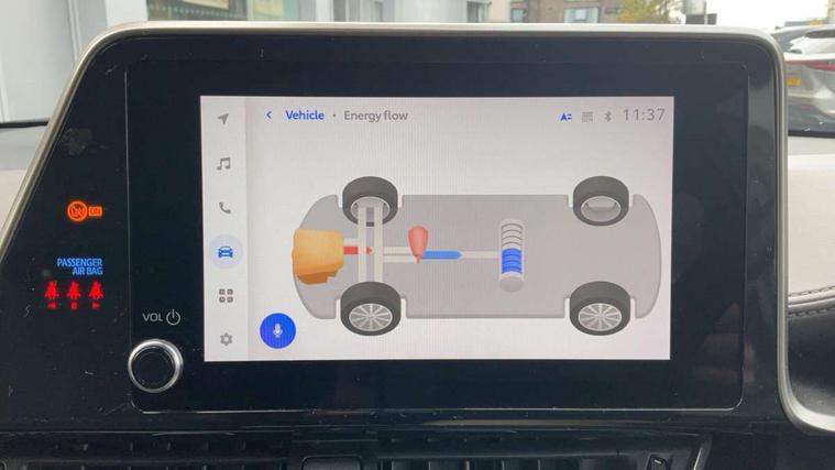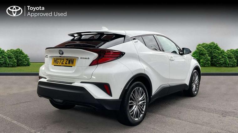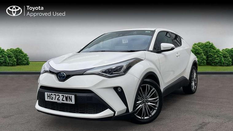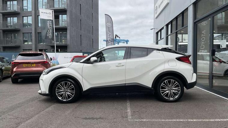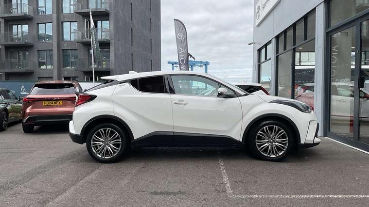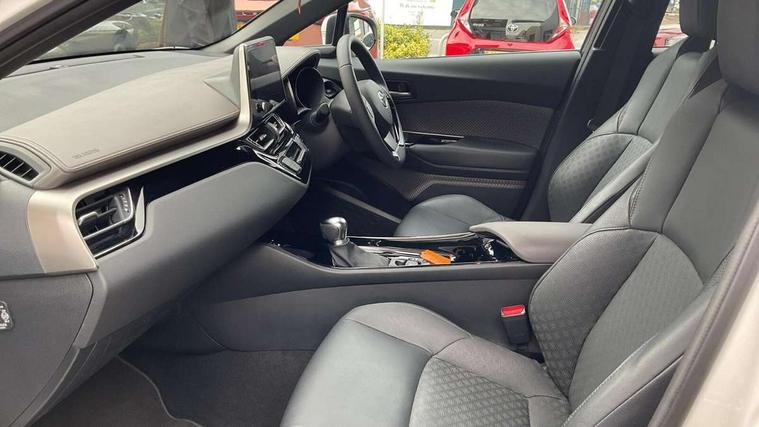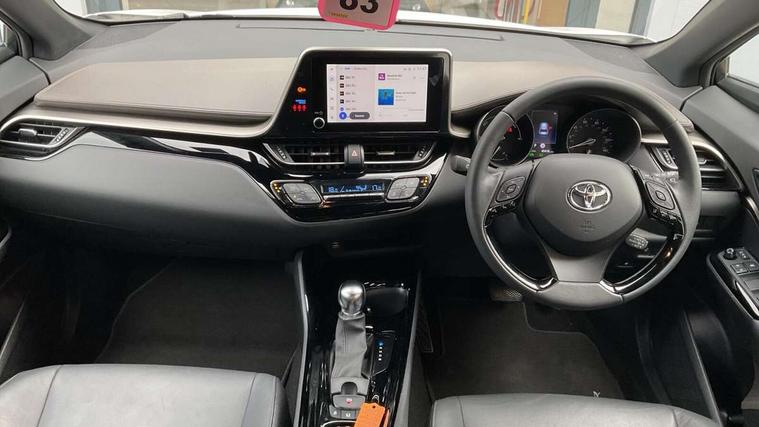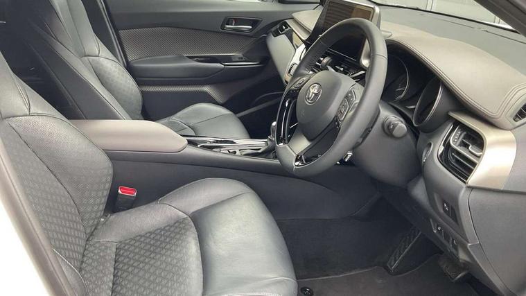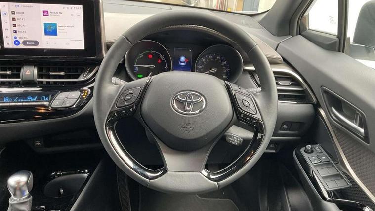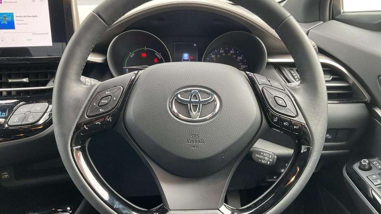 4.2" coloured TFT screen for multi-information display, Adaptive cruise control, Apple car play and Android auto, Bluetooth connectivity, E-call, Electric power steering, Hybrid system indicator, Lane departure alert with steering control, Lane trace assist, Push button tailgate release, Remote boot door release in cabin, Remote boot door release in key, Reversing camera, Road sign assist - RSA, Simple Intelligent parking assist, Smart voice assist, Touch 2 Go navigation system, Trip computer, Voice recognition, Wireless smartphone integration, Vehicle Stability Control (VSC), 6 speakers, AM/FM radio, DAB Radio (Digital Audio Broadcasting), Toyota touch 2 multimedia system with 8" display, USB connector, Wi-fi connectivity, Adaptive front light system, Adaptive LED Headlights, Anti-jam protection on power windows, Auto high beam, Auto up and down function on all power windows, Automatic headlight levelling, Automatic headlights, Automatic headlights cut-off, Black and body coloured rear bumper, Black lower front grille, Black upper front grille, Body colour door handles, Body colour door mirrors, Body colour front spoiler lip, Body coloured front bumper, Boot door release with push button, Electric heated door mirrors, Follow me home headlights, Front and rear power windows, Headlight cut off reminder, Honeycomb lower front grille, LED daytime running lights, LED fog lights, LED front light guide, LED High mounted stop light, LED rear brake lights, LED rear combination lights, Noise reduction layer on front windows and windscreen, Power adjustable door mirrors, Privacy glass, Rain sensor, Rear sequential indicators, Rear side wing doors, Rear spoiler, Rear tailgate, Rear window defogger, Rear window wiper, Shark fin antenna, UV-filter on driver and passenger windows, UV-filter on rear windows, Variable front intermittent wipers, 12v power outlet - front, 3 rear headrests, 3 seat bench in 2nd row, 3 spoke leather steering wheel, 60/40 split folding 2nd row rear seats, Adjustable rear headrests, Adjustable speed limiter switch on steering wheel, Assist grips front and centre pillar, Audio and telephone switches on steering wheel, Black front door assist grips, Blue ambient lighting on front cup holders, Blue ambient lighting on front doors, Boot light, Chrome interior door handles, Driver and front passenger personal light, Driver and front passenger Whiplash Injury Lessening seats, Driver and passenger seatback pockets, Dual zone automatic air conditioning, Floor mats, Front cupholders, Front head restraints, Front sports seats, Glovebox with internal light, Hard tonneau cover, Heated driver and front passenger seats, Heated steering wheel, Hooks for luggage holding net, Humidifying Nanoe air purifier, Illuminated entry system, Isofix attachments on outer rear seats, Leather gearshift, Light on driver sun visor, Light on passenger sun visor, Manual telescopic steering wheel, Manual tilt steering wheel, Microphone on front personal light, Mirror on driver sun visor, Mirror on passenger sun visor, Multimedia switches on steering wheel, Pollen filter, Power adjustable lumbar support on driver seat, Power tilting cushion on driver seat, Shopping bag hooks, Single front passenger seat, Slow opening on lower glovebox, Voice recognition switch on steering wheel, Leather pack - C-HR, Tech with parking sensor pack - C-HR, 16 Disk front wheel brake, 3x3 point rear seatbelts, ABS+EBD+Brake assist, Electronic parking brake, Front and rear seatbelt reminder, Front passenger airbag on/off switch, Hill start assist control (HAC), Pre collision system with pedestrian detection, Pre-tensioners and force limiters, Rear door child safety locks, SRS Airbags - Driver + Front passenger, front side, front and rear curtain and driver's knee airbags, Toyota safety sense, Tyre pressure monitoring system, Tyre pressure warning system, Acoustic vehicle alert system (AVAS), Glass-breaking alarm sensors, Immobiliser, Intrusion alarm, Intrusion sensor, Motion sensor alarm, Power door locks, Power passenger window lock, Remote central locking, Black lower dashboard, Dark brown upper dashboard, Piano black console, Silver deco line on upper dashboard, Tyre repair kit,