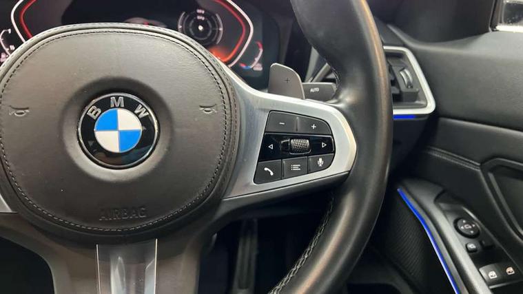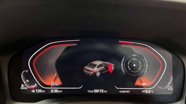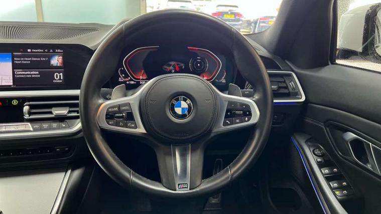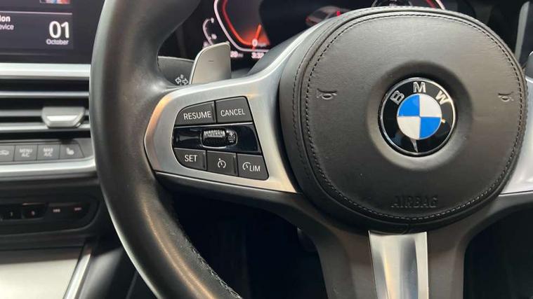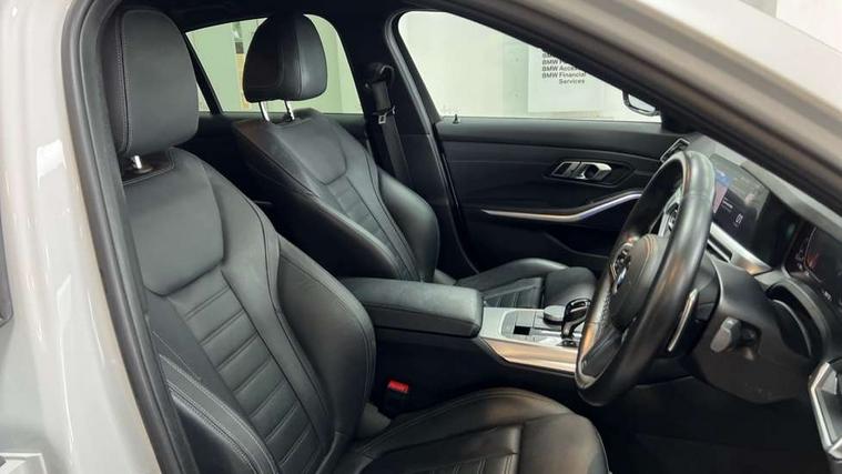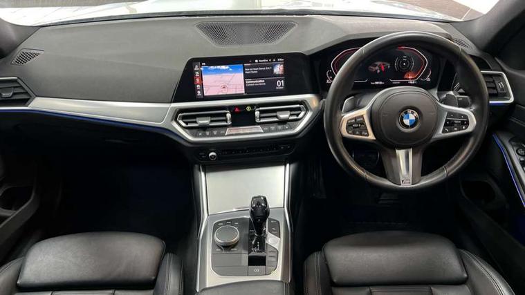 Active guard plus, Attentiveness assist, Auto start-stop, BMW ConnectedDrive online services, BMW Live Cockpit Professional sat nav system including 10.25" high resolution display and Intelligent Voice Assistant, BMW service history, BMW Teleservices, Brake pad wear indicator in front and rear, Check Control warning system for monitoring of lights and door/luggage compartment open warning, Condition based service, Electric power steering with Servotronic steering optimised at all speed ranges, iDrive controller on centre console, Instrument cluster with speedometer with mph readout, tachometer, fuel gauge and oil temperature gauge, Integrated owners handbook, Oil sensor for level and grade, warning by check control system, On board computer - average speed+fuel consumption, service interval, clock/date, odometer/trip meter, outside temperature display and ice warning, Optimum shift indicator, Personal Profile - automatic lock when driving away selectable, Variable sport steering, Balanced 50/50 weight distribution, Battery cut-out switch, Diesel particulate filter, Drive performance control - ECO PRO, comfort and sport modes, Incorrect fuelling protection, Larger capacity fuel tank, M sport suspension, Sport automatic transmission with steering-wheel mounted gearshift paddles and launch control, Stroke dependent dampers, DAB tuner, Electronic service booklet, Acoustic glazing, Active airstream chrome frame kidney grille with 8 high gloss black vertical slats, Automatic headlight beam throw control with load dependent regulating reaction, dynamic compensation of braking dive and acceleration squat, Black roof mouldings, Body colour - fuel filler flap, front and rear bumpers, door handles and mirror caps with integrated turn indicator + bottom segment in matt black, Dynamic brake lights, Electric windows - front and rear, with open/close fingertip control, anti-trap facility and comfort closing, Exhaust tailpipe - split left and right, Extended LED headlights, Exterior mirrors - electrically folding with anti-dazzle, Fading support, Front and rear bumper system with replaceable deformation elements, Front black door sill finishers with BMW designation, Green tinted heat protection glazing, High gloss shadow line exterior trim, Interior rear view electrochromatic mirror with automatic anti dazzle function, LED front fog lights, Lightweight engineering, M designation on front side panels, left and right, Matt black exterior B pillar, Model designation on right side of tailgate, Rain sensor with automatic headlight activation, Rear wiper, Shark fin antenna, Two part LED tailights in L-shape with components in smoked glass, brake light, LED turn indicator and rear fog light, Visible VIN plate, Welcome lights in interior and door handle area, Windscreen wipers with integrated washing jets, 12V power socket in front storage compartment, 2 front cupholder in centre console with clamping elements and matt black inlay, 3 rear seats with non folding headrests with 3 point seat belts, 3 zone automatic air conditioning, 4 pieces lashing eyelets in luggage compartment, 40:20:40 split folding rear seat with loading system, Ambient lighting with welcome carpet light, Anthracite headlining, Armrest integrated in front and rear door trim + front centre console armrest, Centred top Luggage compartment lights, Four grab handles integrated in roof lining, Front and rear door exit lighting (left / right), Front and rear door pockets, Front and rear reading lights, Front and rear velour floor mats, Front head restraints, Front sport seats, Heated driver and front passenger seats, Height adjustable mechanically and infinitely variable steering column, Illuminated armrest storage compartment, Illuminated glove compartment with separate small compartment, Interior lighting - front centre over interior mirror with soft light, rear centre and front and rear footwell lighting, M Sport multifunction leather steering wheel, Make-up mirror lights, Rear centre armrest with 2 cupholders, Rear centre console with storage compartment and ventilation grille, Sunvisors with vanity mirrors and ticket pocket, Toolkit located in luggage compartment, Connected pack professional - 3 Series Saloon/Touring, M Aerodynamics pack - 3 Series Saloon/Touring, 2 tone horn, BMW emergency call, Brake energy regeneration, Braking pre-tensioning, Child proof locking system in rear door, Child seat ISOFIX attachment rear outer seats, Coasting in idle in ECO PRO mode, Crash sensor activating of airbags, Unlocking doors, hazard warning lights, fuel cut off, interior lighting+activation of safety battery terminal clamp, Driver and front passenger side airbags, integrated in the door side seat backrest bolsters for all seat variants, Driver/Front Passenger airbags, Dry braking, Dynamic brake control, Dynamic stability control + (DSC+) - Anti-lock Braking System (ABS) with brake assist and cornering brake control + Automatic Stability Control (ASC), Dynamic Traction Control - DTC, Electromechanical parking brake including automatic hold function and automatic release of the parking brake when pulling away, Electronic differential lock control (EDLC), Front passenger manual airbag deactivation, Head airbags for all 4 outer seats, Hill start assist, Seat belt security check for driver and front passenger, Side impact protection, Three 3 point seat belts on all seats including front belt stopper, pyrotechnic belt tensioners and belt force limiters, Tyre pressure monitoring with three level warning strategy, Ventilated front and rear disc brakes, Warning triangle and first aid kit, Alarm system (Thatcham 1) with remote control and electronic engine immobiliser, Central locking switch for all doors, fuel filler cap and luggage compartment, Remote control with integrated key one button open/close vehicle and windows, sole opening of the luggage compartment lid and panic mode, Start/stop button with Comfort Go keyless engine start and auto Start/stop deact