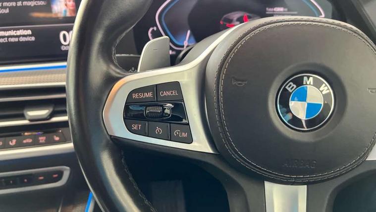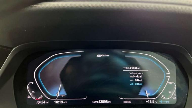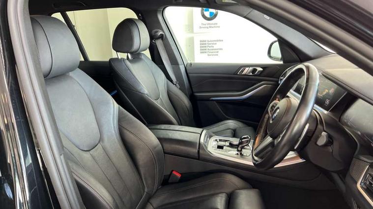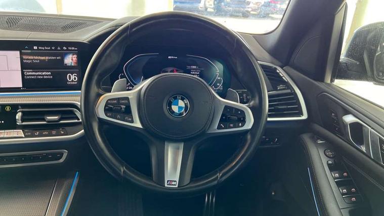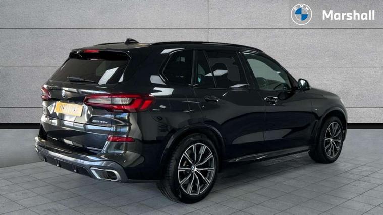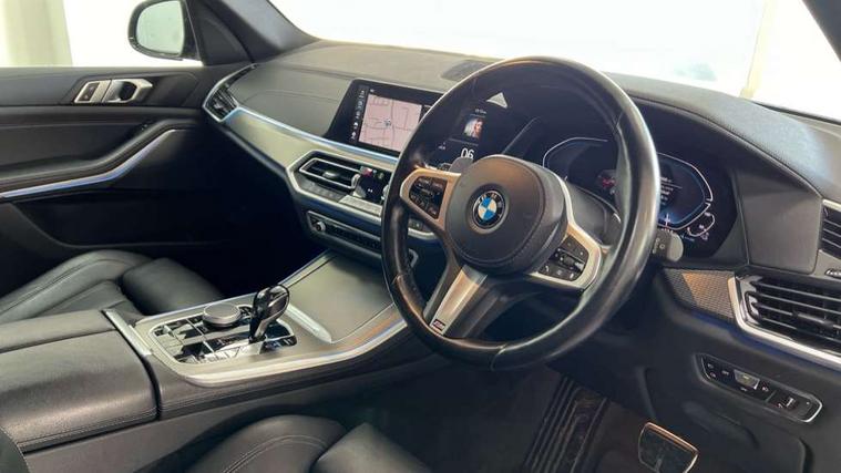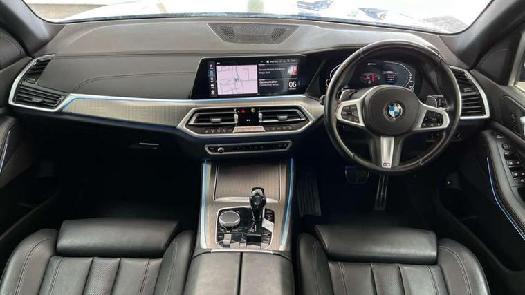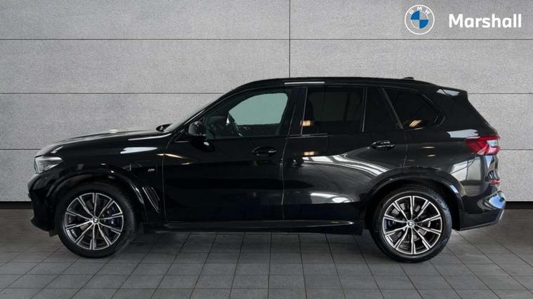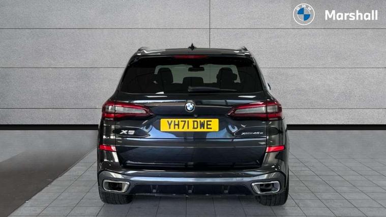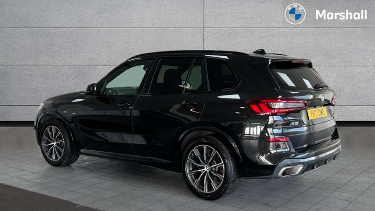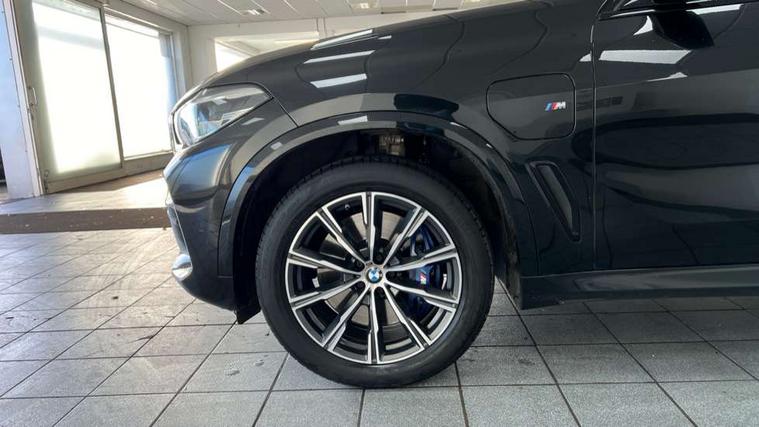 20GB hard disc drive (HDD) memory, Active guard plus, Attentiveness assist, Automatic tailgate with top hinged section open and manual bottom hinged section, BMW ConnectedDrive online services, BMW digital live cockpit professional - 12.3" digital instrument panel and 12.3" CID, with touch/voice command, BMW legal emergency call, BMW Teleservices, Brake force display, Brake pad wear indicator warning light, Cruise control with brake assist, eDrive button to select between AUTO eDrive, MAX eDrive and SAVE Battery settings, Front/rear park distance control, Galvanised plastic keyfob, Infinity symbol with line graphic on reset of average consumption, Lights on warning, Oil sensor for level and grade, On board computer inc. average speed, fuel consumption, liquid crystal Info display, journey computer, outside temperature display, personal profile, Service interval indicator, Speed limit info display, Speed limiting function, 5 metre AC Fast charge cable, Adaptive 2-axle air suspension, Double VANOS, Double wishbone front axle, Drive performance control with ECO PRO comfort + sport mode, eDrive exterior sound, Eight speed steptronic sport automatic transmission and gearshift paddles on the steering wheel, High precision injection, Petrol Particulate Filter, Safety battery terminal clamp, Standard Charging cable (Mode 2) for home socket, Twin scroll turbocharger with Valvetronic, DAB Tuner enables digital radio reception, Favourite buttons, USB connection, USB type A 1.5A in cupholder, USB Type C 3A in centre armrest, Active Air Stream kidney grille with high-gloss chrome, Adaptive air flap control bar in high-gloss black, Automatically dimming rear view mirror, BMW Individual high gloss black shadow line roof rails, Body colour bumpers, Body colour door handles, Dynamic brake lights with LED technology, Exhaust tailpipes - single, left and right with Chrome finisher, Follow me home headlight function, Front and rear electric windows with open and close fingertip control, anti trap facility and comfort closing, Heated windscreen washer jets, High beam assistant, High gloss black outer and central air intakes on front bumper with pearlescent chrome finish, High gloss black Side elements, LED daytime running lights, LED rear lights, Left charging flap on the front side, M aerodynamic body styling, M designation on left and right front side panels, Pearlescent chrome front grille bars, Rain sensor with automatic headlight activation and windscreen wiper control, Satin aluminium side window graphic, Third brake light in rear spoiler, Variable intermittent rear wash/wipe, Welcome light carpet, X5 on left tailgate, xDrive designation on right tailgate, 12V - Power sockets with 2x centre console and 1x luggage compartment, 40:20:40 split folding rear seats, Ambient interior lighting with 6 pre-designed selectable lights including dynamic function, Centre and rear interior light, Child seat ISOFIX attachment with rear outer seats includes top tether, Compartment in front of cupholder, Electric front seat adjustment with driver and front passenger memory function, Electrical steering column with adjustable height and length with activation and control on the steering column, Foldable rear centre armrest with 2 cupholders and storage compartment, Front and rear cupholders x 2, Front and rear door pockets, Front and rear door sill inlays with illuminated BMW M designation, Front and rear side armrest integrated into door trim, Front footwell lights, Front reading lights, Light inside glove compartment, Lockable glove compartment, Luggage compartment floor panel with integral storage tray, Luggage compartment lighting, M leather steering wheel, M specific key, M specific pedals, M specific steering wheel, M specific velour floor mats, Make-up mirror lights, Multifunction controls for leather steering wheel, Multifunctional hooks, Rear head restraints, Seat back with flap pocket, Securing rings in luggage compartment, Storage bins on all doors, Storage tray and compartment with cover in centre console, Sunvisors with illuminated vanity mirrors, Toolkit located in luggage compartment, Connected Package Professional - X5 xDrive45e, Expanded exterior mirror pack - X5/X5 M, Non-smokers pack - X5, Acoustic protection for pedestrians, Airbags - driver/front passenger, rear and side, first and second row seats head airbags, front passenger seat airbag deactivation + knee airbag, Anti-lock braking system (ABS), Automatic Stability Control (ASC), Brake drying, Brake energy regeneration, Brake fade compensation, Braking pre-tensioning, Cornering brake control (CBC), Crash sensor activating central locking release, hazard warning lights, fuel cut off, interior lighting + activation of safety battery terminal clamp, Deformation zones - front and rear with door reinforcements and bumpers up to 2.5 mph, DSC - Dynamic Stability Control, Dynamic brake control, Dynamic Traction Control - DTC, Electromechanical parking brake with automatic drive away release and auto hold function, Electronic brake force distribution, Front and rear seatbelts with seatbelt stopper, seatbelt tensioner for front and outer rear seats and belt force limiter, Front head restraints with anti-whiplash, Height adjustable front seatbelts, Hill start assistant, Integrated brake system, M Sport braking system in blue high gloss + blue painted brake calipers with M designation, Mechanical child proof lock on rear doors, Passive protection for pedestrians, Seat occupancy detection for driver and passenger side, Side impact protection, Three 3 point inertia reel seatbelts, Two tone horn, Tyre pressure monitoring system, Ventilated front and rear disc brakes, Warning triangle and first aid kit, Closing system with central locking, Driver and front passenger door centre lock switch, Locking wheel bolts, Thatcham 1 alarm system with remote control and engine immobiliser, Start/stop toggle diamond shaped trim finisher in pearl chrome,