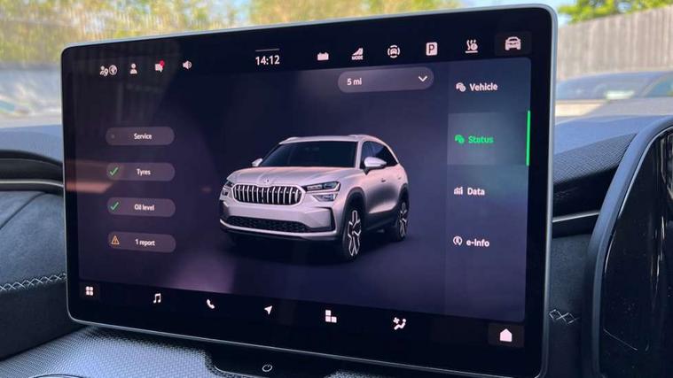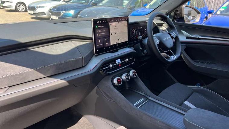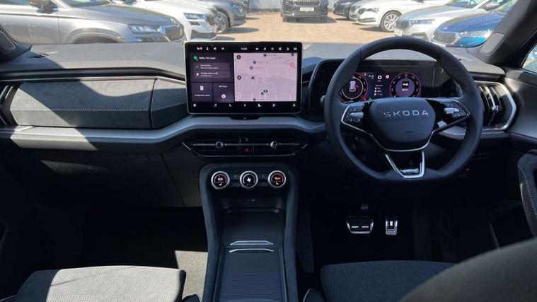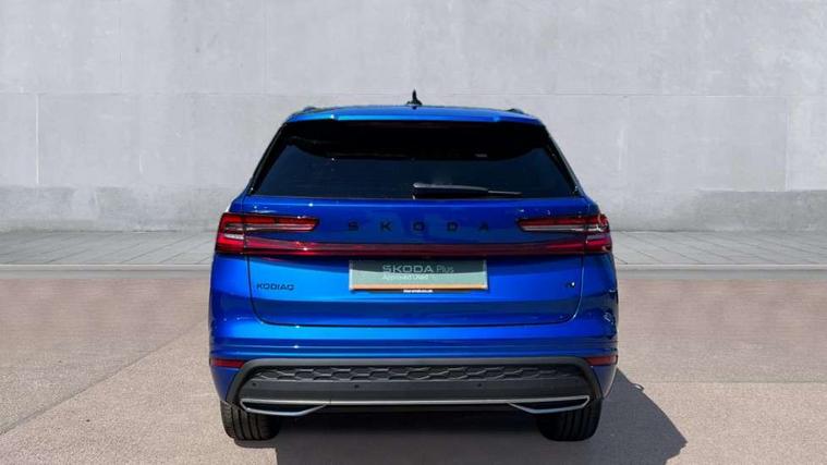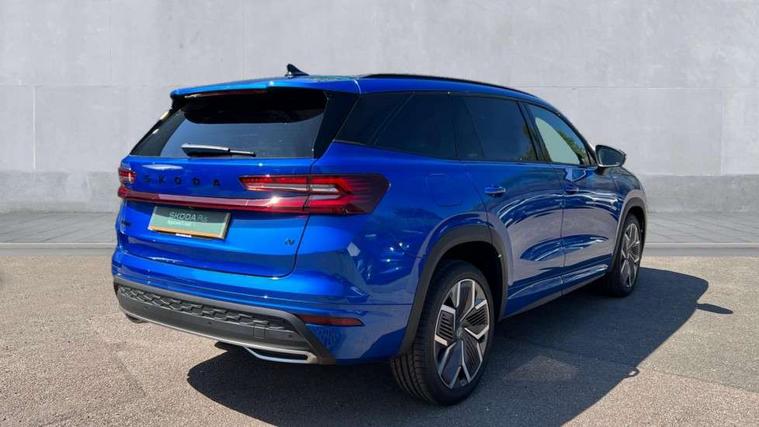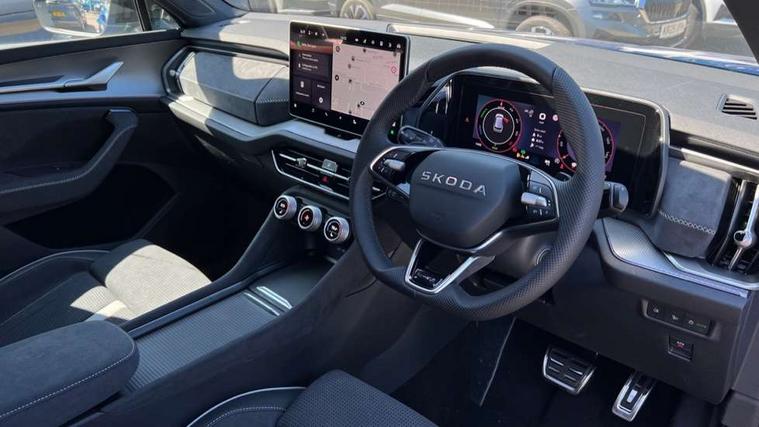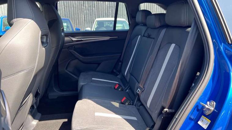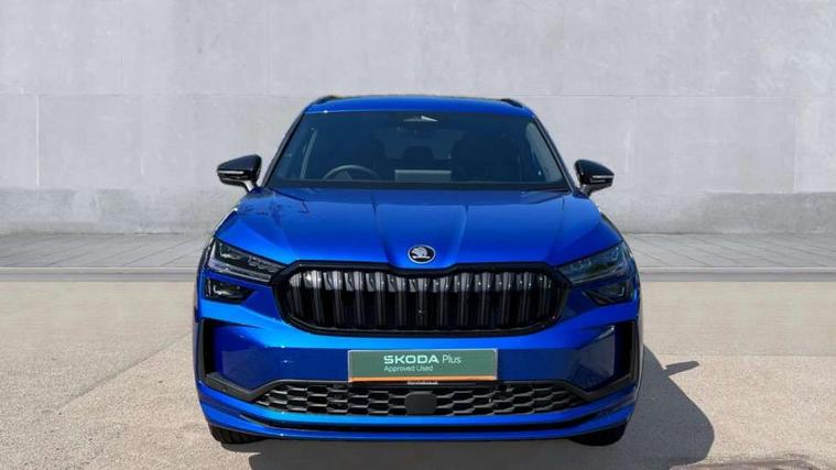 13" satellite navigation touchscreen display, Blind spot detection with door exit warning, Bluetooth system, ChatGPT functionality, Driver alert - Fatigue and drowsiness monitor, Dry display cleaner, Emergency call, Front and rear parking sensors, Front cross traffic assist, Lane assist, PAS, Rear traffic assist, Tailgate unlocking from outside, Traffic sign recognition, USB C Port x 2 in front centre console, Virtual Cockpit - 10.25" digital display, Voice control system, Wireless charging for two smartphones (15W) with cooling function, Wireless SmartLink for Apple CarPlay and Android Auto, 32A charging cable, Stop/start function, 2x USB-C in the rear, DAB Digital radio, Aero front windscreen wipers with intermittent function, Auto dimming rear view mirror, AWL (all weather lighting) and all weather light with cornering function, Black diffuser and decorative tailpipe with a unique dark chrome finish, Black roof rails, Black sports styling including front grille and window surrounds, Black wheel arch surrounds, Body colour door handles, Cornering light and poor weather light, Electric folding /adjustable/separted heated/folding door mirrors, auto dimming with boarding sports and memory function, Electric front and rear windows, Exterior black decorative trims, Front and rear sports bumpers including lower rear chrome strip, Gloss black door mirrors, Gloss black window frame and D pillar, Heat insulating glass in windshield, Heated rear window, Ice scraper in fuel tank cap, LED daytime running lights, LED third brake light in rear spoiler, Light assistant with automatic headlight control and coming home feature, Logo projection in door mirrors, Privacy glass, Rear roof spoiler, Rear side wing doors, Rear window wiper, Red decorative strip between rear LED lights, Safety reflectors on front and rear doors, Sportline badge on front fenders, Tailgate lettering in Black, Unique dark chrome design logo on alloy wheels, Window control switches with black trim, Windscreen wipers with rain sensor, Without engine designation, 1.5l bottle holder points in all door, 1x centre rear reading light, 3 configurable smart dials with 32mm coloured display, 3 seat bench in 2nd row, 4 foldable roof handles with rear coat hooks, Aluminium pedals, Ambient interior lighting - Dashboard, front-door stowage compartments, front and rear door panels and footwell lighting, Automatic gear selector on steering column, Chrome interior door handles, Driver/front passenger reading lights, Fabric headlining, Fixed bench 40:60:40 split folding backrests, Front and rear floor mats, Front centre armrest with jumbo box storage compartment, cup holder and 12V socket, Front sport seats, Height adjustable front headrests, Interior black decorative trims, Isofix child seat fittings in outer rear seats and front passenger with top tether, iV badging on boot, Manually adjustable steering column, Pollen filter, Rear centre armrest with cupholders, Rear seat boot backrest release, Single front passenger seat, Skoda lettering on steering wheel, Storage pocket including mobile phone pockets on the backs of the front seats, Sunvisors with illuminated vanity mirrors, Three rear height adjustable headrests, Ticket holder on A Pillar, Tri zone climate control, Umbrella in door panel x1 made from sustainable materials, Upper and lower glovebox with card holder and coin compartment, USB C port by rear view mirror for charging only (15W), Acoustic package - Kodiaq, Performance package - Kodiaq, Sportline design selection pack - Kodiaq, Auto door release and activation of warning lights in the event of an accident, Driver and front passenger airbag with knee airbag and front passenger airbag deactivation, Electric child locks, Electronic parking brake, ESC (incl. ABS+EMD+MSR+ASR+EDL+HBA+DSR+RBS+ESBS+MCB+TSA+XDS), Front assist with braking reaction to vehicles, pedestrians and cyclists, Front disc brakes, Fuel cut off safety device, Height adjustable front 3 point seatbelts + pretensioners, Hill hold assist, Junction assist with automatic emergency braking, Rear disc brakes, Safety vest holder in door, Seat belt reminder for all seats, Three point rear seat belts, Two tone horn, Tyre pressure monitor, Alarm with interior monitoring and tilt sensor with safe function, Anti-theft wheel bolts, Immobiliser, Remote central locking with 2 keys, 20" Rila anthacite polished alloy wheel with black matte aero covers, Breakdown kit, Tool kit,